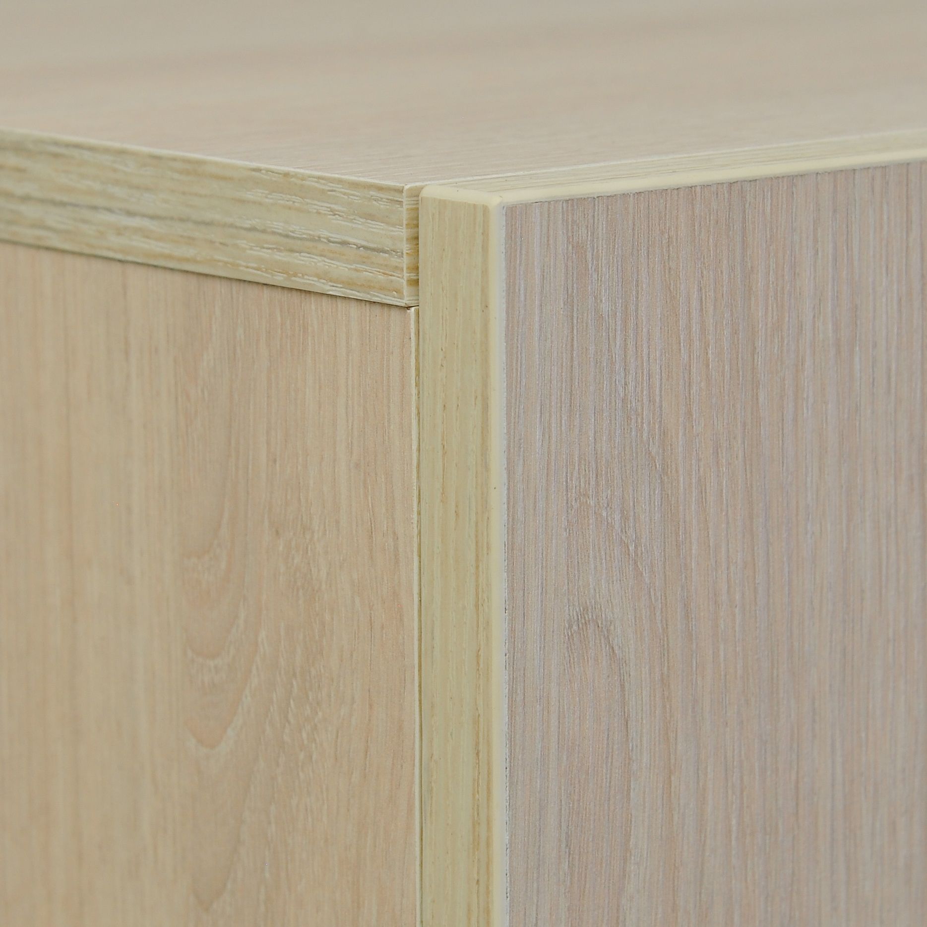Светлый оттенок комода создает ощущение просторности и света, что делает его прекрасным выбором для современных интерьеров. Он отлично дополнит интерьеры в эко-стиле, стиле лофт и скандинавском стиле, а также подойдет для оформления детской, где можно разместить книги и игрушки. Такой невысокий стеллаж станет не только функциональным элементом, но и стильным аксессуаром.
