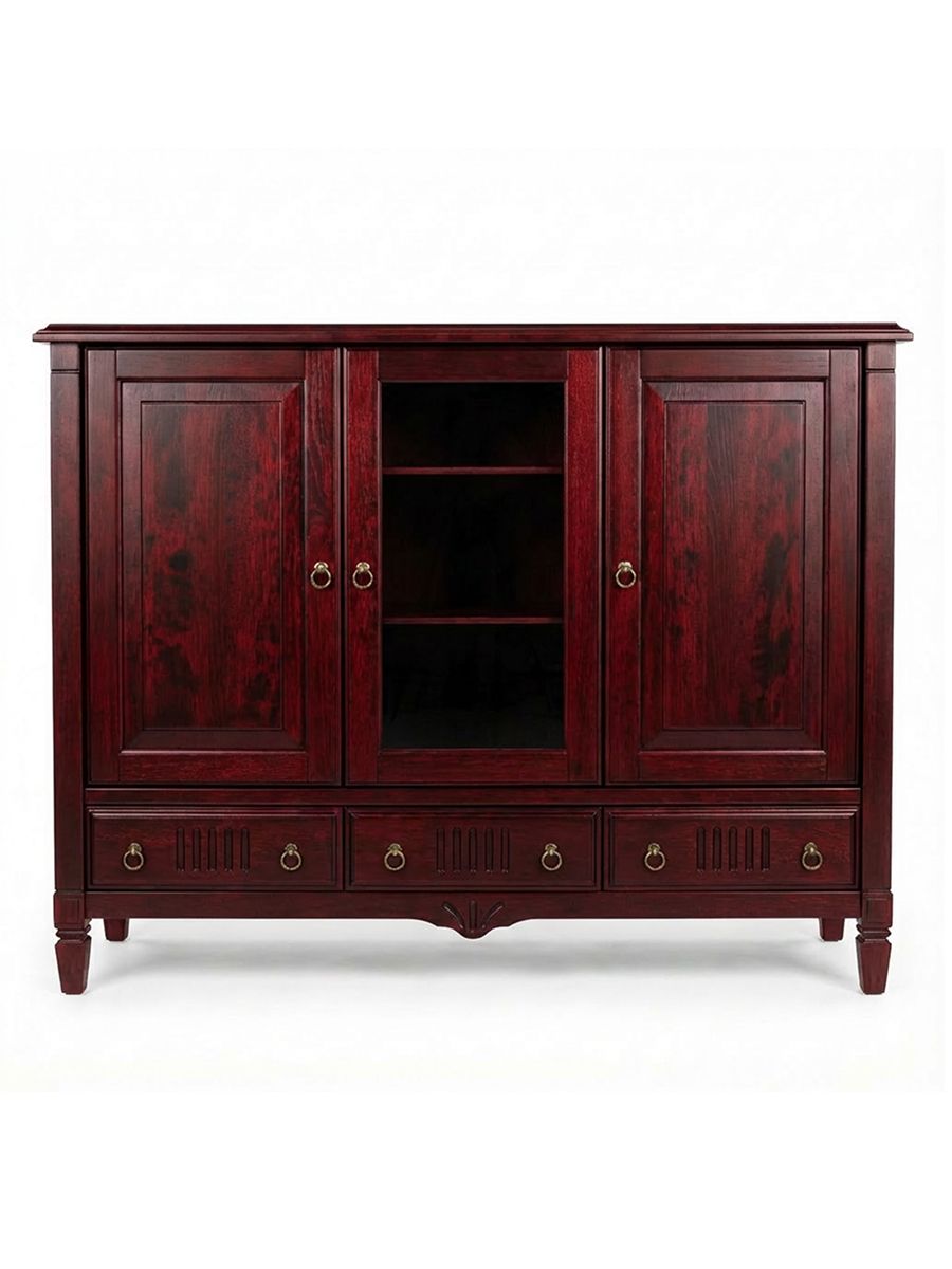 Элегантная тумба «Джоли» выполнена из натурального массива берёзы с лакированным покрытием. Красный матовый фасад придаёт изделию благородный винтажный стиль, а трёхдверная конструкция обеспечивает аккуратное хранение.