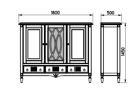 Просторный корпус вмещает четыре регулируемых полки, три выдвижных ящика и удобные боковые ниши. Дверцы с доводчиками и стопорами открываются в стороны, гарантируя комфортную эксплуатацию.