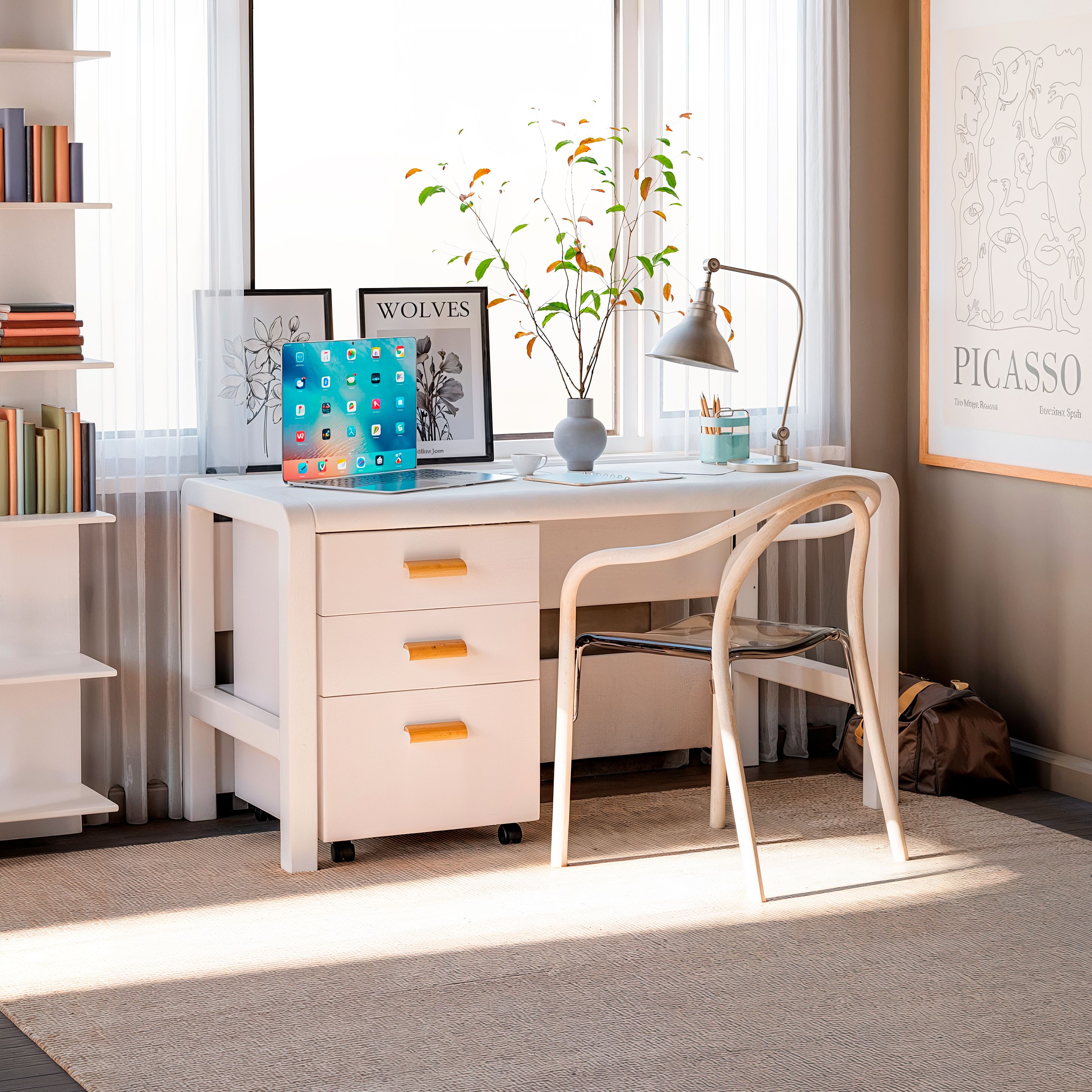 Эта узкая белая тумба станет отличным дополнением к офисному столу, обеспечивая дополнительное место для хранения и освобождая рабочую поверхность. Её стильный дизайн в стиле лофт подчеркивает современность и функциональность.