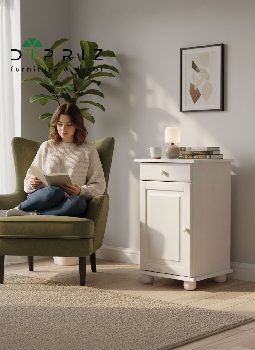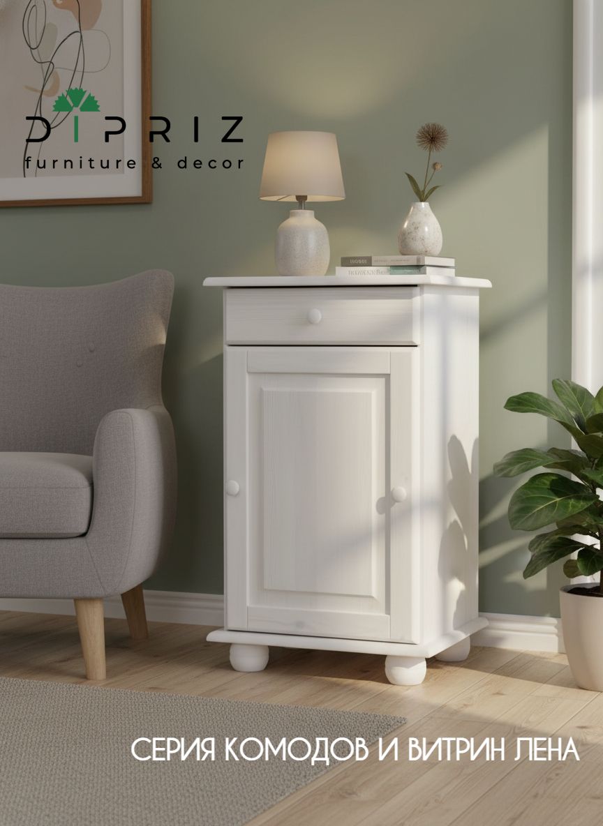 Тумба выполнена из натурального массива сосны белорусской компанией Диприз. Дополнена гладкой шлифовкой и покрыта натуральным белым воском. При производстве использовались только экологически чистые материалы и отделка, поэтому все полезные свойства хвойного дерева были сохранены. Вы сможете её использовать сразу после покупки, не беспокоясь о внешнем воздействии.