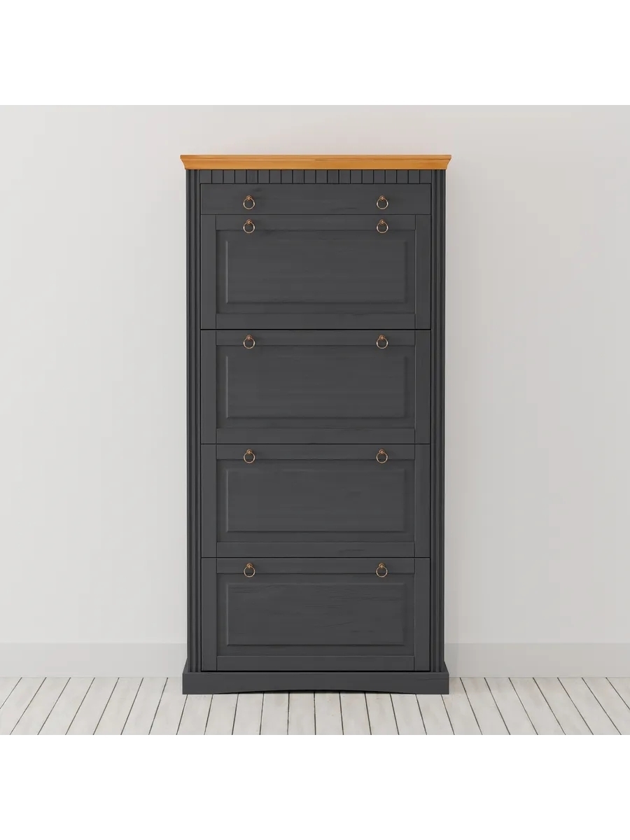 Выполненная из массива сосны, эта тумба для обуви не только предлагает удобное место для хранения обуви и других предметов, но и служит полноценным элементом интерьера прихожей. Благодаря серому цвету (за счет покрытия натуральным воском) обувница добавит элегантности и красоты Вашему помещению, сохранит приятный хвойный аромат и полезные свойства дерева. Это обеспечивает не только стойкость к внешним воздействиям, но и подчеркивает естественную красоту массива дерева. Фасад комода для обуви дополнен декоративными резными вставками, которые добавит изысканности в ваше помещение.