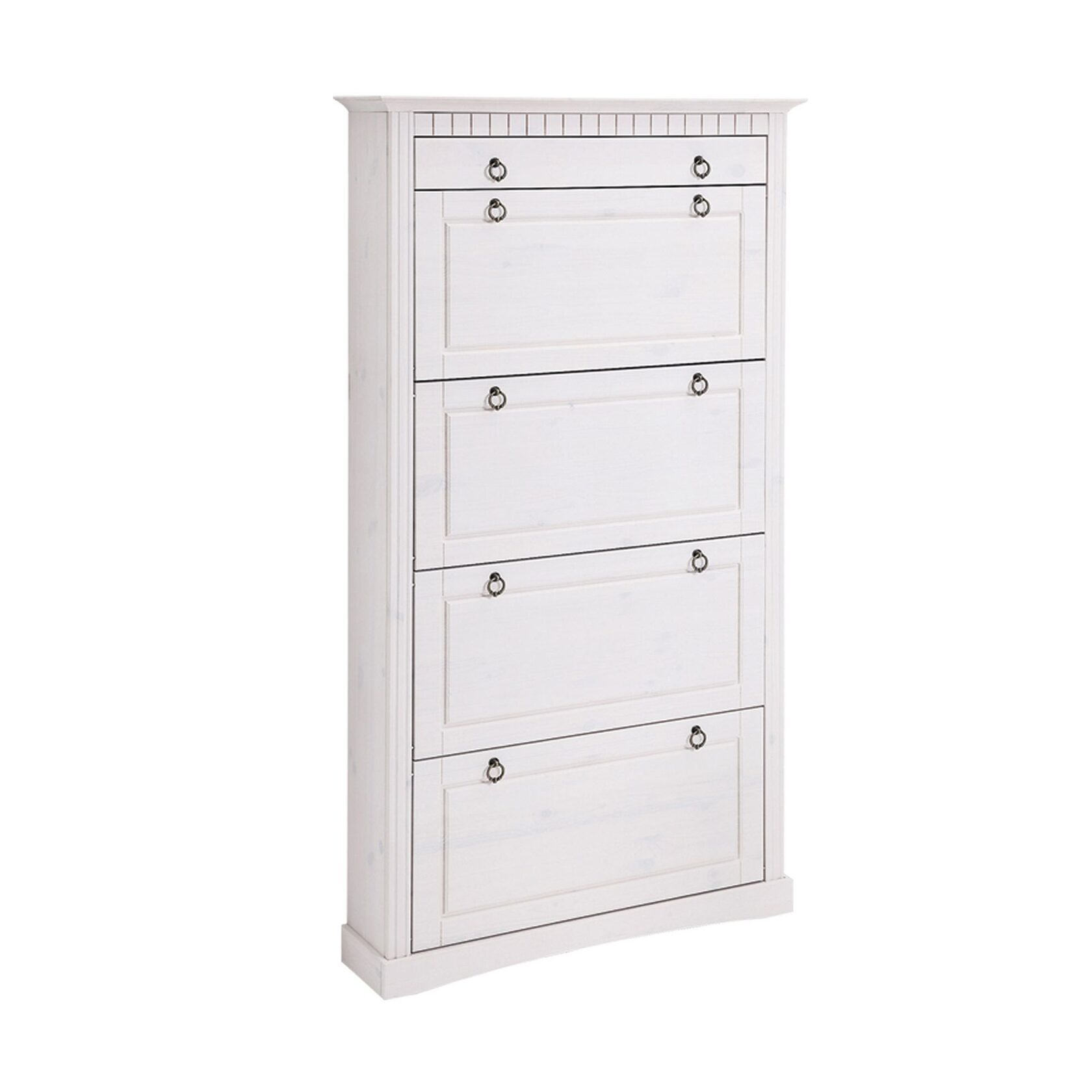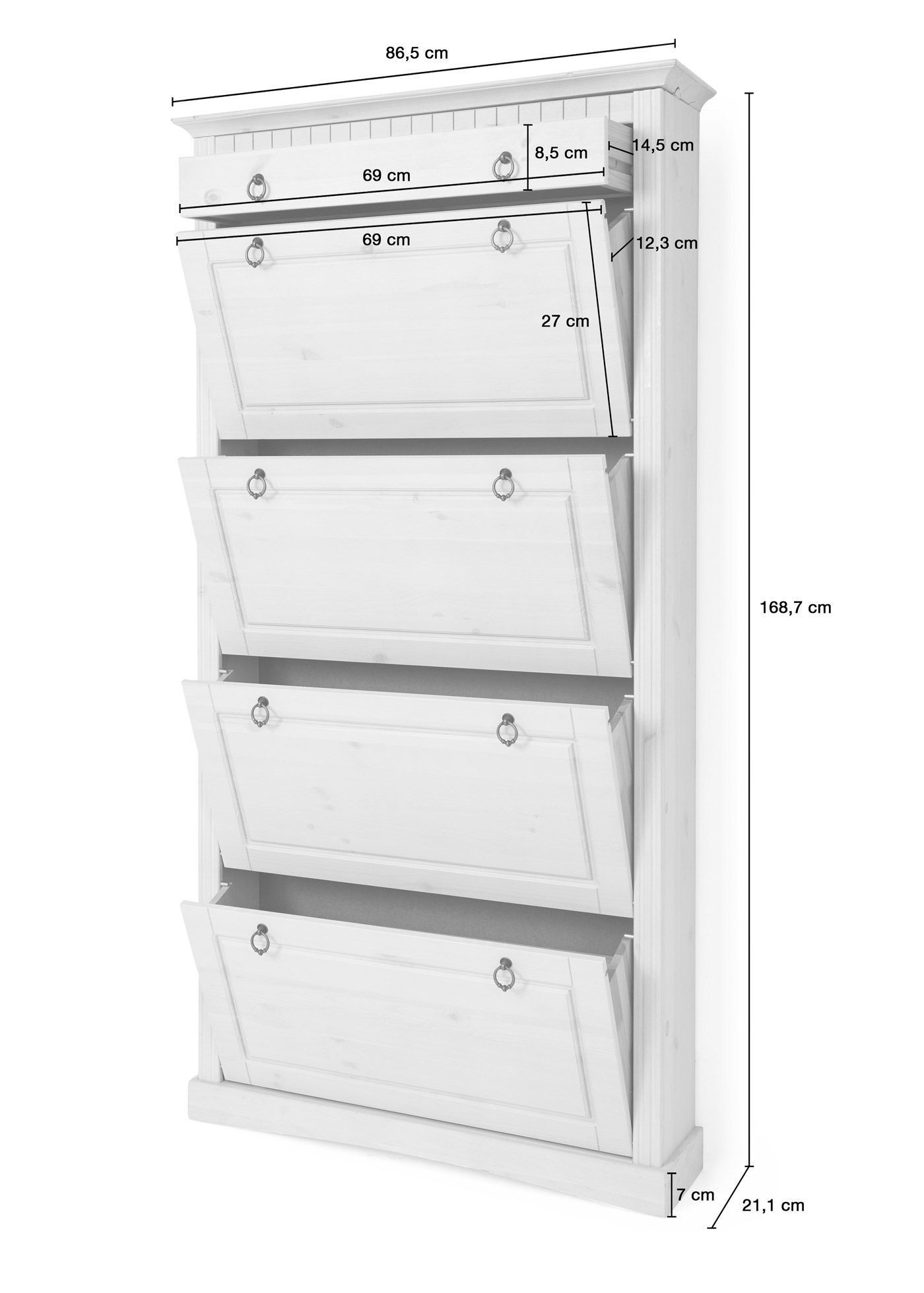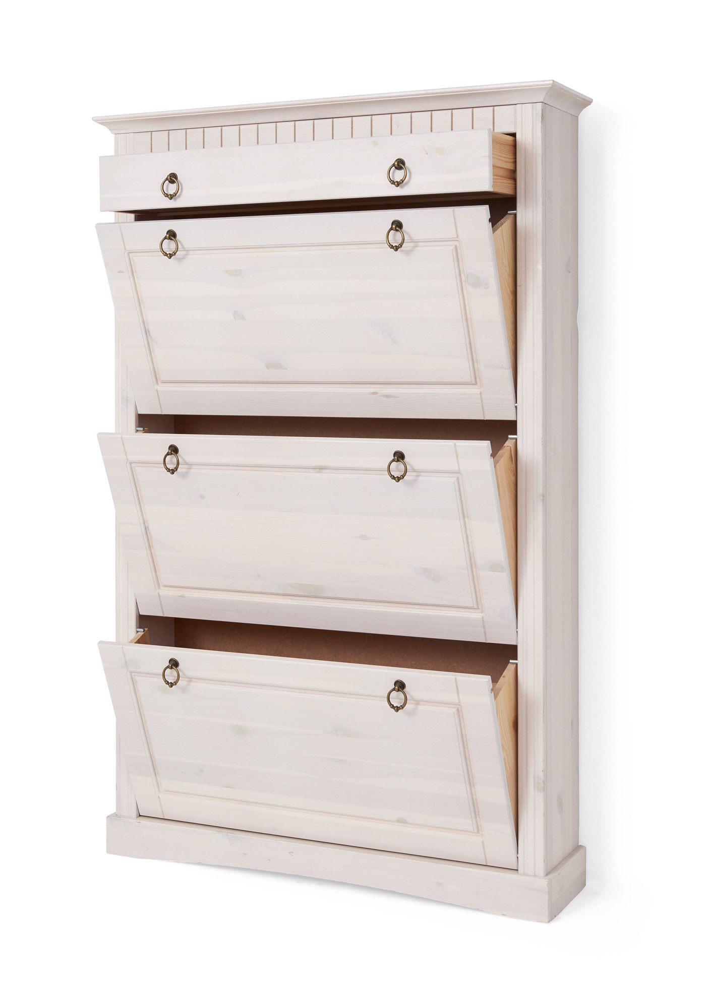 Выполненная из массива сосны, эта тумба для обуви не только предлагает удобное место для хранения обуви и других предметов, но и служит полноценным элементом интерьера прихожей. Благодаря белому цвету (за счет покрытия натуральным воском) обувница добавит элегантности и красоты Вашему помещению, сохранит приятный хвойный аромат и полезные свойства дерева. Это обеспечивает не только стойкость к внешним воздействиям, но и подчеркивает естественную красоту массива дерева. Фасад комода для обуви дополнен декоративными резными вставками, которые добавит изысканности в ваше помещение.