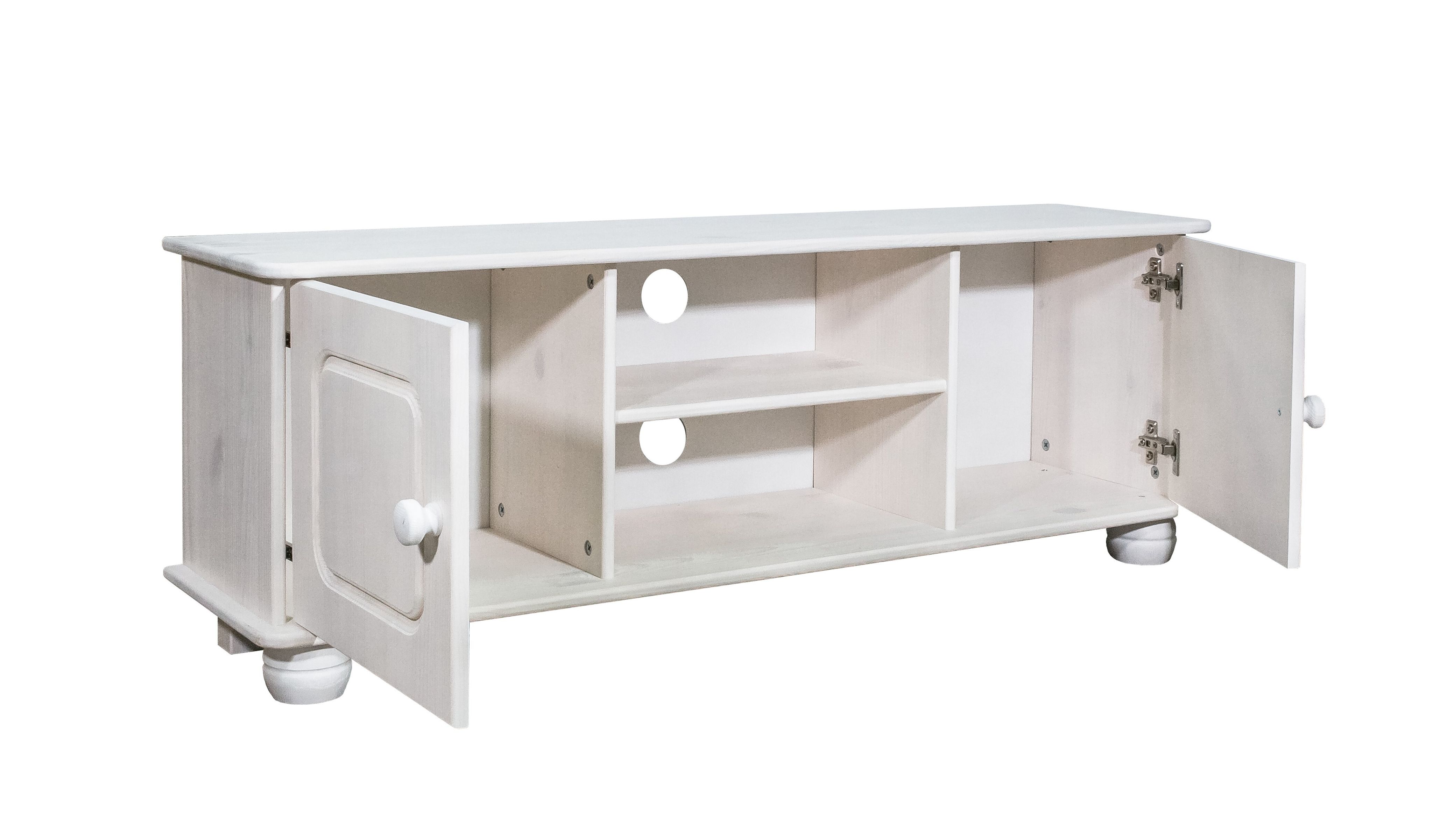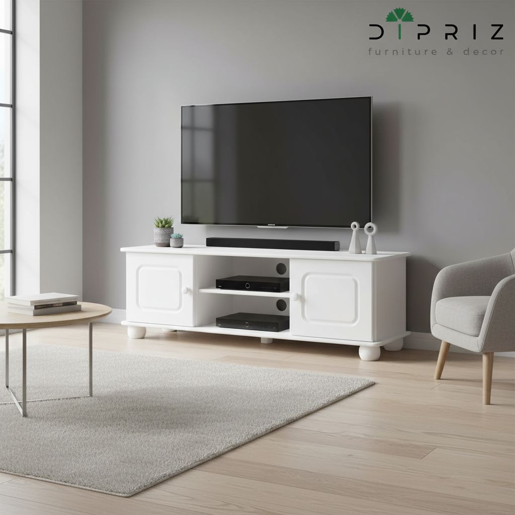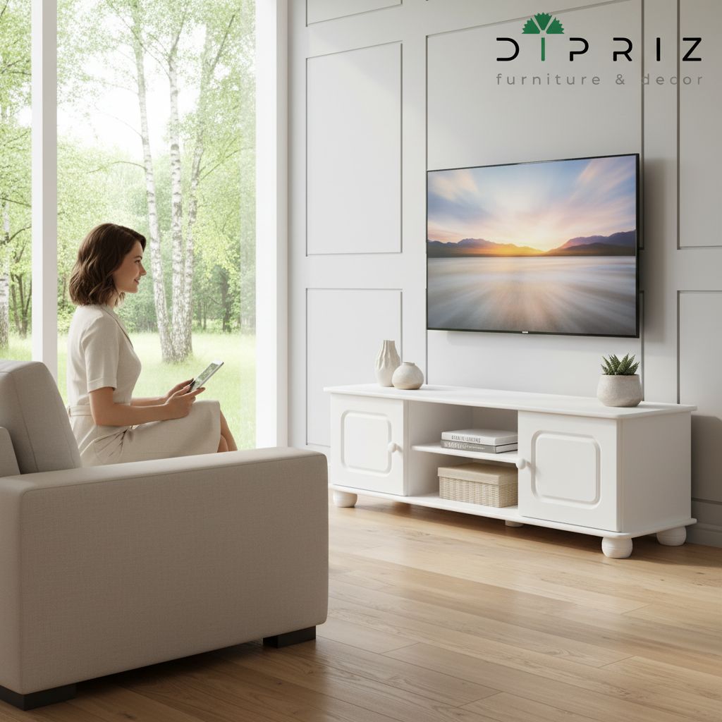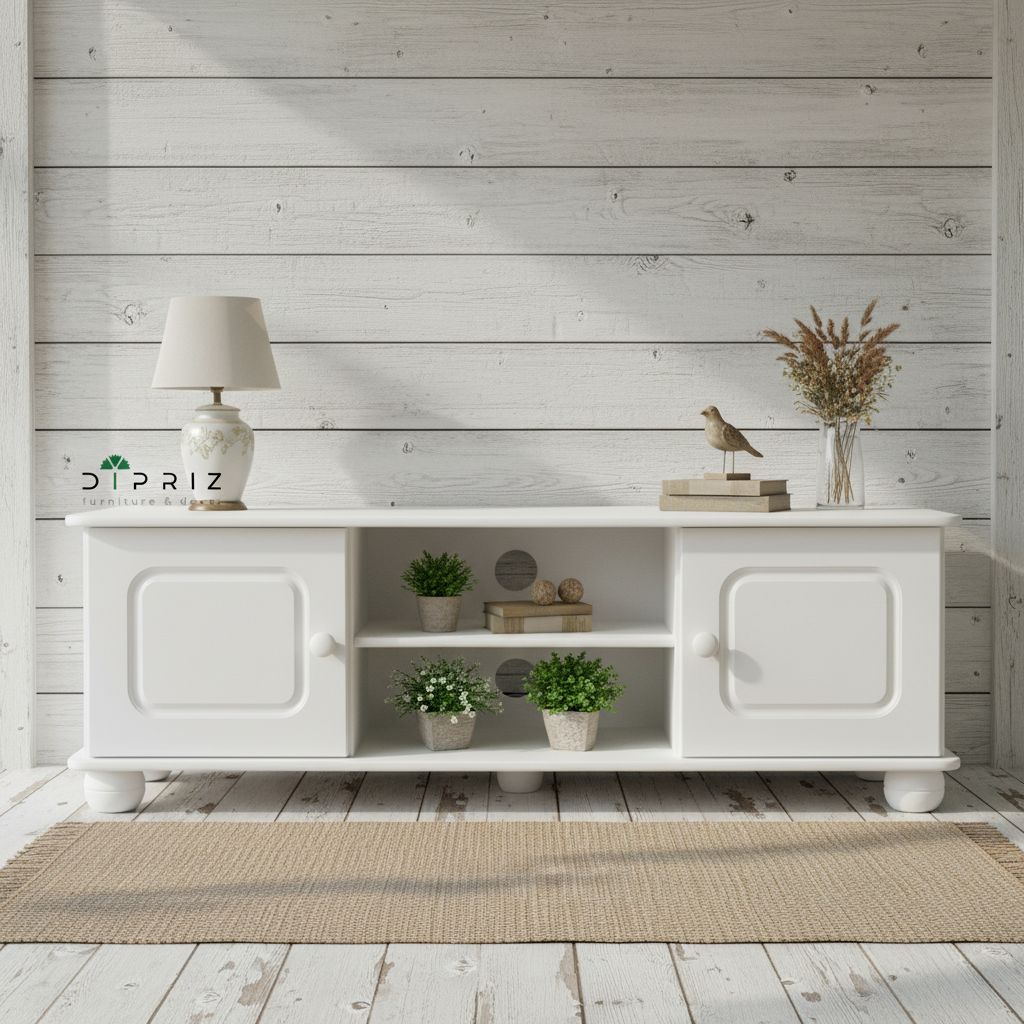 Тумба под ТВ «Хаба» от белорусской фабрики Dipriz — это стильное и практичное решение для гостиной. Изготовлена из массива сосны и покрыта экологичным белым воском на водной основе, который создаёт ровную матовую поверхность, скрывающую текстуру дерева, и надёжно защищает мебель. Компактные размеры сочетаются с продуманной организацией пространства: открытые полки для техники и секция за дверцами для хранения.