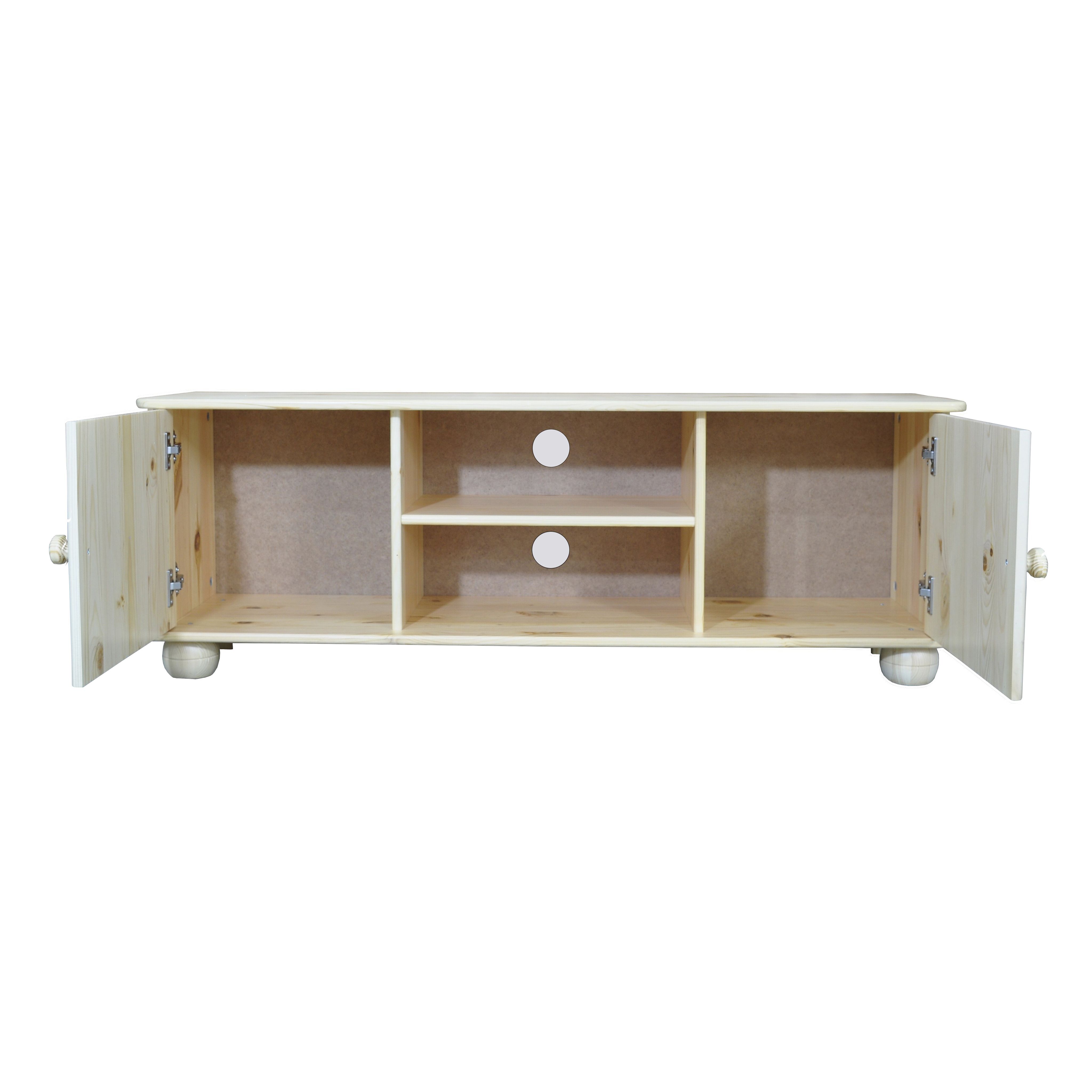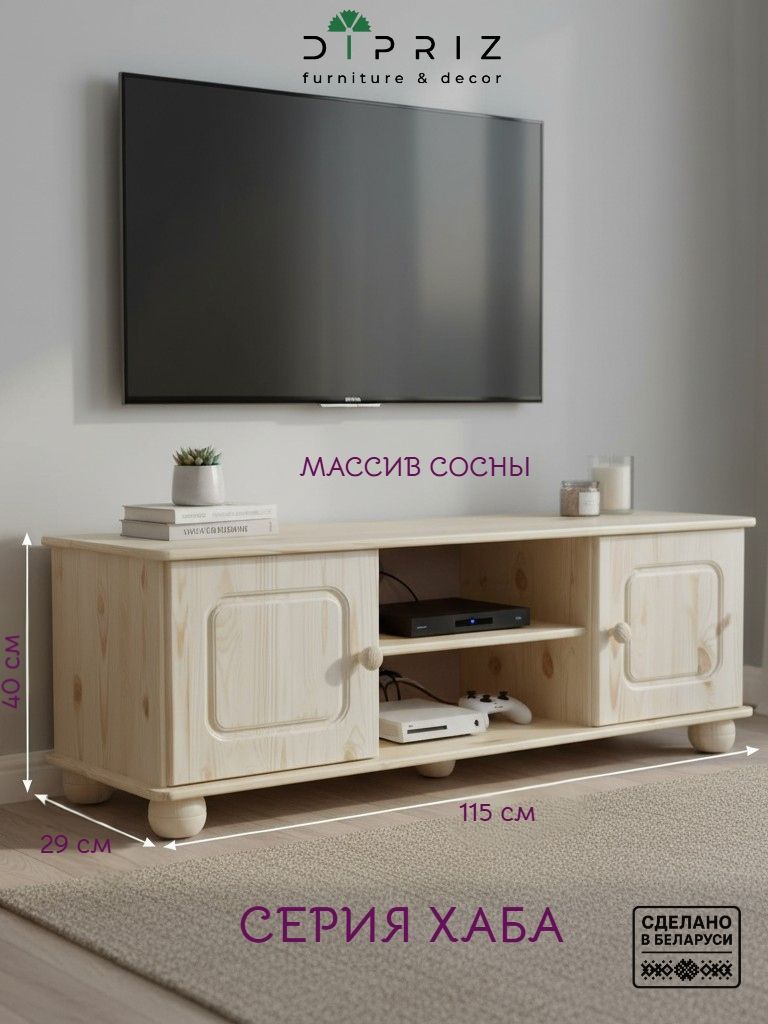 Тумба под телевизор Хаба изготовлена из натурального дерева с использованием экологически чистых отделочных материалов. Изделия тщательно отшлифовано и поставляется без отделки, благодаря чему поверхность можно покрыть любым составом по вашему желанию, обладает шелковисто-бархатным блеском, выглядит аккуратно и приятна на ощупь. Тв тумба сохраняет максимально естественный внешний вид. Главное достоинство этого вида отделки - это видимый признак благородного происхождения материала. Неоднородность текстуры сосны с богатством цветовых переливов не скрывается отделкой и подчеркивает всю красоту натурального дерева.