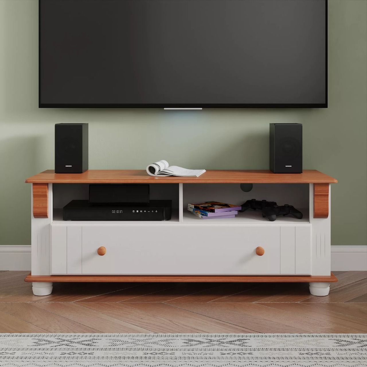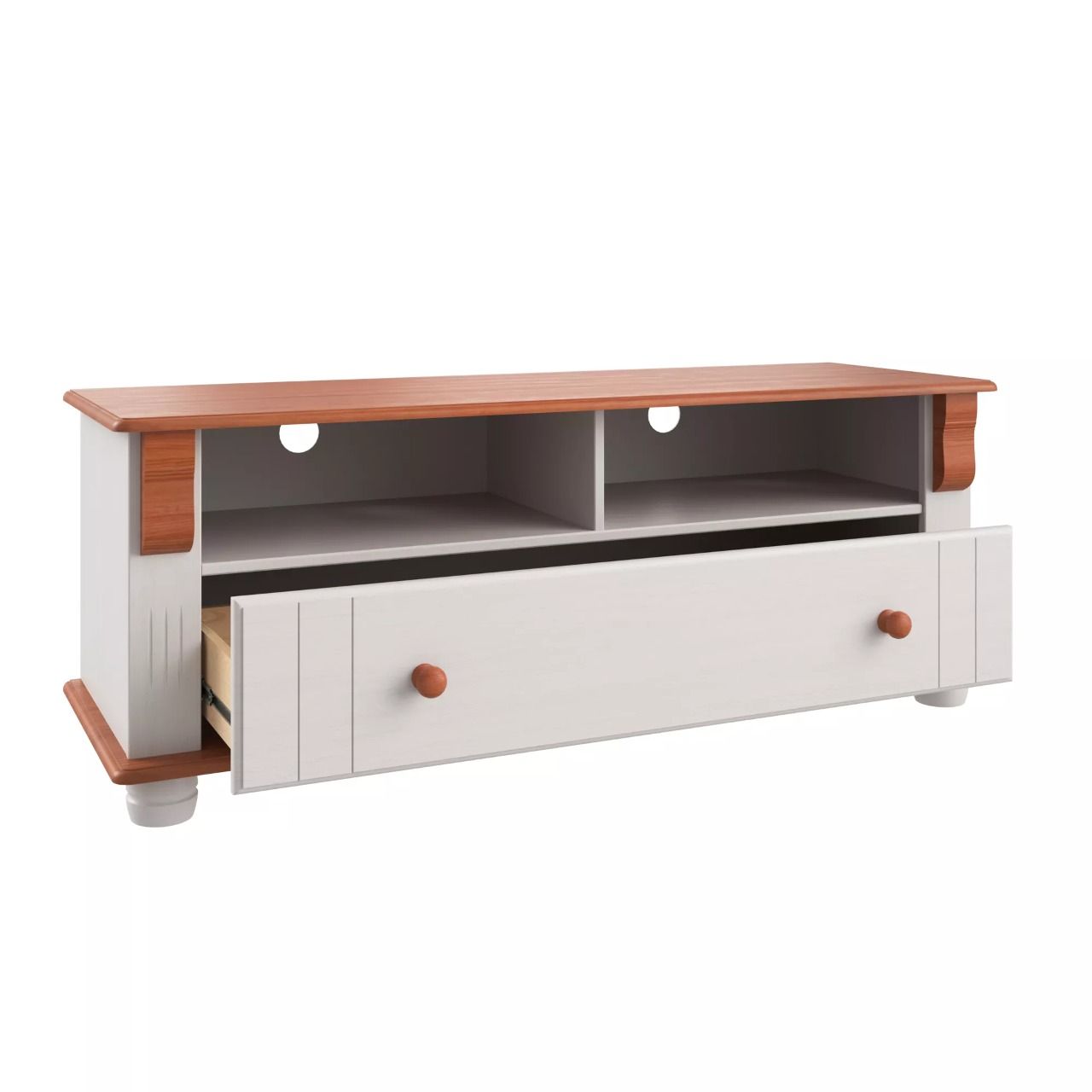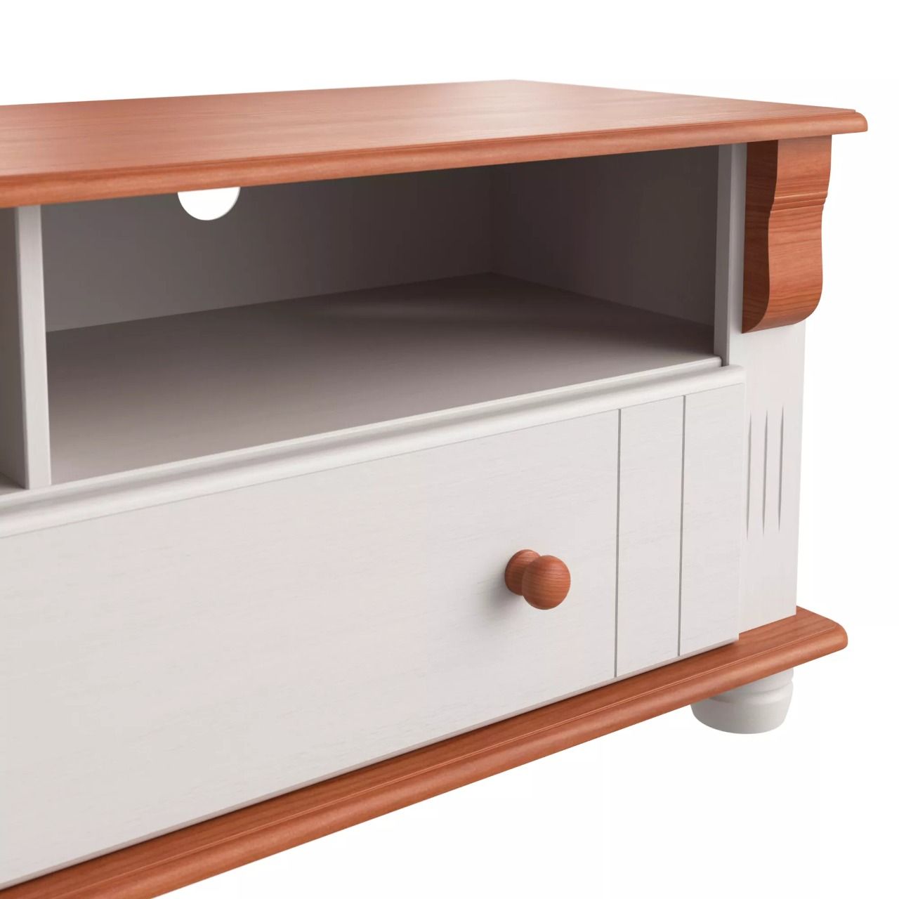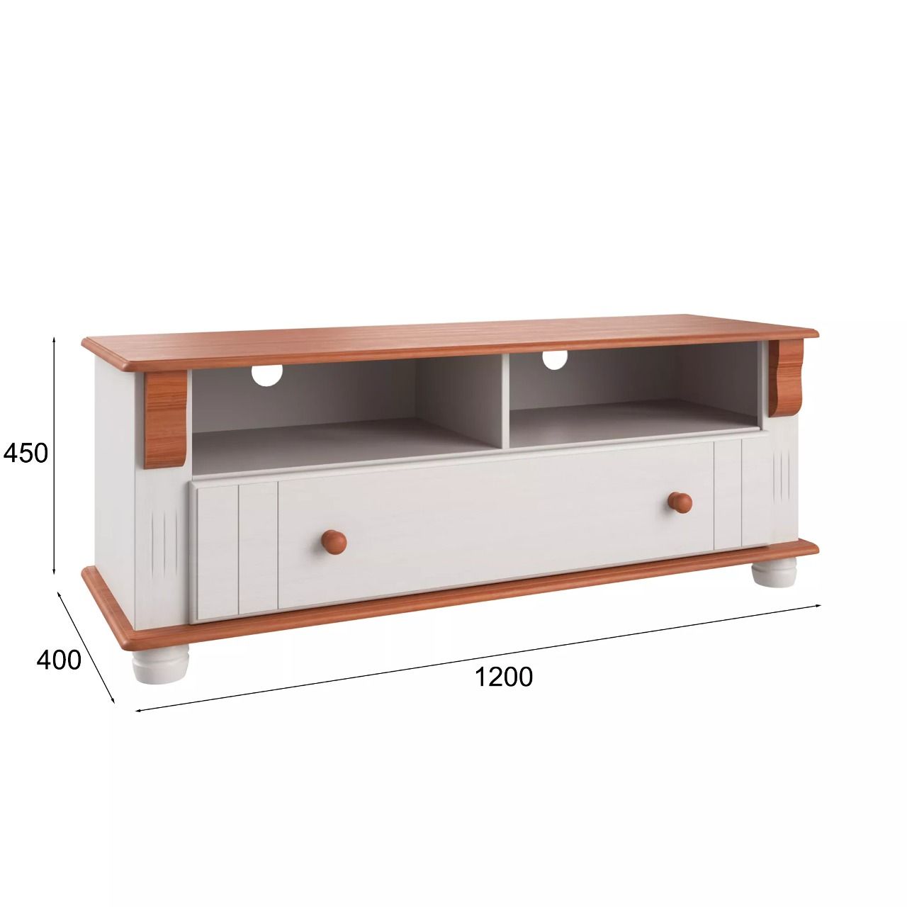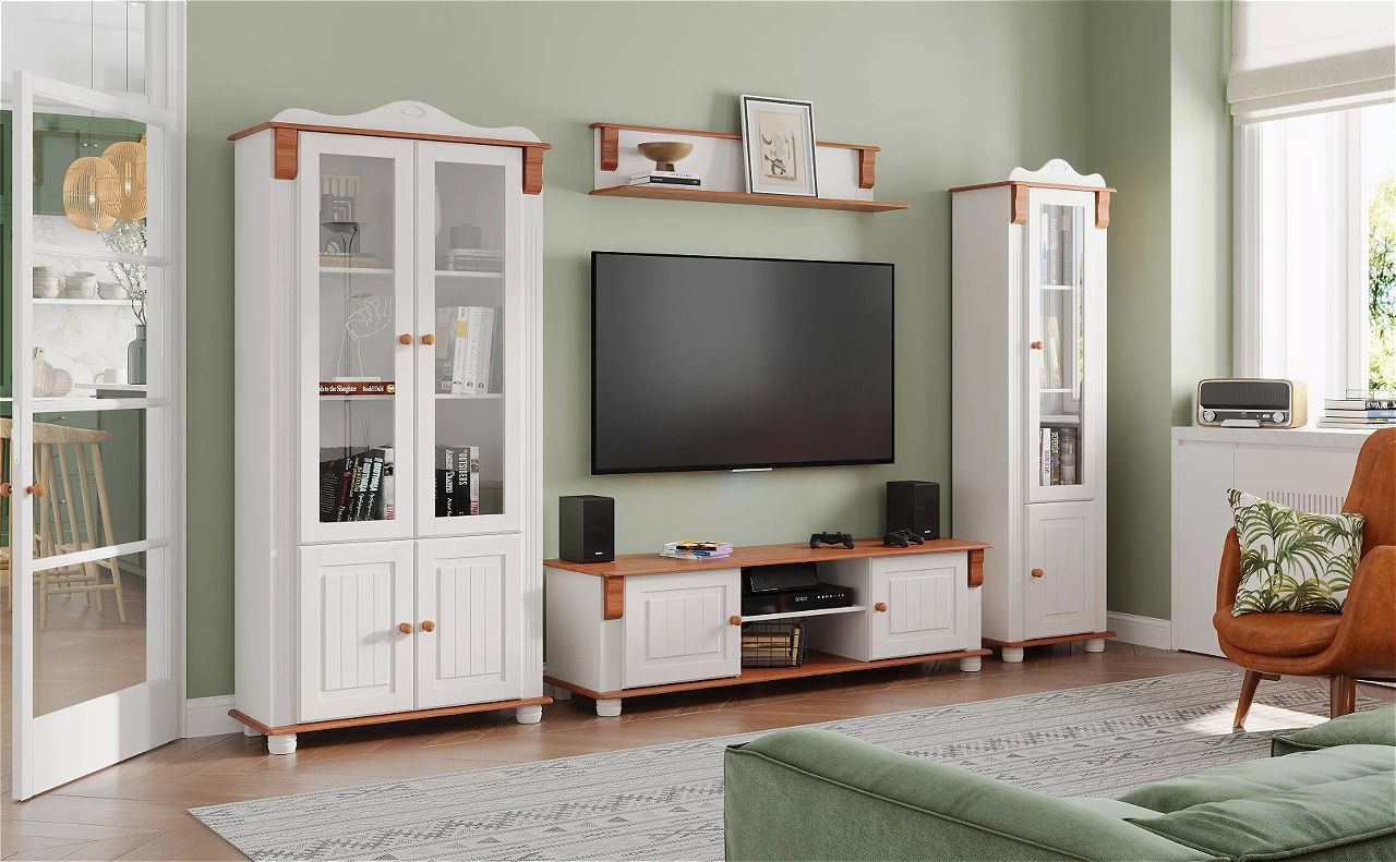 Тумба под телевизор "Адель" — это стильная и практичная мебель для гостиной, изготовленная из натурального дерева. Её классический дизайн сочетает теплые древесные оттенки с благородным светлым фасадом, создавая уютную и гармоничную атмосферу в интерьере.