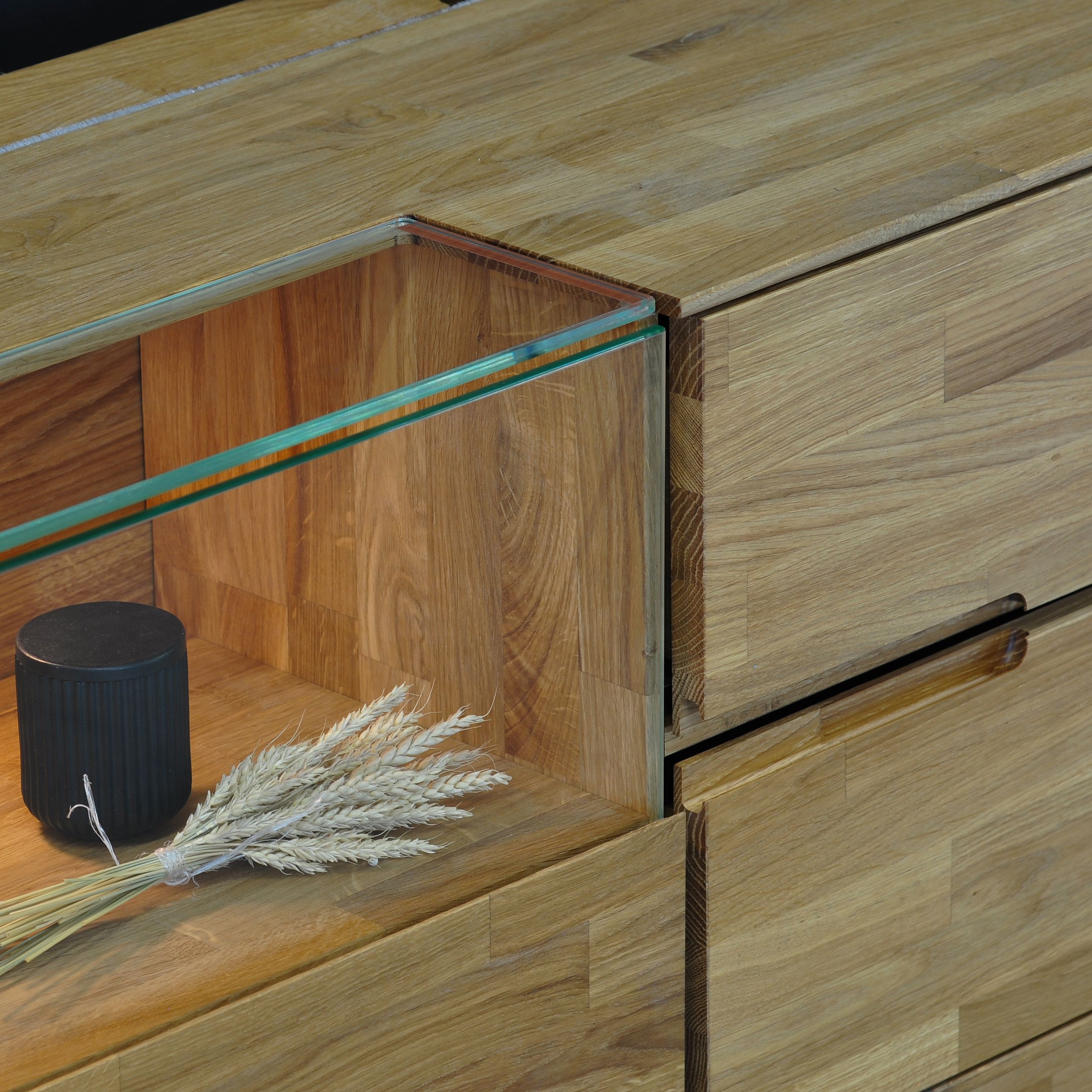 Лаконичная и практичная тумба под телевизор 1 дверь, 4 ящика Паво от белорусского производителя ООО "Диприз" создана из массива дуба. Эта великолепная тумба - воплощение вкуса и стиля. Нотки роскоши и стабильности добавит Паво в обстановку Вашего дома, при этом сделав ее невероятно уютной и комфортной. Благодаря светодиодным подсветкам, теплый, успокаивающий свет мягко проливается сквозь стеклянные вставки на крышке и дверце тумбы, создавая особую атмосферу психологического комфорта. Вместительное и очень функциональное изделие, не только украсит дизайн помещения, но и позволит разместить на полочке за стеклянной дверцей. и в четырех глубоких, отделанных внутри экокожей, ящиках множество необходимых предметов. При отделке изделия применены экологически чистые материалы, подчеркивающие благородство дуба. Дубовая тумба, это еще и удачная инвестиция, т.к. это качественное изделие имеет очень долгий срок эксплуатации. Этот предмет мебели изготовлен на века и выглядит он тоже дорого и добротно. Тумба под TV Паво отлично впишется в любой интерьер. В комплекте идет инструкция по сборке.
