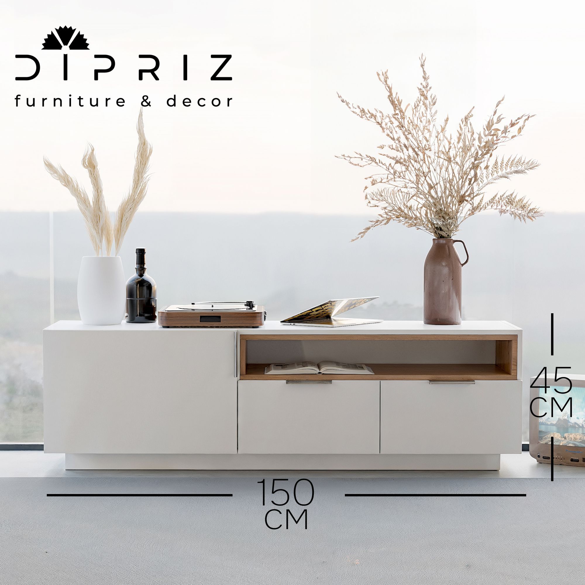 - Широкая тумба (150х42х45 см) предоставит много места для хранения в Вашей комнате.