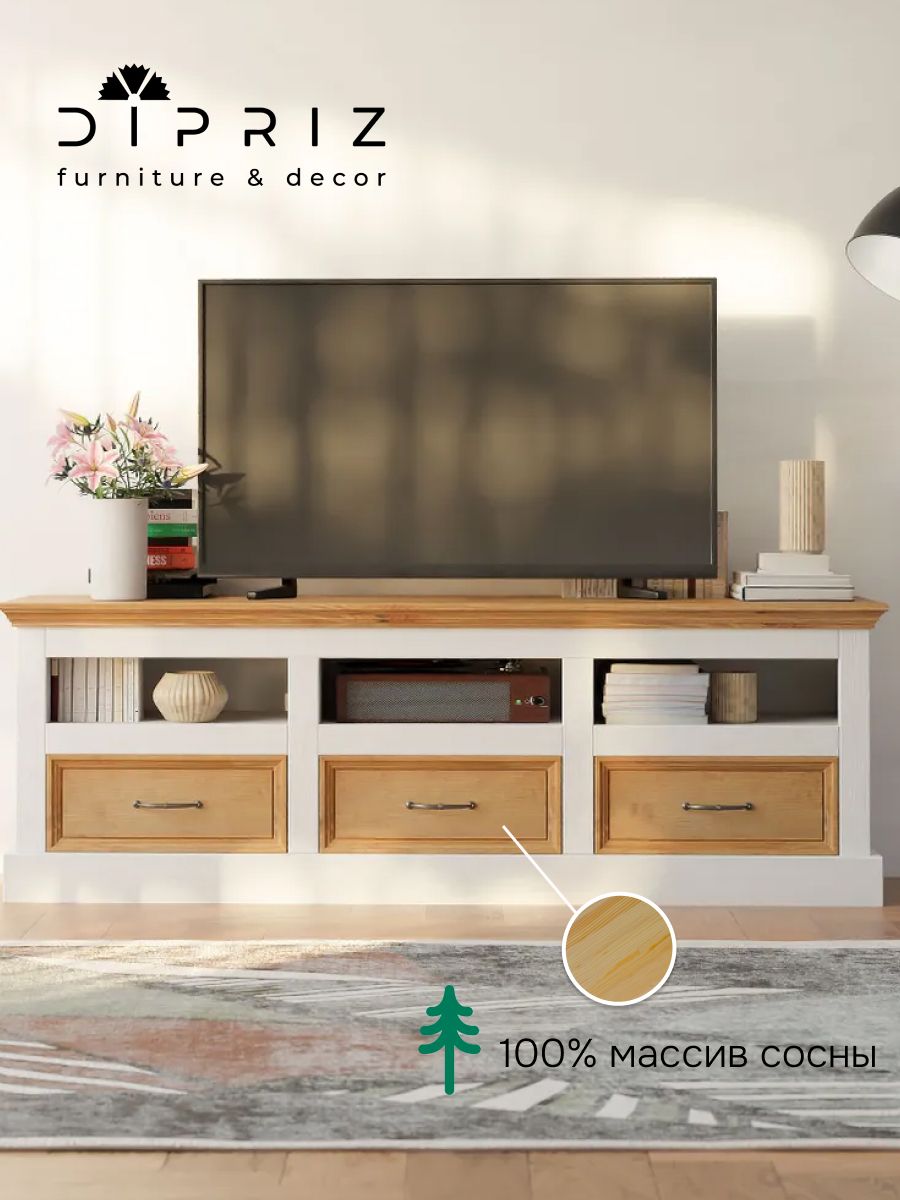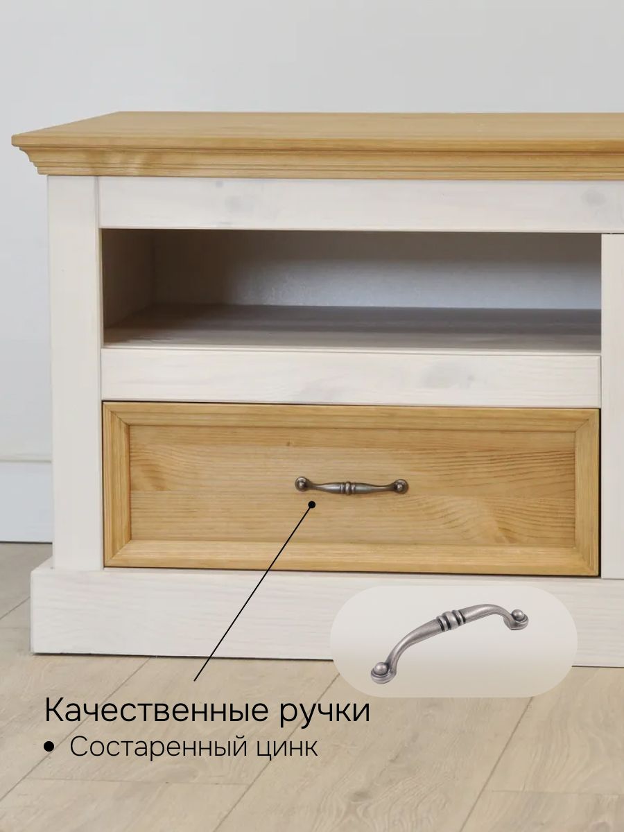 Белая тумба под телевизор Landhouse с элементами из натурального дерева - это идеальное решение для тех, кто хочет создать уютную и стильную обстановку в своей гостиной. Этот товар изготовлен из массива сосны, что обеспечивает долгий срок службы и высокую прочность конструкции. Кроме того, тумба оснащена эмалевым покрытием, которое делает ее более долговечной и защищенной от повреждений.