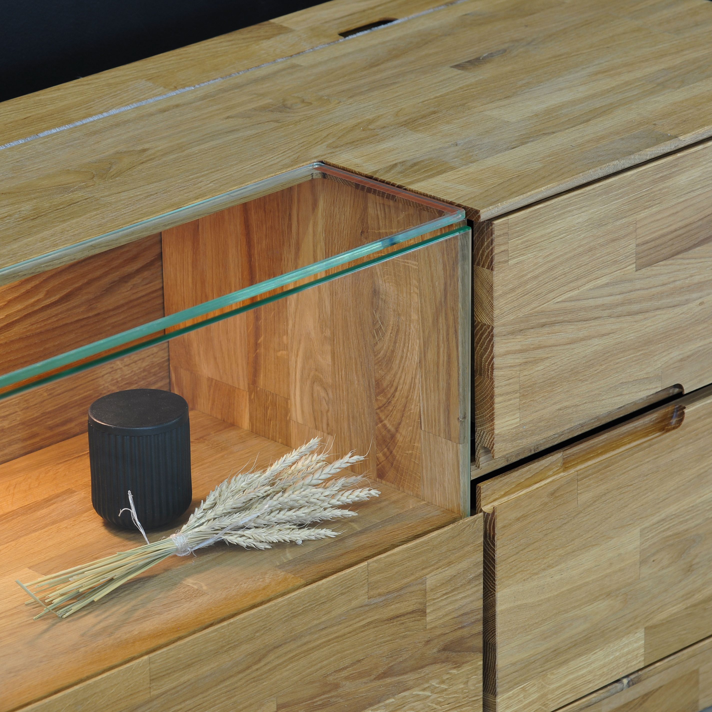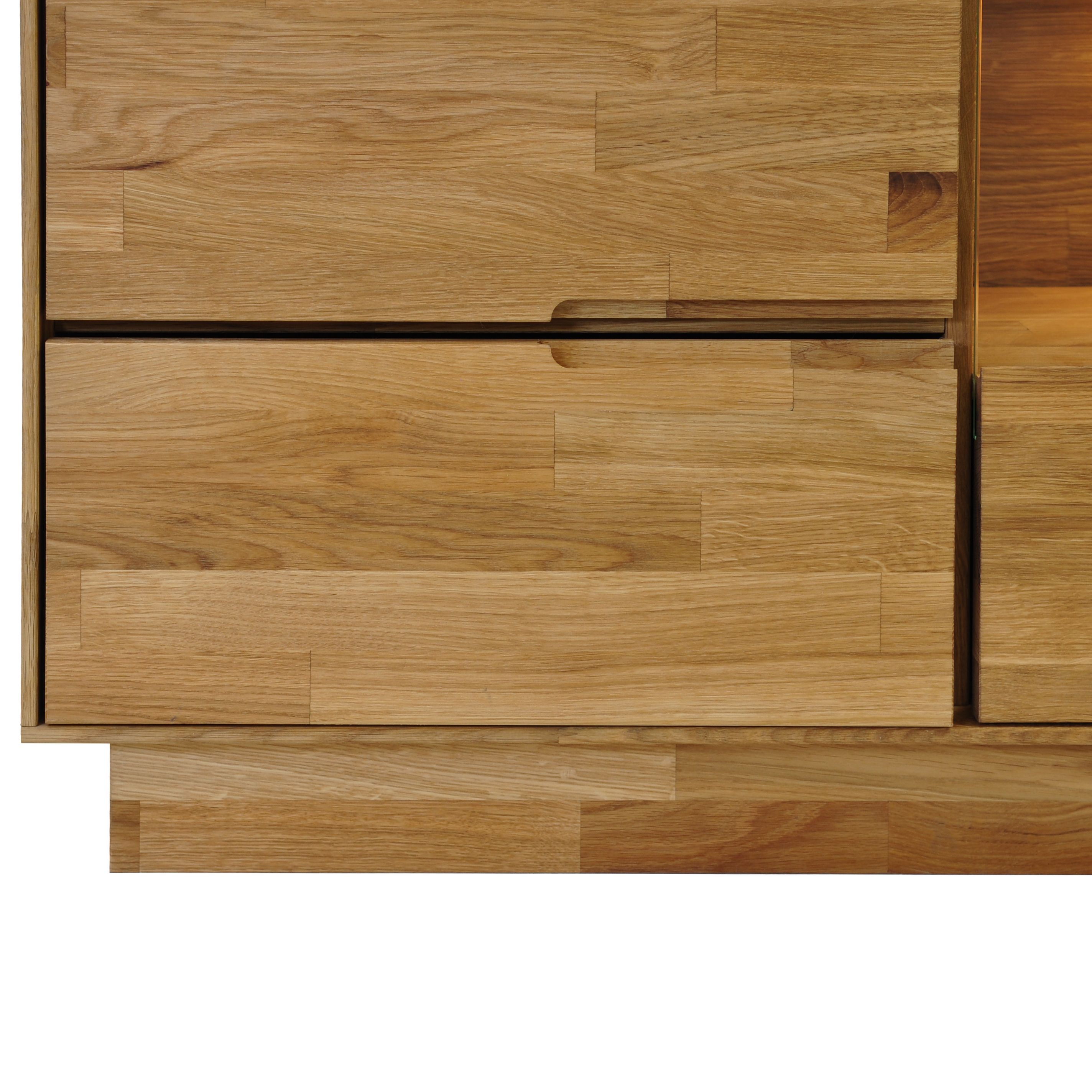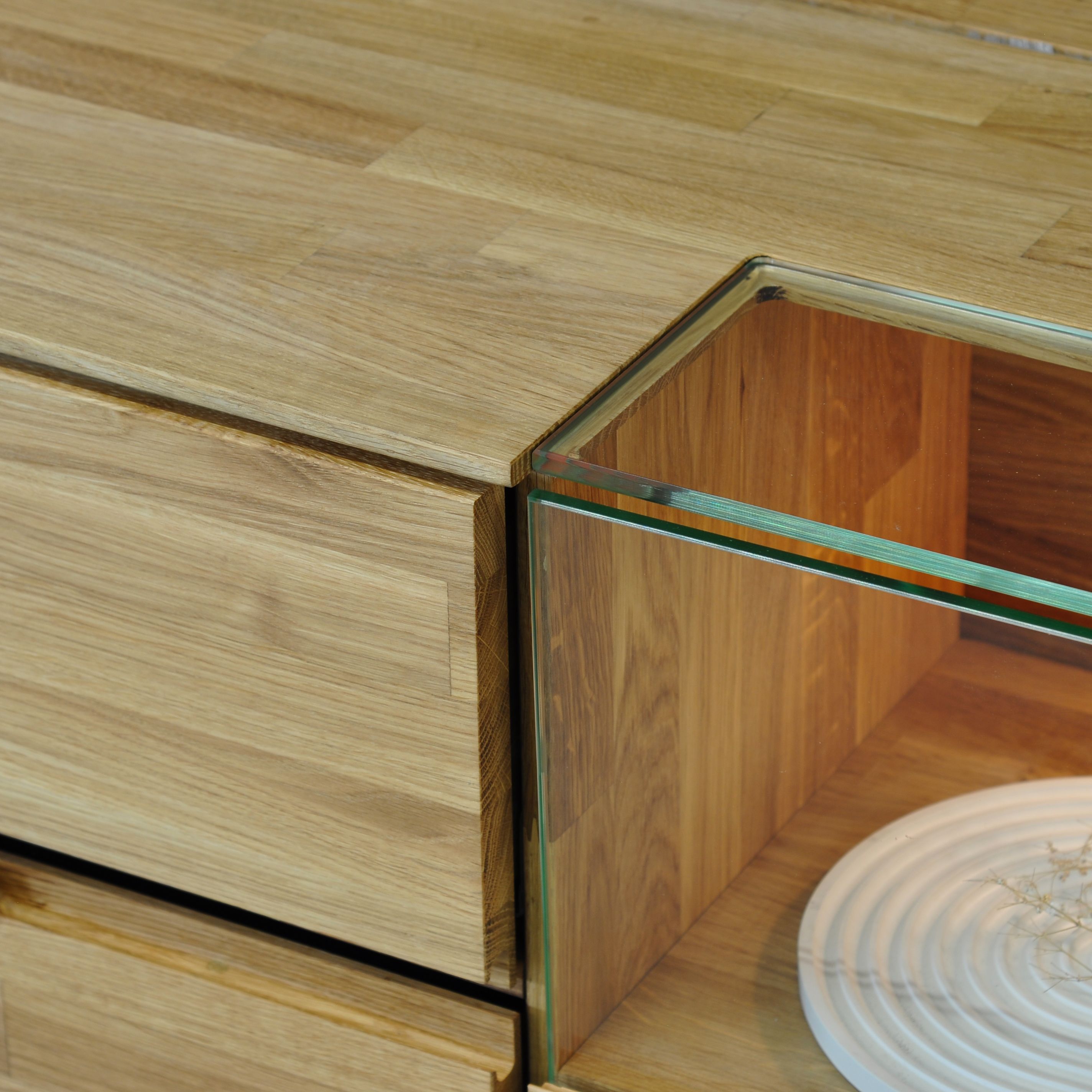Лаконичная и практичная тумба под телевизор 2 двери, 4 ящика Паво от белорусского производителя ООО "Диприз" создана из массива дуба. Эта великолепная тумба - воплощение вкуса и стиля. Нотки роскоши и стабильности добавит Паво в обстановку Вашего дома, при этом сделав ее невероятно уютной и комфортной. Благодаря светодиодным подсветкам, теплый, успокаивающий свет мягко проливается сквозь стеклянные вставки на крышке и дверцах тумбы, создавая особую атмосферу психологического комфорта. Вместительное и очень функциональное изделие, не только украсит дизайн помещения, но и позволит разместить на полочках за стеклянной дверцей. и в четырех глубоких, отделанных внутри экокожей, ящиках множество необходимых предметов. При отделке изделия применены экологически чистые материалы, подчеркивающие благородство дуба. Дубовая тумба, это еще и удачная инвестиция, т.к. это качественное изделие имеет очень долгий срок эксплуатации. Этот предмет мебели изготовлен на века и выглядит он тоже дорого и добротно. Тумба под TV Паво отлично впишется в любой интерьер.