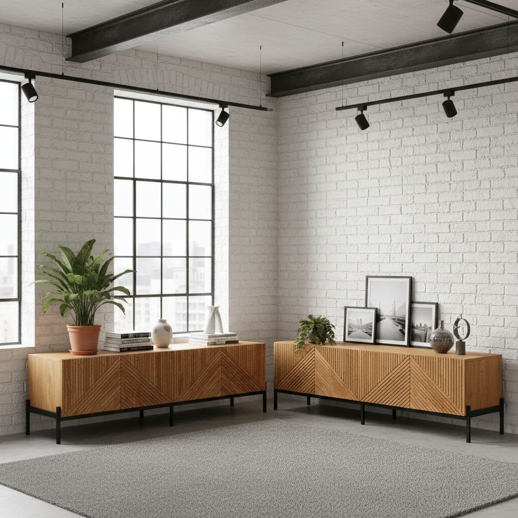 Не упустите возможность приобрести эту потрясающую тумбу под телевизор из дуба и создать уникальный интерьер вашей гостиной в сочетании с другими предметами мебели в лофт стиле.