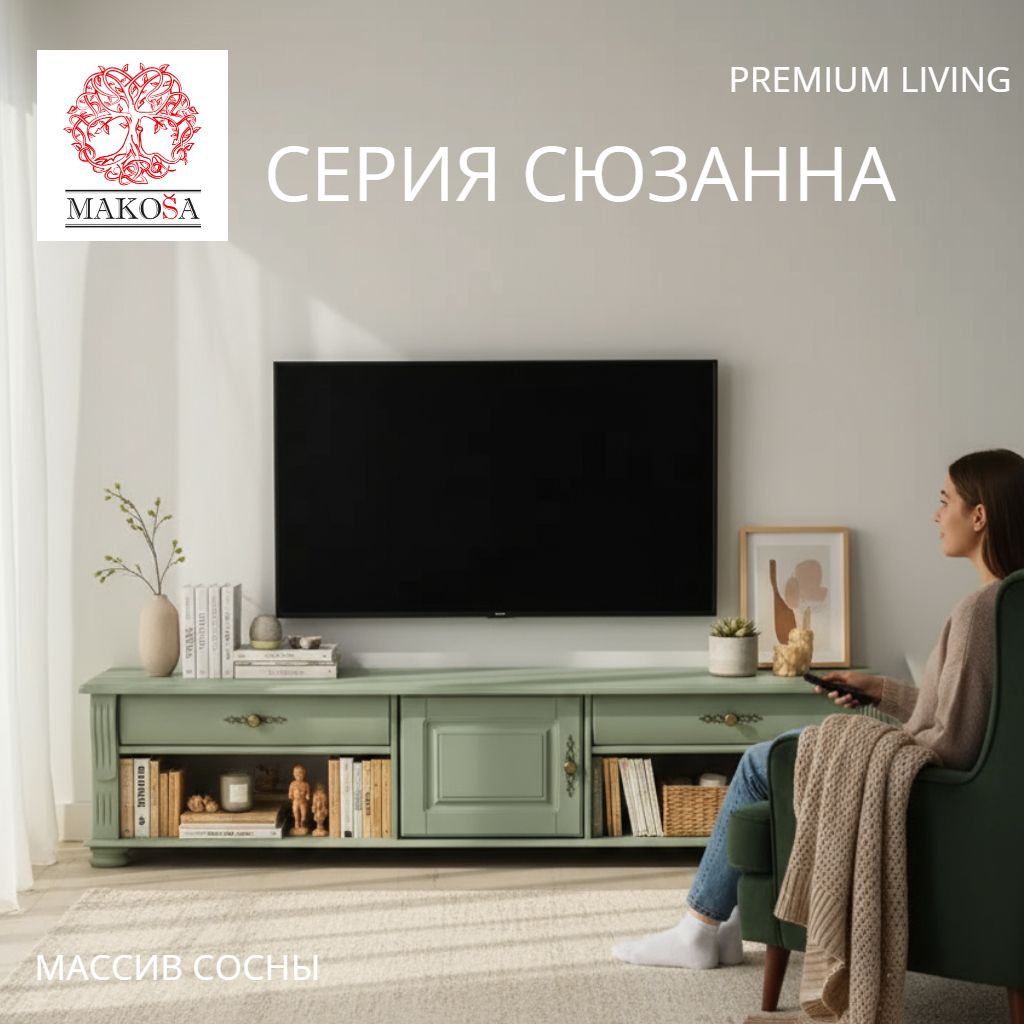 Стильная и экологичная тумба под телевизор Сюзанна из массива сосны: дополните свежестью ваш интерьер!