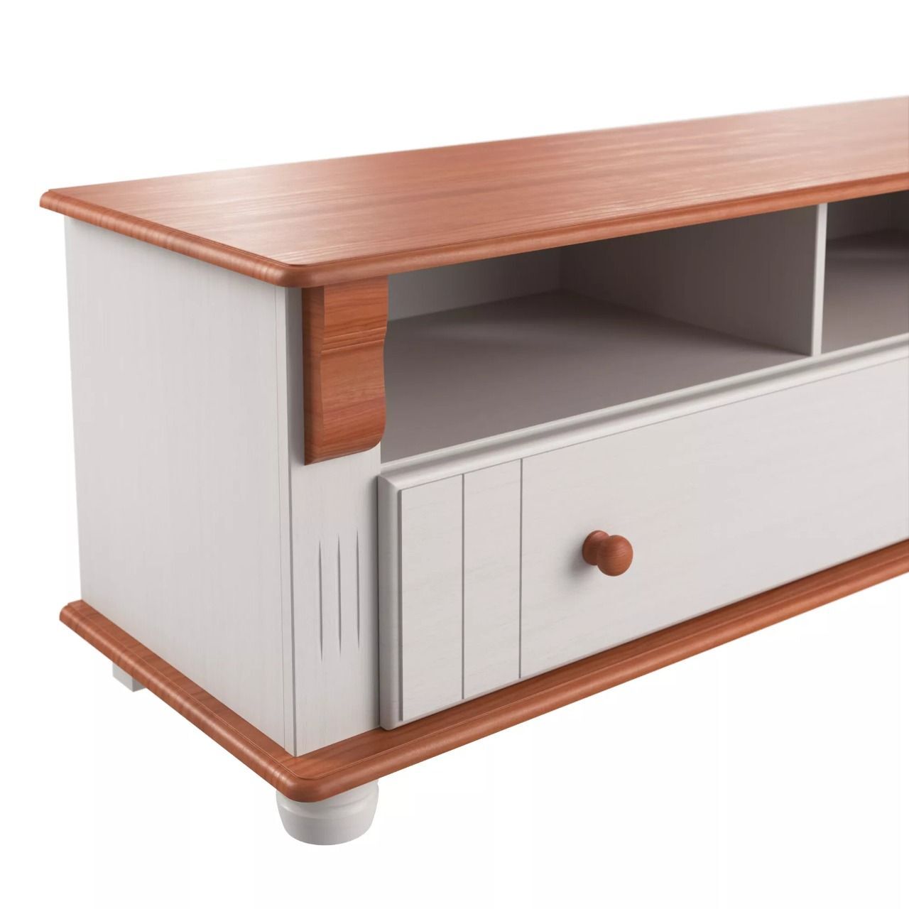Тумба под телевизор "Адель" — это стильная и практичная мебель для гостиной, изготовленная из натурального дерева. Её классический дизайн сочетает теплые древесные оттенки с благородным светлым фасадом, создавая уютную и гармоничную атмосферу в интерьере.