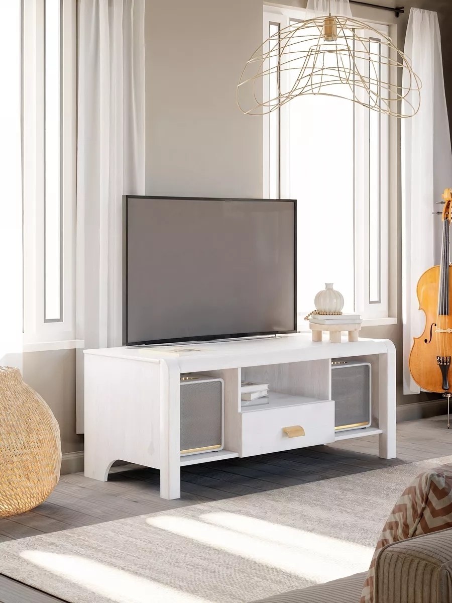 Тумба под телевизор Мадейра размером 120х49х58 см станет отличным дополнением вашей мебели для гостиной. Изготовленная из массива сосны, она обладает высокой прочностью и долговечностью. Устойчивый белый цвет в сочетании с натуральным деревом придаст помещению светлый и уютный вид. Наличие ящика позволяет удобно хранить различные аксессуары, документы или насадки от техники, что делает эту модель не только стильной, но и практичной.