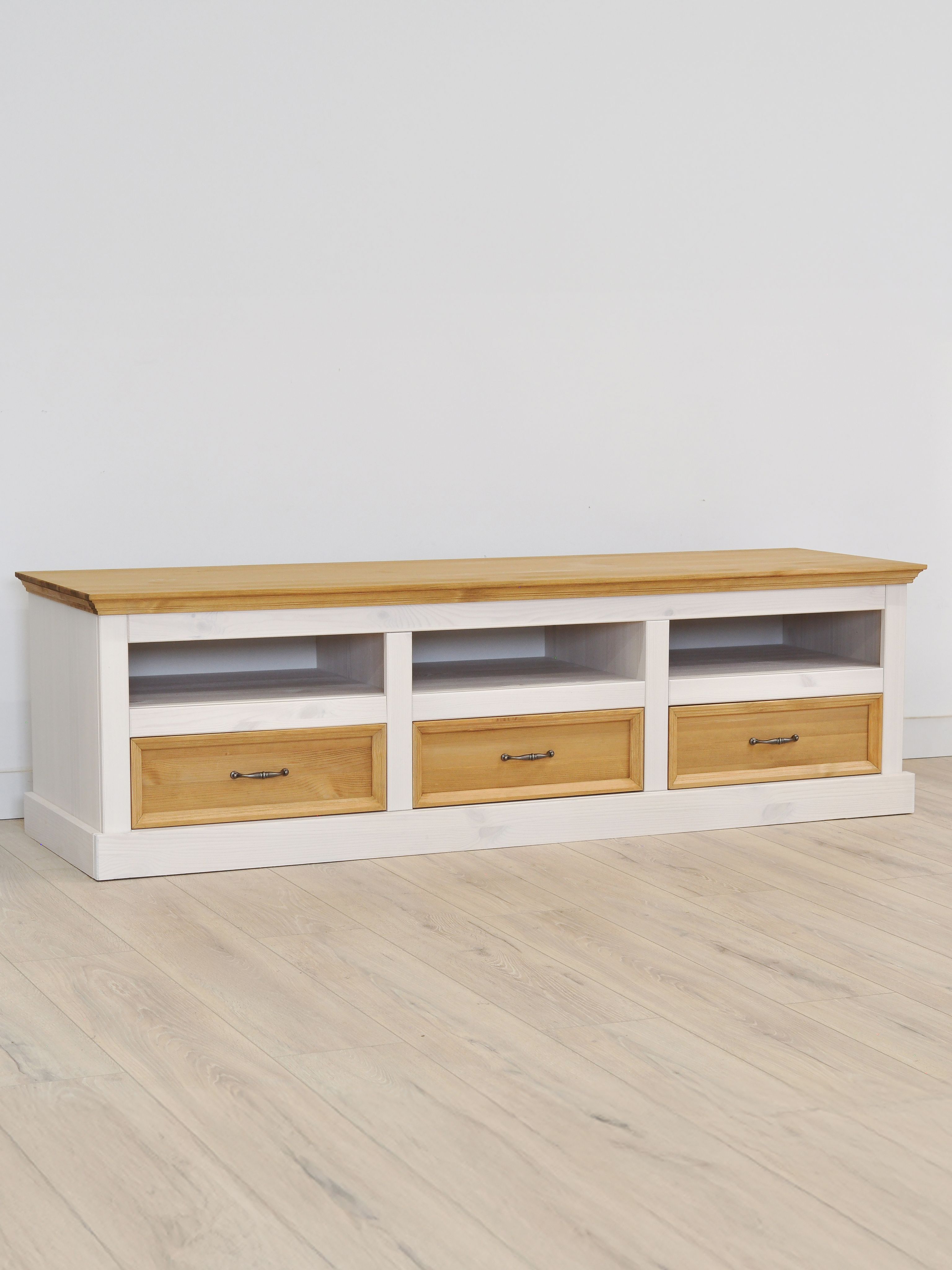 Белая тумба под телевизор Landhouse с элементами из натурального дерева - это идеальное решение для тех, кто хочет создать уютную и стильную обстановку в своей гостиной. Этот товар изготовлен из массива сосны, что обеспечивает долгий срок службы и высокую прочность конструкции. Кроме того, тумба оснащена эмалевым покрытием, которое делает ее более долговечной и защищенной от повреждений.