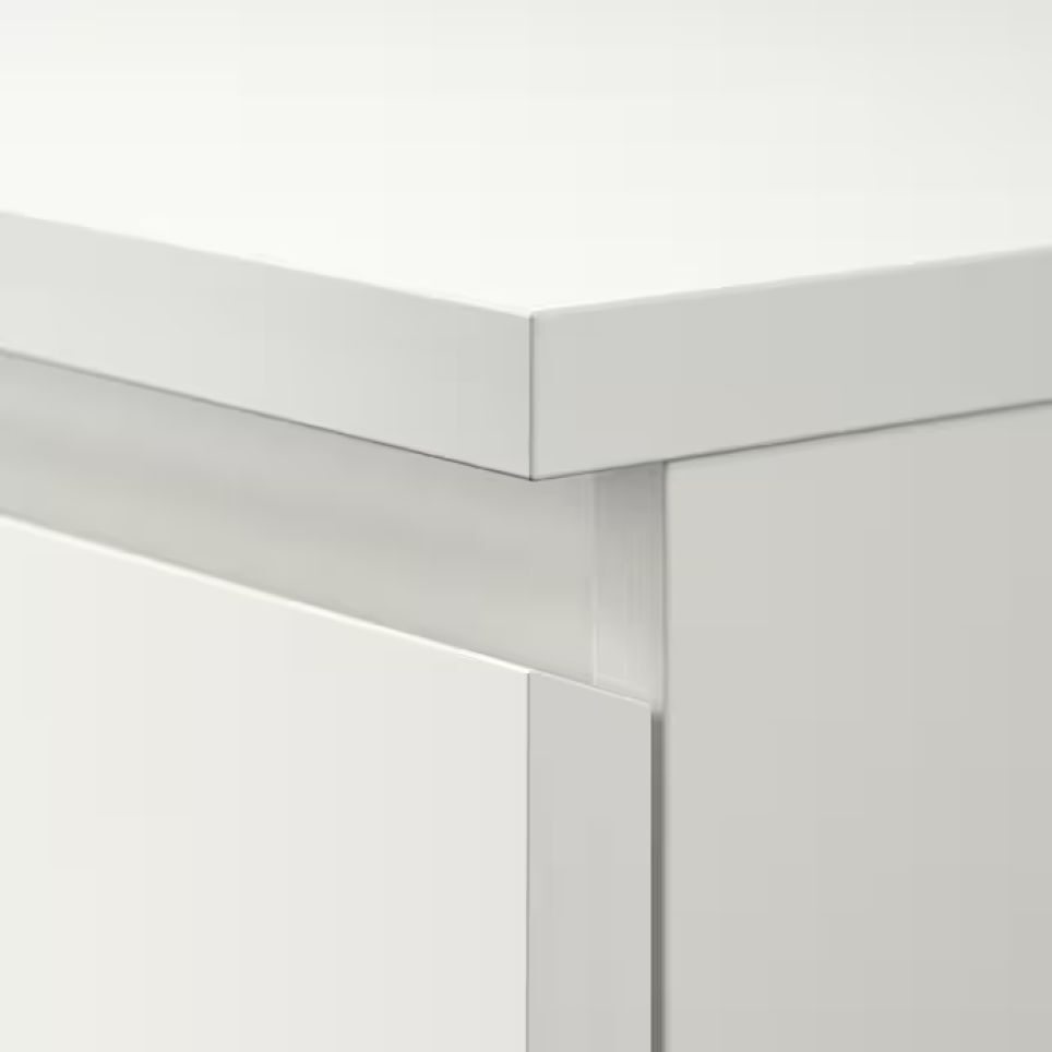Белая тумба оснащена 5 выдвижными ящиками и широкой открытой полкой. Благодаря глубине 48 см, эта тумба значительно вместительнее аналогичных моделей, позволяя удобно размещать даже большие предметы.