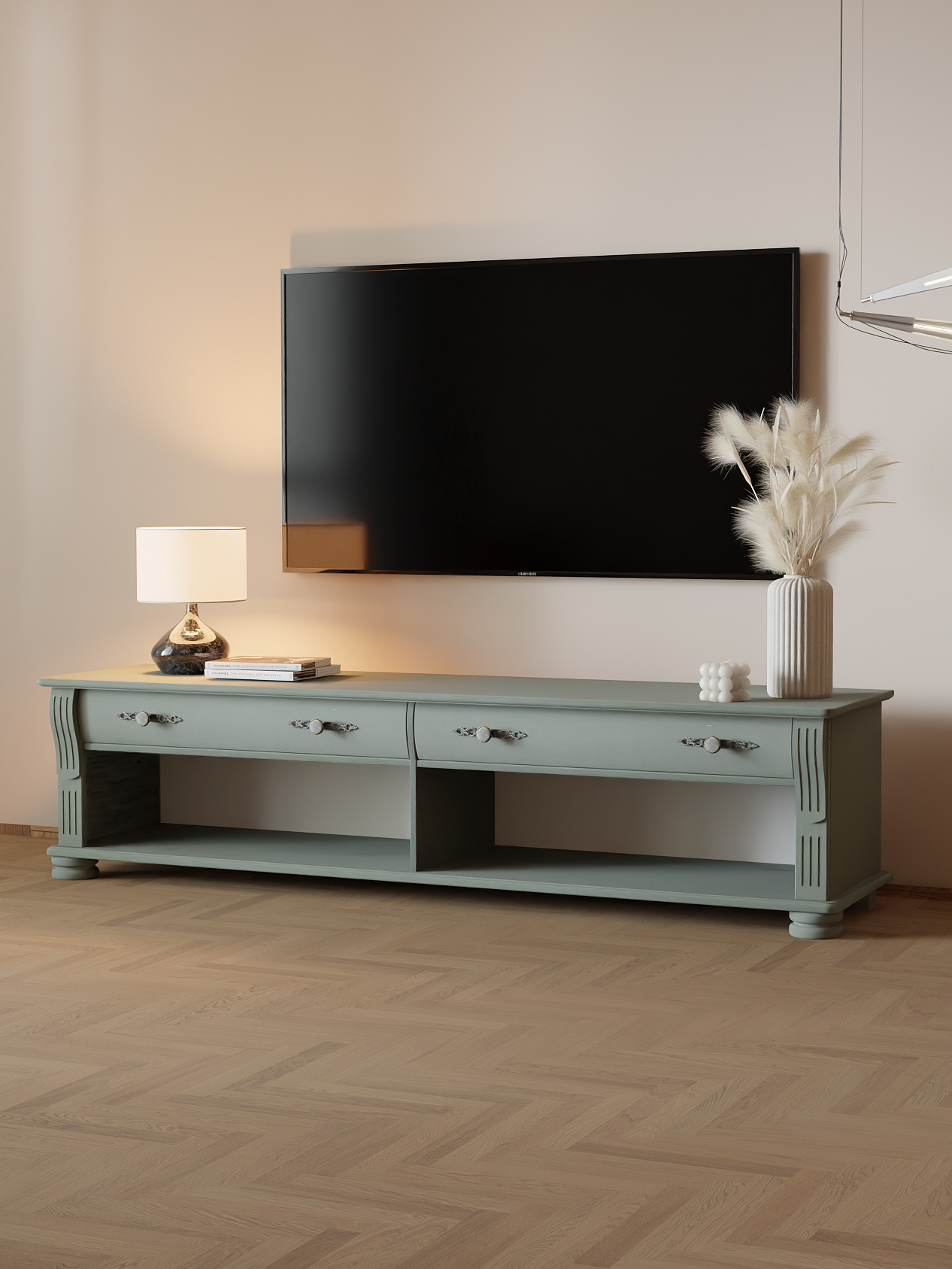 Стильная и экологичная тумба под телевизор Сюзанна из массива сосны: дополните свежестью ваш интерьер!