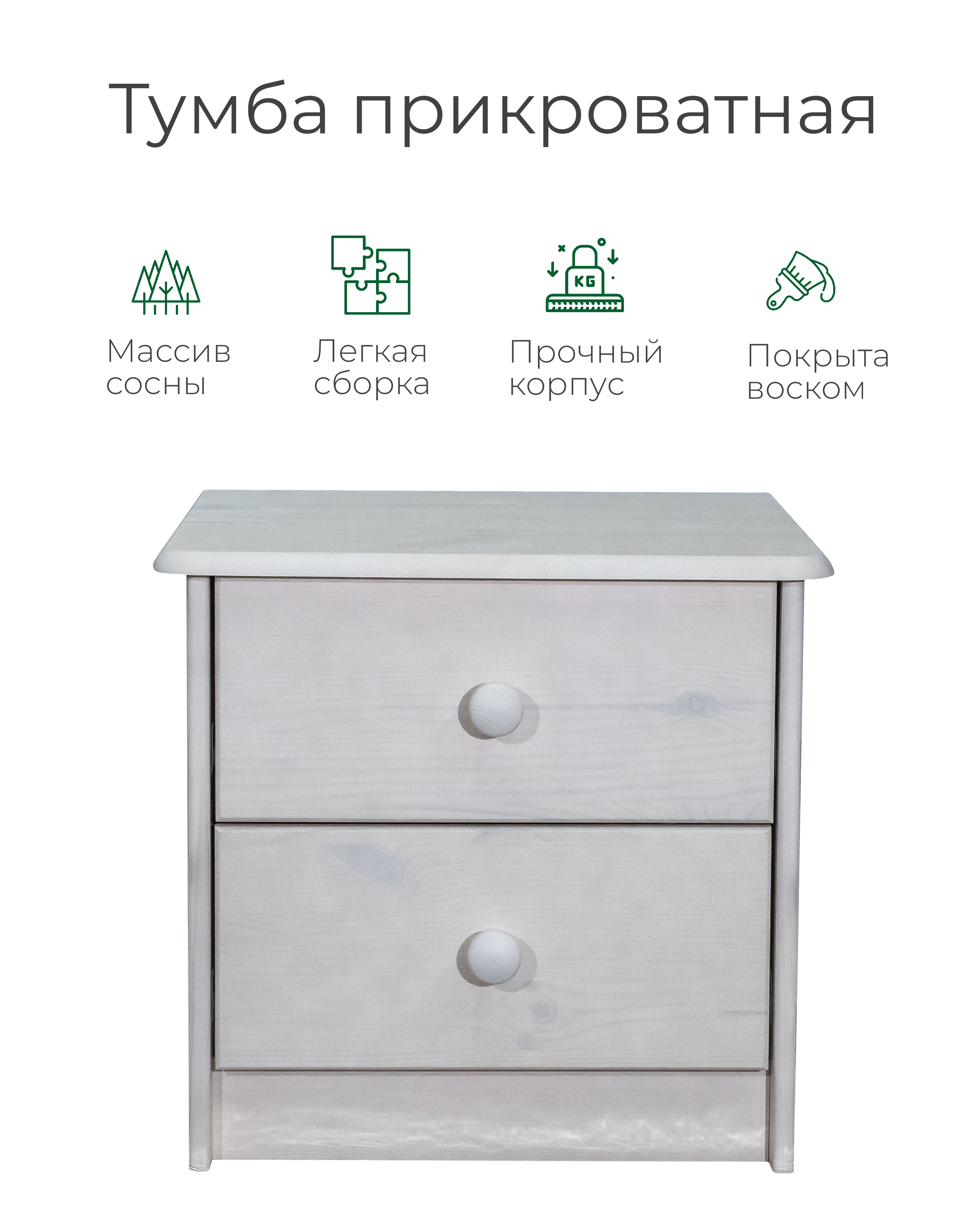 Тумба легко собирается. Обращаем ваше внимание: изделие покрыто белым воском, т.е. естественная структура дерева будет сохранена. Учитывайте это при выборе данной модели.