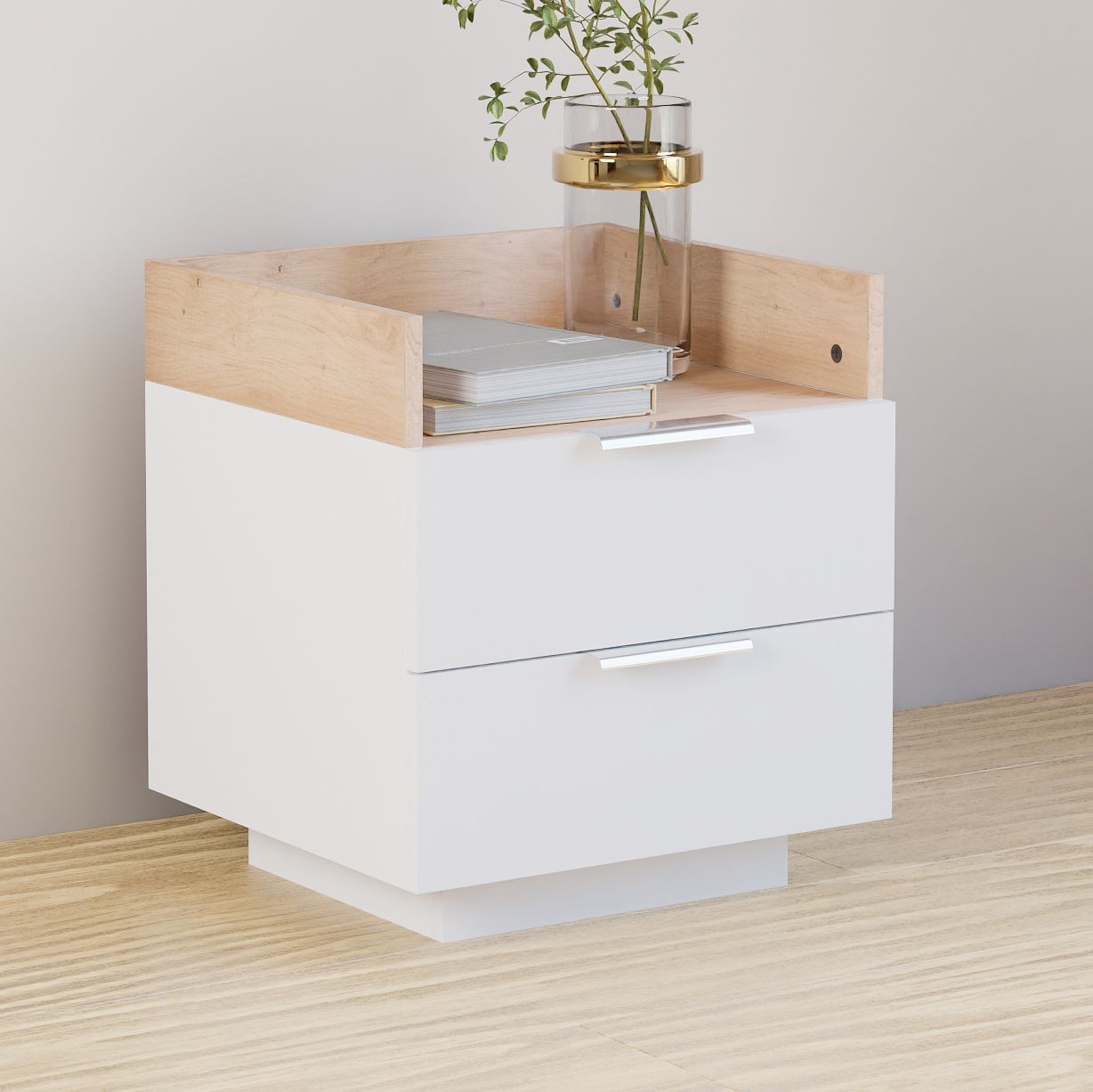Главной особенностью прикроватной тумбы является парящая конструкция, создавая ощущения левитации над землей. Кроме того, комод оснащен удобным столиком с бортиками, на котором можно разместить все, что угодно: от личных вещей и аксессуаров до журналов.