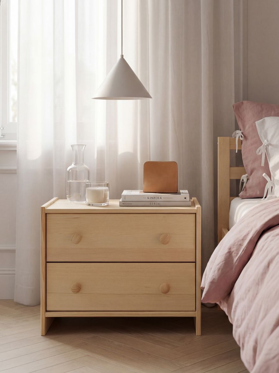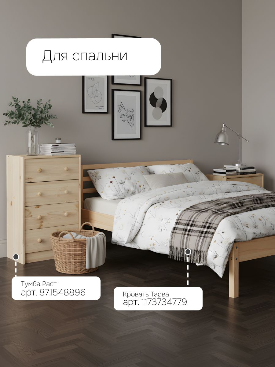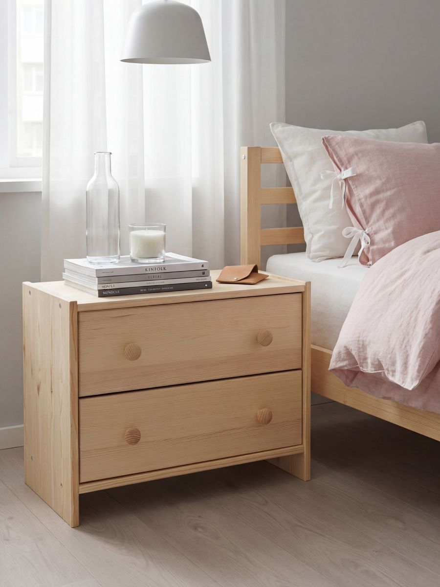 Тумба прикроватная деревянная в стиле Икеа Раст идеально подойдет для творческих людей, которые желают создать уникальный дизайн своего комода. Чтобы необработанная поверхность из массива дерева служила дольше, ее можно обработать лаком, воском, морилкой или маслом.