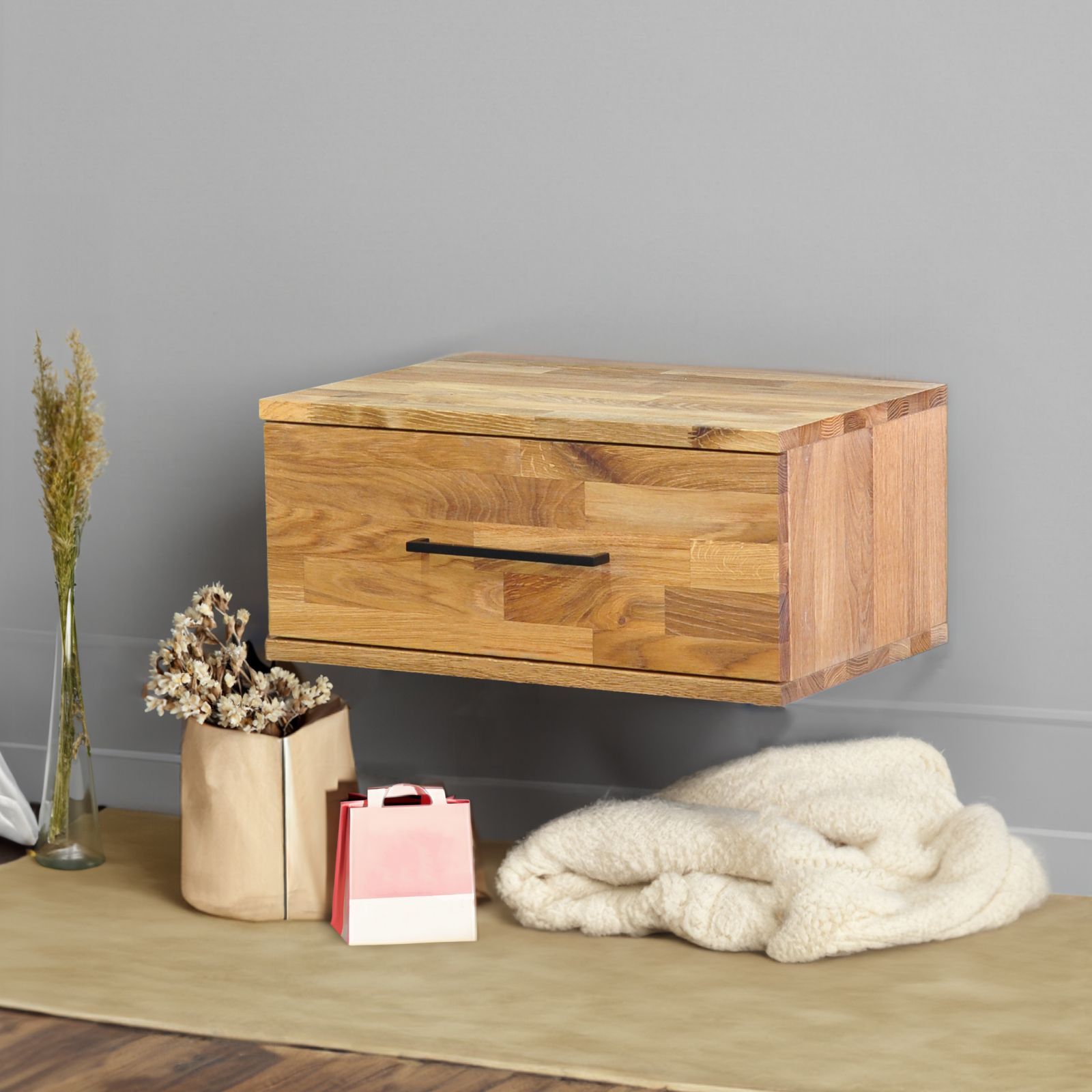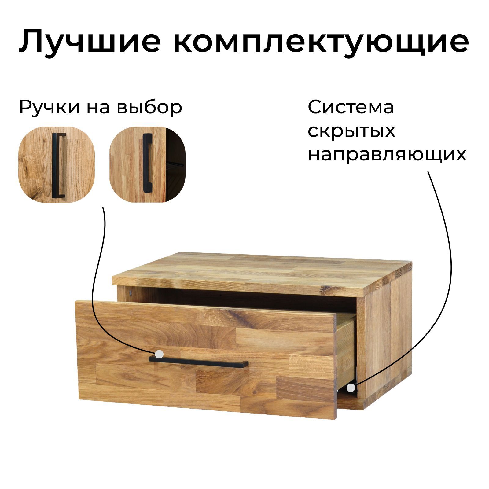 Прикроватная тумба Flevers в стиле лофт из натурального дуба - идеальное решение для тех, кто ценит качество и стиль в интерьере. Эта навесная тумба изготовлена из массива дуба и покрыта специальным маслом для дуба, что сохраняет тактильно естественную текстуру и натуральный внешний вид. Тумба имеет 1 ручку для ящика в комплекте и закрепляется на стене, что делает её прочной и надежной. Состоит из 1 ящика, который выдвигается плавно и бесшумно благодаря системе скрытых направляющих. Экологически чистые материалы, использованные при отделке, делают эту тумбу безопасной для здоровья и окружающей среды.