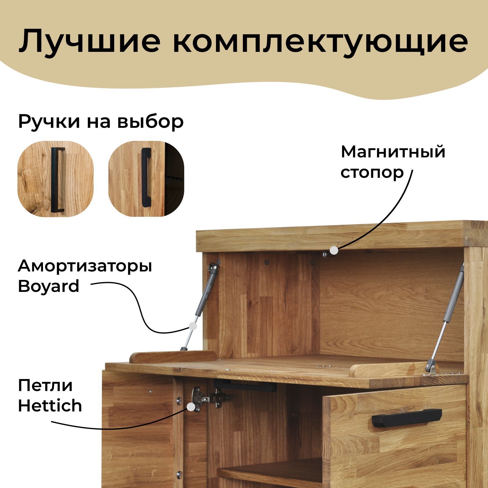 📐 Размеры тумбы в собранном виде составляют 113х42х100 см. Каждая деталь тщательно продумана: тумба оснащена 4 металлическими ножками высотой 19 см, которые добавляют легкости в ее облике. Вместительные и функциональные, она создаст прекрасный акцент в вашем интерьере. Тумба также оснащена креплениями для надежной фиксации к стене, обеспечивая безопасность и стабильность. Вы можете выбрать один из двух вариантов ручек: элегантные металлические ручки скобы или натуральные ручки из массива, чтобы подчеркнуть ваш индивидуальный вкус и создать завершенный образ..