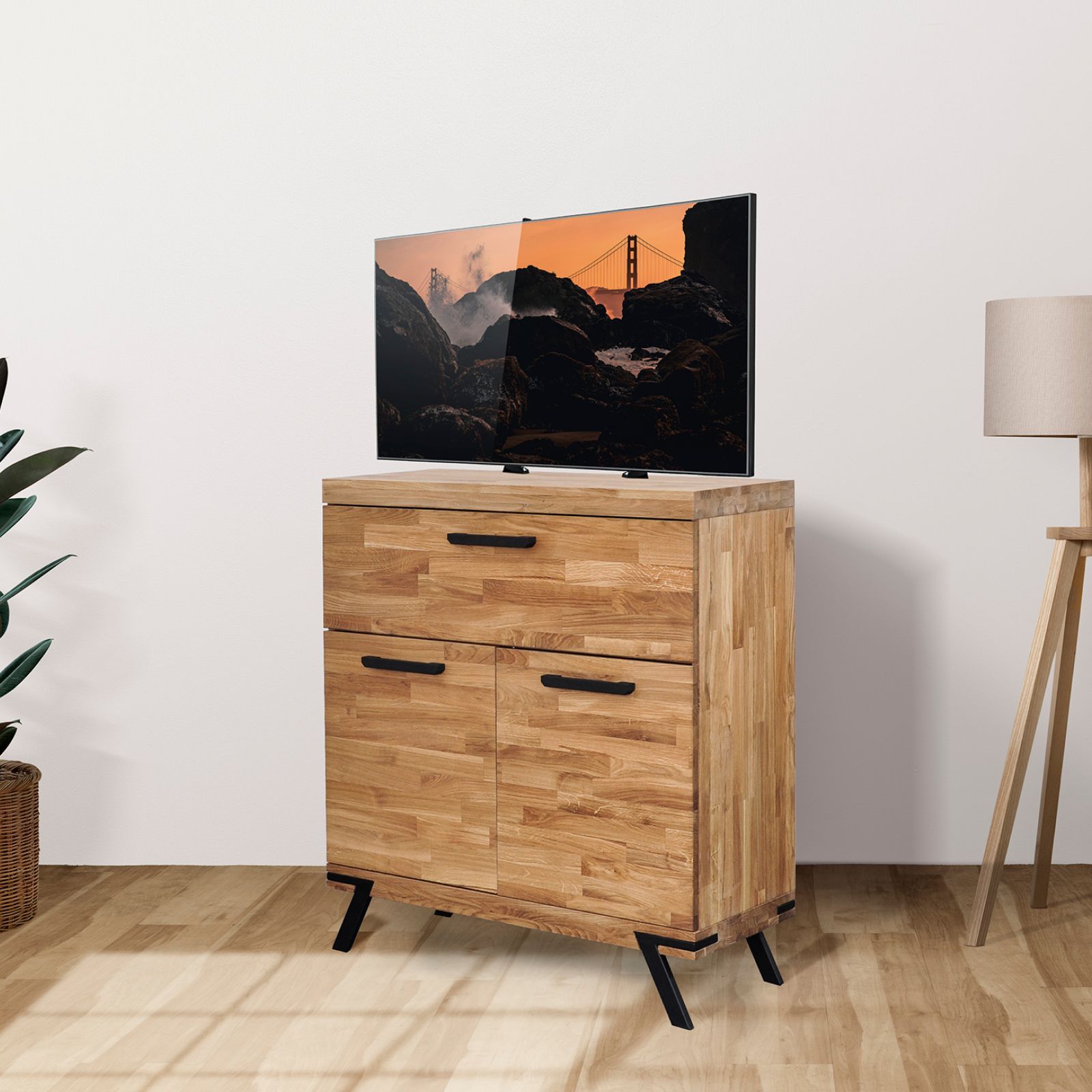 Состоящая из трех дверей, тумба под телевизор Flevers обеспечивает удобство и функциональность. Верхняя дверь откидывается вниз с помощью газовых амортизаторов , обеспечивая плавное открытие и надежную фиксацию с помощью магнитного стопора. Две боковые двери открываются в стороны с использованием накладных петель HETTICH с доводчиками, гарантируя тихое и плавное закрытие. Двери обеспечивают функциональные ниши и полку для удобного хранения вещей и аксессуаров. Высокое качество изготовления и надежная фурнитура гарантируют долгий срок эксплуатации и надежность использования.