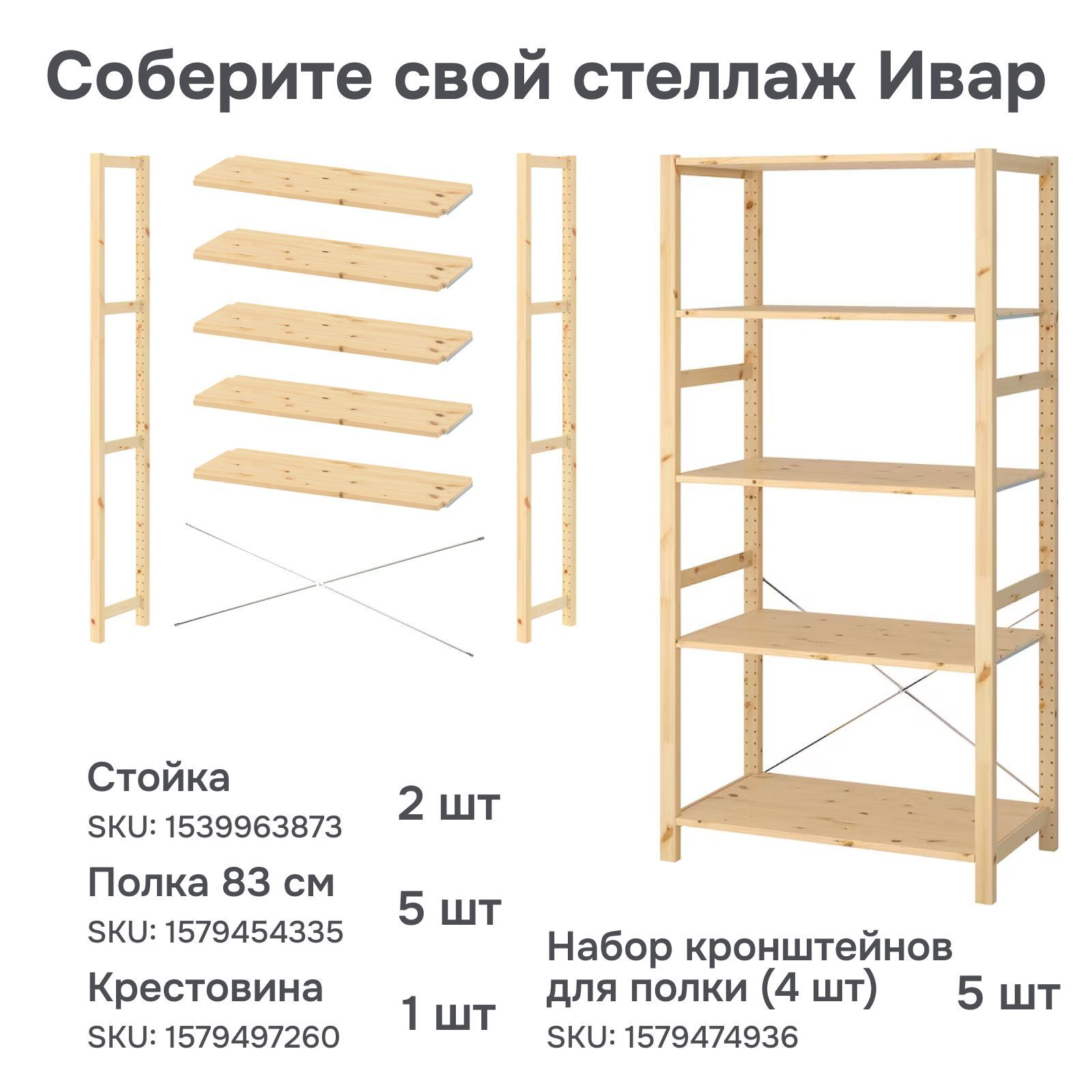 Главной особенностью серии Ивар является возможность создания уникальных комбинаций из большого множества доступных деталей для создания вариантов мебели, которые подойдут именно Вам. Благодаря возможности отдельного приобретения частей серии Ивар, Вы сможете максимально эффективно организовать пространство для хранения в любом помещении: от просторной кухни и прихожей до небольшой кладовой и дачного уголка. Угловая стойка для стеллажа DIPRIZ Ивар 179 см изготовлена из экологически чистого материала - массива сосны и выполнена без отделки. Это долговечный натуральный материал, который можно красить, смазывать маслом или окрашивать в зависимости от предпочтений. Массив сосны - это натуральный материал, который прекрасно стареет и со временем приобретает свой уникальный оттенок. В наличии нашего ассортимента также имеются боковые стойки 179 см (SKU: 1539963873) и полки размерами 42х30 (SKU: 1540078771) и 83х30 см (SKU: 1579454335), которые созданы специально для создания множества комбинаций. Они отлично подойдут для самостоятельной сборки готового стеллажа с индивидуальными размерами под Ваши потребности. Крепление полок к стойке для стеллажа осуществляется с помощью кронштейнов и шурупов. Для крепления 1 полки с 2 боковыми стойками для стеллажа Вам понадобится комплект из 4 кронштейнов и шурупы для фиксации. Комплекты из 4 шт. (SKU: 1579474936) и 5 шт. (SKU: 1579476119) доступны для приобретения в нашем каталоге. Дополнительно Вы можете приобрести угловую стойку (SKU: 1540024358) и угловые полки (SKU: 1579466334) для сборки углового стеллажа. Для создания углового стеллажа Вам потребуется 2 боковые стойки, 1 угловая стойка и комплект из 5 кронштейнов из расчета на 1 полку. Простота сборки - одно из главных преимуществ приобретения нашей мебели. Наличие подробной проиллюстрированной инструкции и полного комплекта фурнитуры позволит собрать готовую мебель так же легко, как конструктор, сэкономив массу времени и сил. Стойка поставляется в полностью собранном виде со сверлениями для крепления полок. Для большей прочности добавьте поперечную скобу-крестовину Ивар (SKU: 1579497260) на каждую вторую секцию при сборке стеллажа (приобретается отдельно). Сочетание различных комбинаций позволит собрать собственную мебель, будь то угловой стеллаж для книг или напольный стеллаж в гараж. Габариты угловой стойки (Ширина х Глубина х Высота, см) - 4.5х4.5х179 см. Рекомендуется протирать материалы сухой тканью. Пятна с дерева можно удалить с помощью ластика или мелкой наждачной бумаги. Для большей устойчивости эта мебель должна быть прикреплена к стене с помощью комплекта фурнитуры, который идет в комплекте.