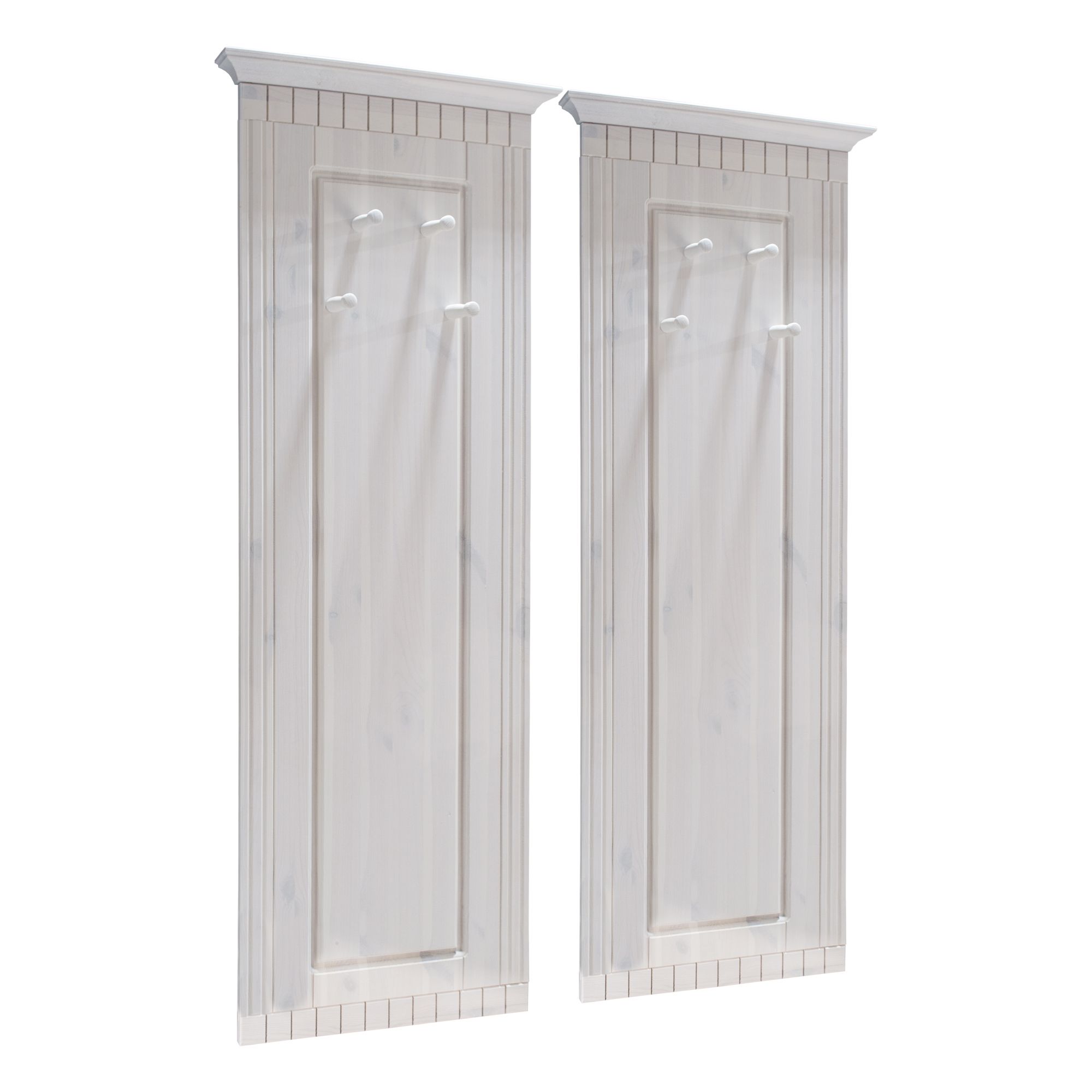 Панель-вешалка для одежды Неаполь изготовлена из натурального массива сосны. Предмет мебели выполнен в лучших традициях современной классики. Настеные вешалки в прихожую Неаполь 47х125 см — это идеальное решение для тех, кто ценит порядок и комфорт в своем доме. Комплект из 2 вешалок обладает идеальным сочетанием функциональности, нежными тонами и элегантностью классического стиля интерьера.