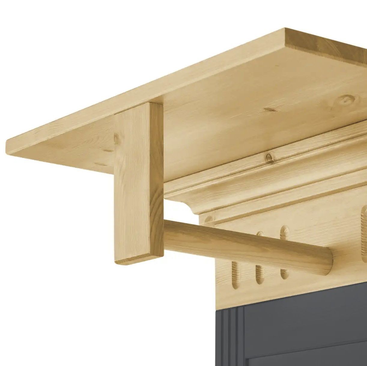 🌿 Организуйте свой гардероб с элегантной вешалкой Хельсинки! 🌿 Настенная вешалка Хельсинки из массива сосны - идеальное решение для хранения вашей одежды с комфортом и стилем. Она станет прекрасным дополнением для вашей прихожей, обладая прочностью и эстетической привлекательностью. Высокая вешалка для одежды создана из высококачественного массива сосны и покрыта частично серым воском и цветом бежевый/антик. Ее габаритные размеры в собранном виде составляют высоту 183 см, глубину 26 см и ширину 53 см. Толщина дерева равна 18 мм. У вешалки для одежды присутствует одна полка шириной 26 см с максимальной нагрузкой до 5 кг. Здесь вы также найдете одну штангу (скалки) для подвешивания одежды, а также два прочных крючка с максимальной нагрузкой каждого до 3 кг. Это обеспечивает достаточно пространства для организации вашего гардероба. Вставочки из дерева в цвете антик, декоративная филенка и фрезеровка добавляют вешалке изысканный и стильный вид. Они придают ей уникальность и привлекательность, подчеркивая ваш безупречный вкус в интерьере. Настенная вешалка в прихожую Хельсинки идеально подойдет для различных помещений, будь то дом, квартира, дача или загородный дом. Они сочетаются с различными стилями интерьера, включая классический, прованс, викторианский, кантри и бохо. Не упустите возможность обновить свою прихожую с помощью вешалки Хельсинки! Создайте функциональное и привлекательное пространство уже сейчас. 🌟👗