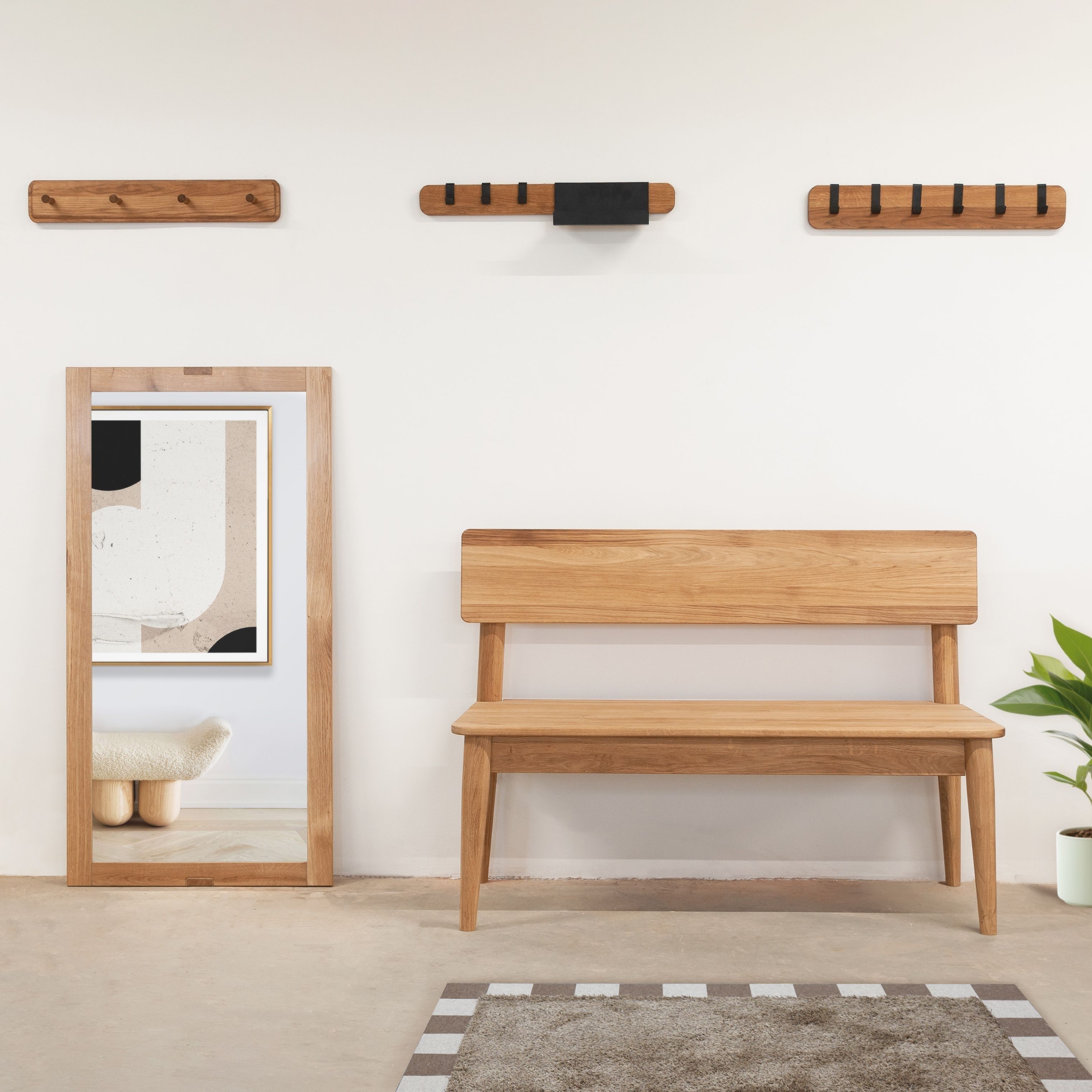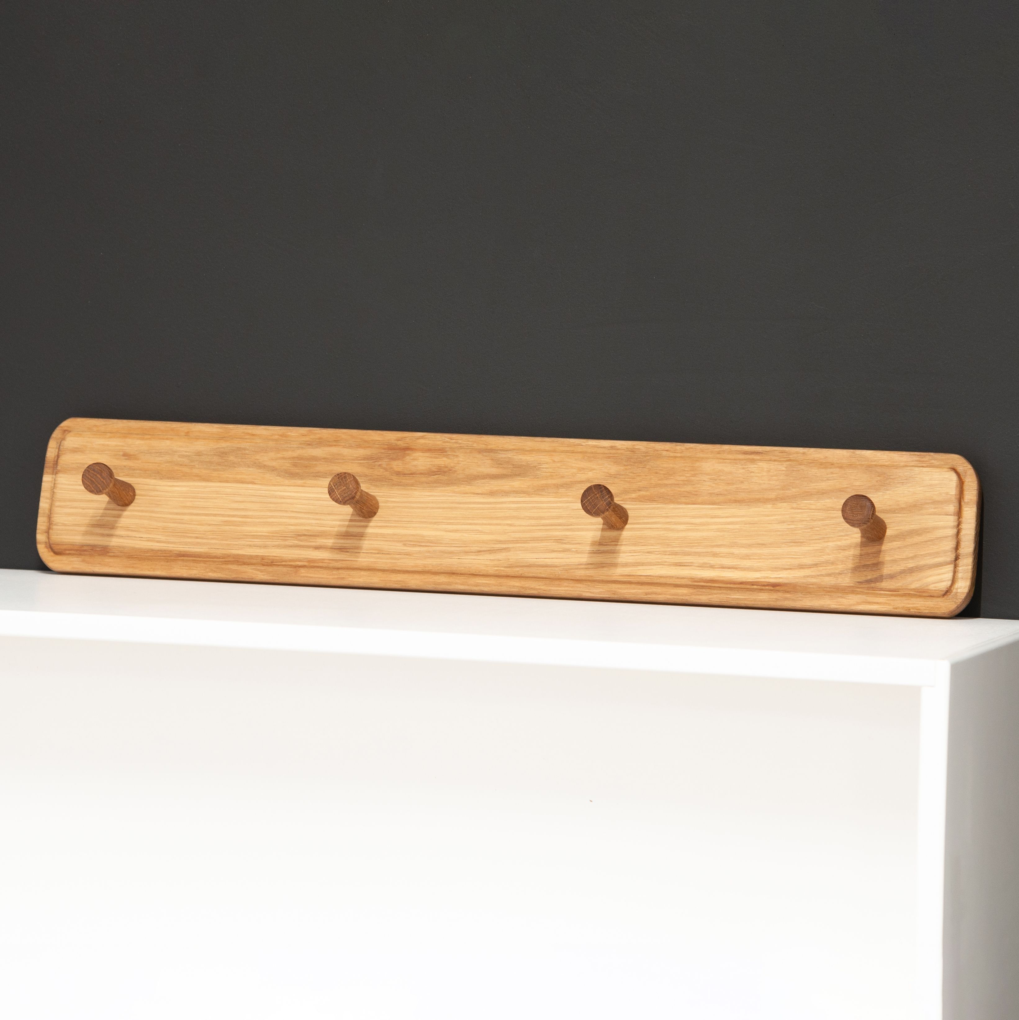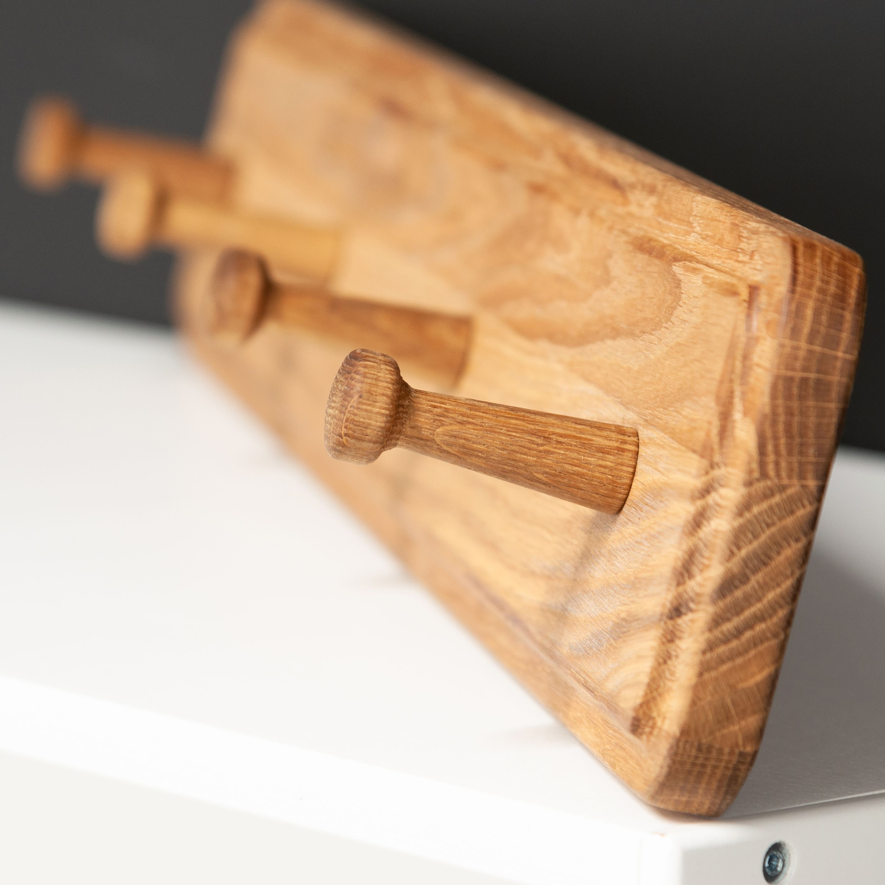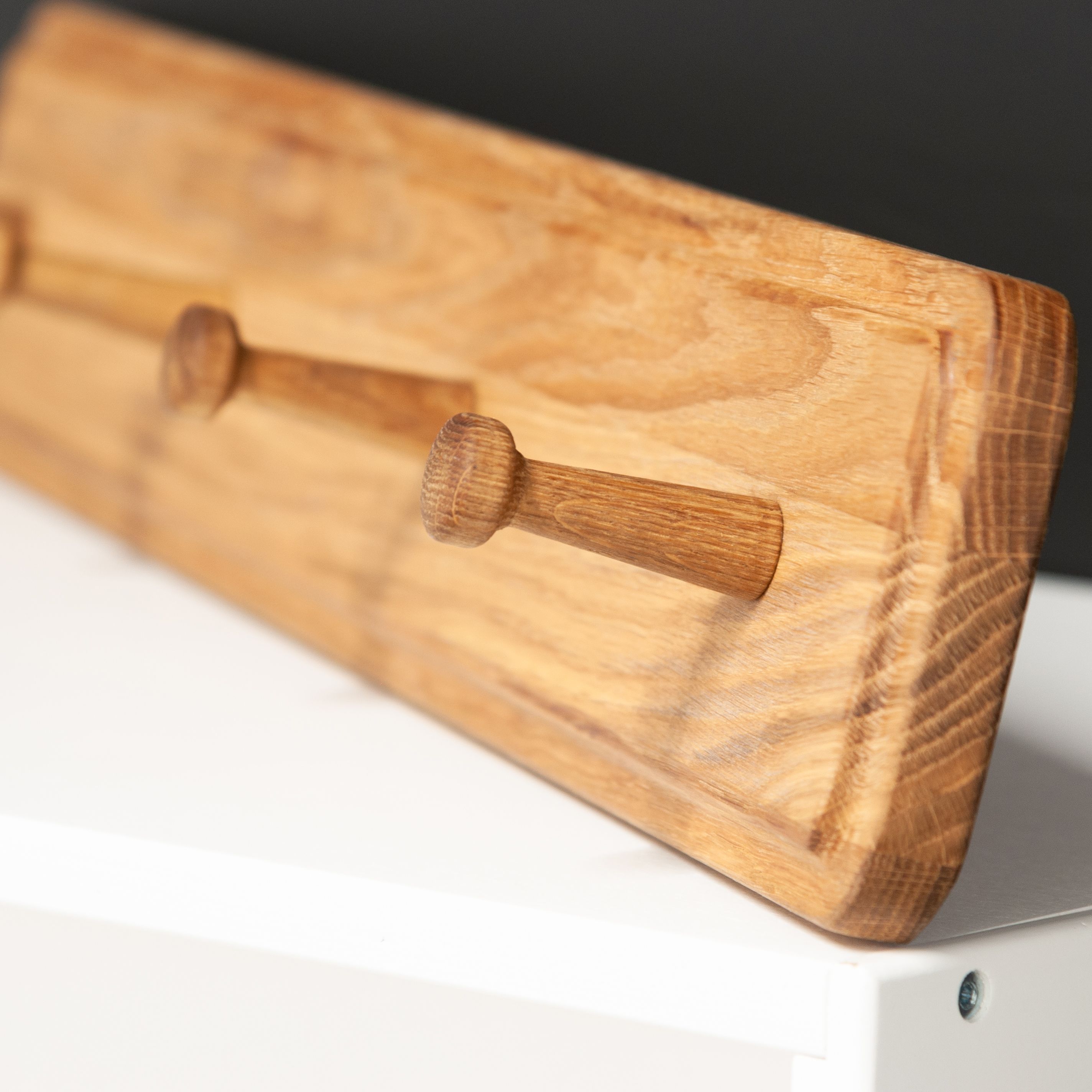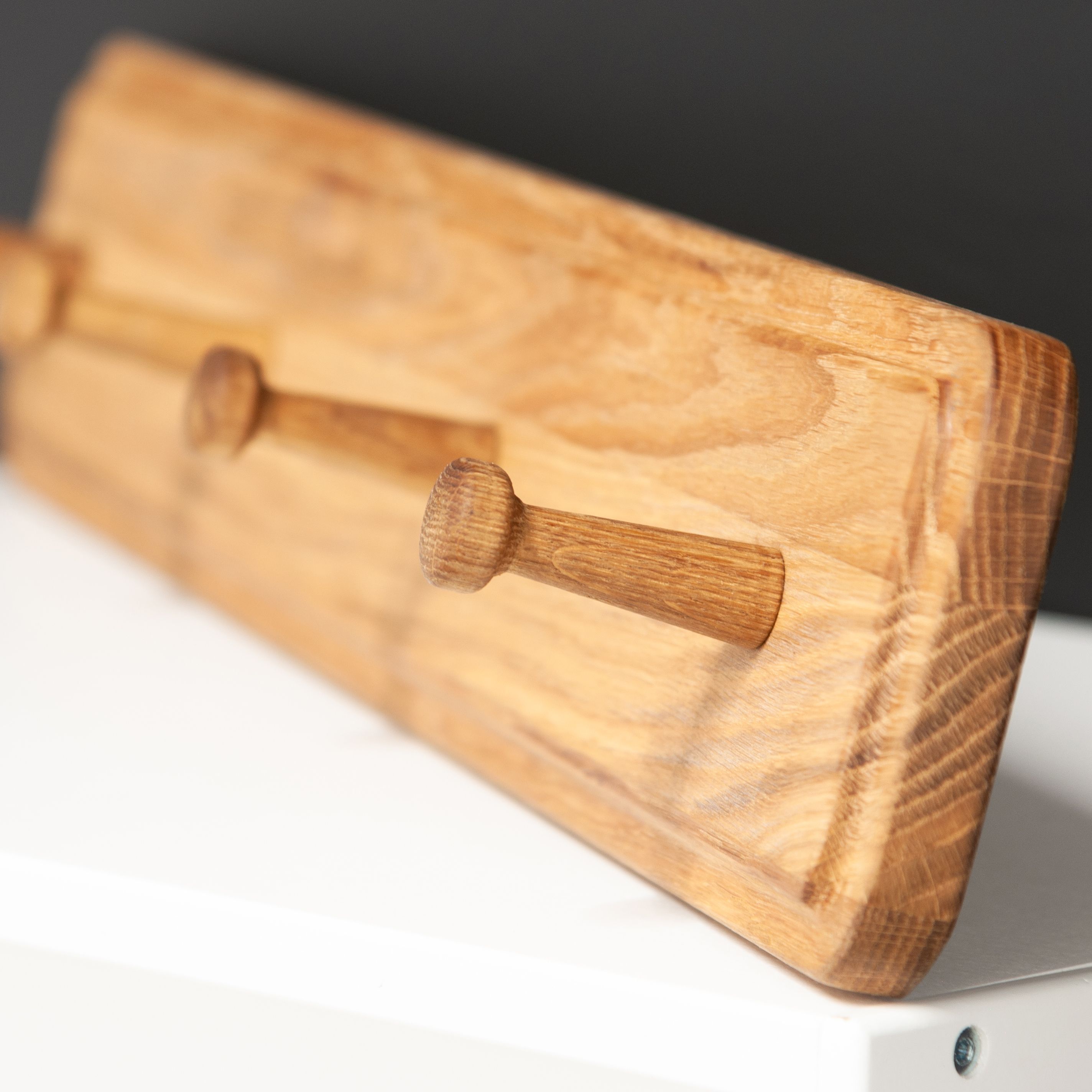 Элегантная и функциональная настенная вешалка для одежды из массива дуба: идеальное решение для интерьера вашей прихожей! Настенная вешалка с 4 крючками, изготовленная из натурального массива дуба придаст вашему пространству неповторимый шарм. Поверхность и края изделия гладко отшлифованы и покрыты натуральным маслом, которое обеспечивает надежную защиту от внешних воздействий. Все фаски деревянного корпуса были сглажены с целью предотвращения случайных ударов или зацепов. Имеет благородный золотисто-бежевый цвет натурального дуба за счет покрытия маслом, поэтому приятный запах и полезные свойства дерева сохранены. Крючки также выполнены из массива дуба. Размеры вешалки для одежды в собранном виде: Ширина х Глубина х Высота - 60х7.3х10 см. Толщина массива дуба составляет 20 мм, глубина крючка - 5.3 см, Максимальная допустимая нагрузка на вешалку составляет до 15 кг, что обеспечивает безопасное использование. Компактные размеры вешалки позволят вам без труда организовать пространство и хранить вещи в аккуратном порядке, а максимальная нагрузка на крючок составляет до 3 кг. Эта настенная вешалка из массива дуба отлично подойдет как для дома и квартиры, так для дачи и для загородного дома. Ее можно использовать как вешалку для одежды, вешалку в прихожую, а также вешалку для полотенец в ванную для создания уникального интерьера на долгие годы. Также вы можете дополнительно приобрести скамью из этой же серии (SKU: 987714413), дополнив свой домашний уголок прихожей. Вешалку для одежды можно купить при обустраивании комнаты в новой квартире или доме. Идеально дополнит стили интерьера: лофт, современный, минимализм, индастриал, эко-стиль. Вешалка для одежды поставляется в полусобранном виде (деревянный корпус поставляется в собранном виде) с понятной инструкцией и комплектом фурнитуры для быстрой и простой сборки. Деревянную вешалку из массива дуба легко закрепить на стене благодаря набору для крепежа в комплекте. Сделайте стильный и функциональный подарок для себя или близких - эта настенная вешалка из массива дуба станет изысканным акцентом в вашем интерьере. Не упустите возможность приобрести эту уникальную тумбу под телевизор с ящиками из массива дуба, которая станет не только функциональной элементом, но и стильным дополнением вашего домашнего пространства!
