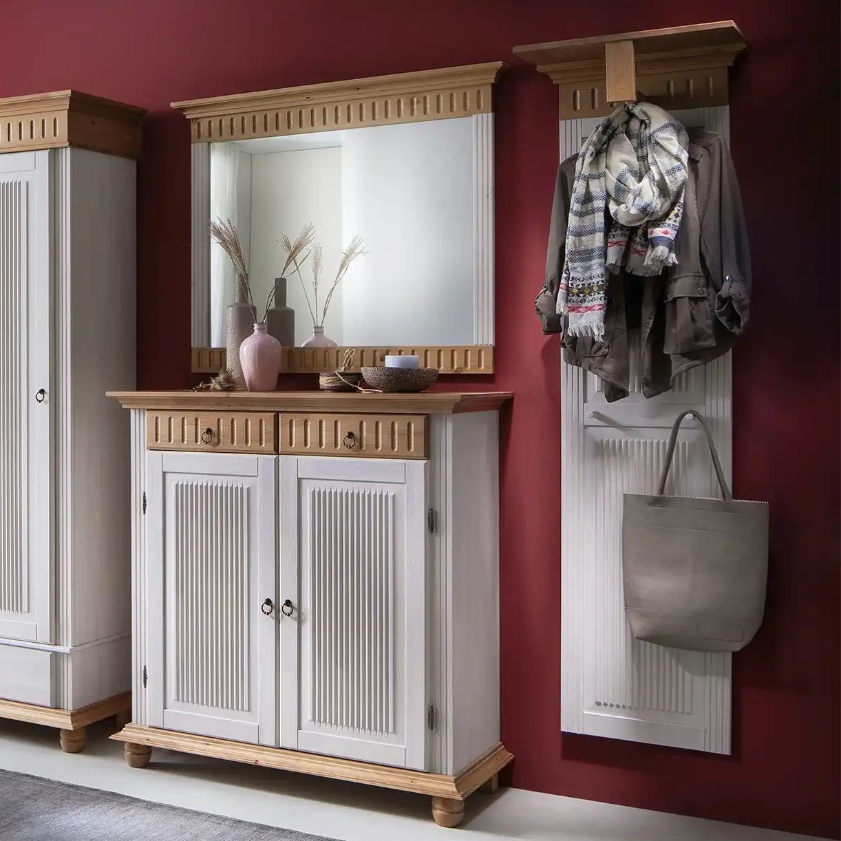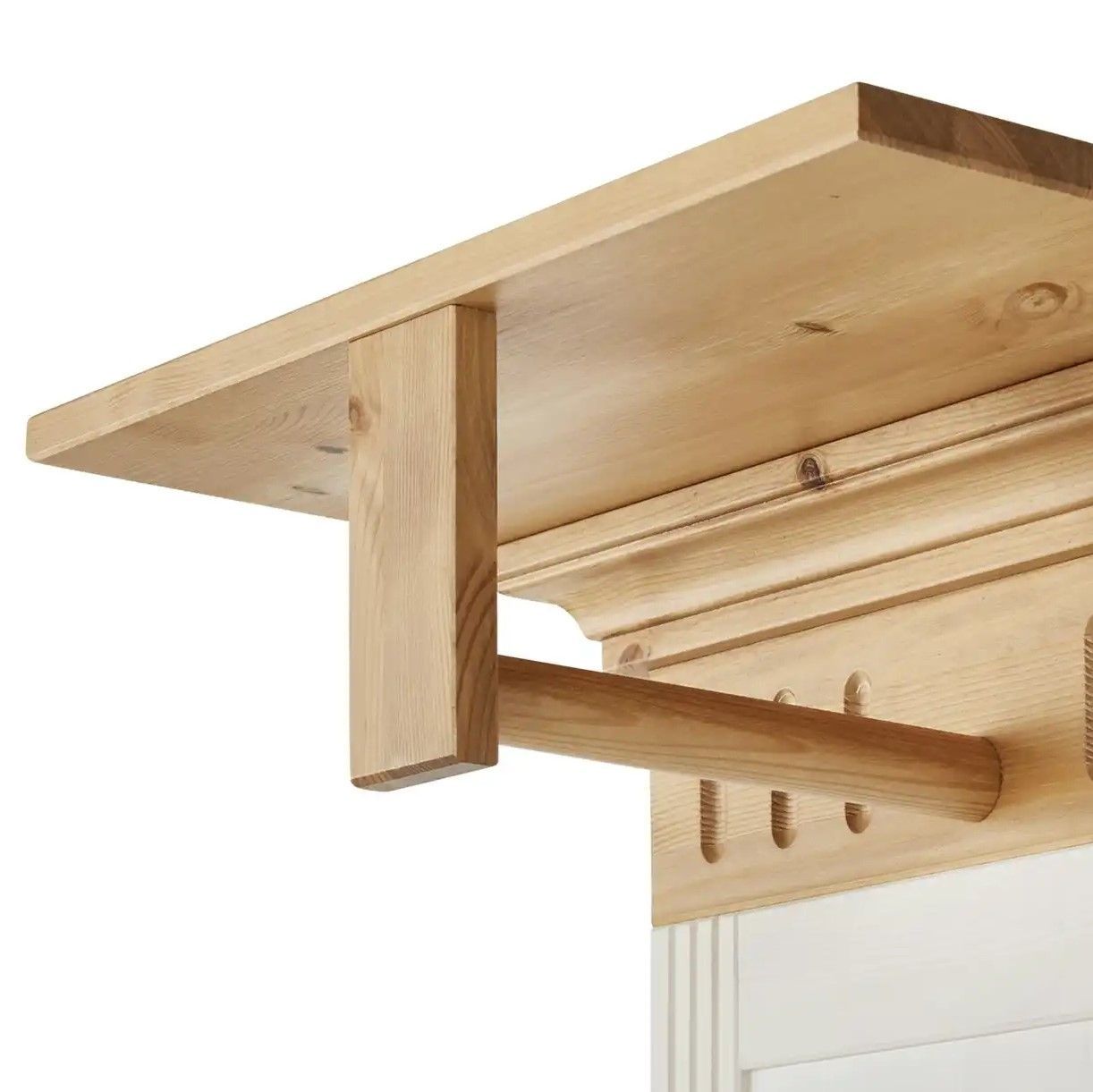 🌿 Организуйте свой гардероб с элегантной вешалкой Хельсинки! 🌿 Настенная вешалка Хельсинки из массива сосны - идеальное решение для хранения вашей одежды с комфортом и стилем. Она станет прекрасным дополнением для вашей прихожей, обладая прочностью и эстетической привлекательностью. Высокая вешалка для одежды создана из высококачественного массива сосны и покрыта частично белым воском и цветом бежевый/антик. Ее габаритные размеры в собранном виде составляют высоту 183 см, глубину 26 см и ширину 53 см. Толщина дерева равна 18 мм. У вешалки для одежды присутствует одна полка шириной 26 см с максимальной нагрузкой до 5 кг. Здесь вы также найдете одну штангу (скалки) для подвешивания одежды, а также два прочных крючка с максимальной нагрузкой каждого до 3 кг. Это обеспечивает достаточно пространства для организации вашего гардероба. Вставочки из дерева в цвете антик, декоративная филенка и фрезеровка добавляют вешалке изысканный и стильный вид. Они придают ей уникальность и привлекательность, подчеркивая ваш безупречный вкус в интерьере. Настенная вешалка в прихожую Хельсинки идеально подойдет для различных помещений, будь то дом, квартира, дача или загородный дом. Они сочетаются с различными стилями интерьера, включая классический, прованс, викторианский, кантри и бохо. Не упустите возможность обновить свою прихожую с помощью вешалки Хельсинки! Создайте функциональное и привлекательное пространство уже сейчас. 🌟👗