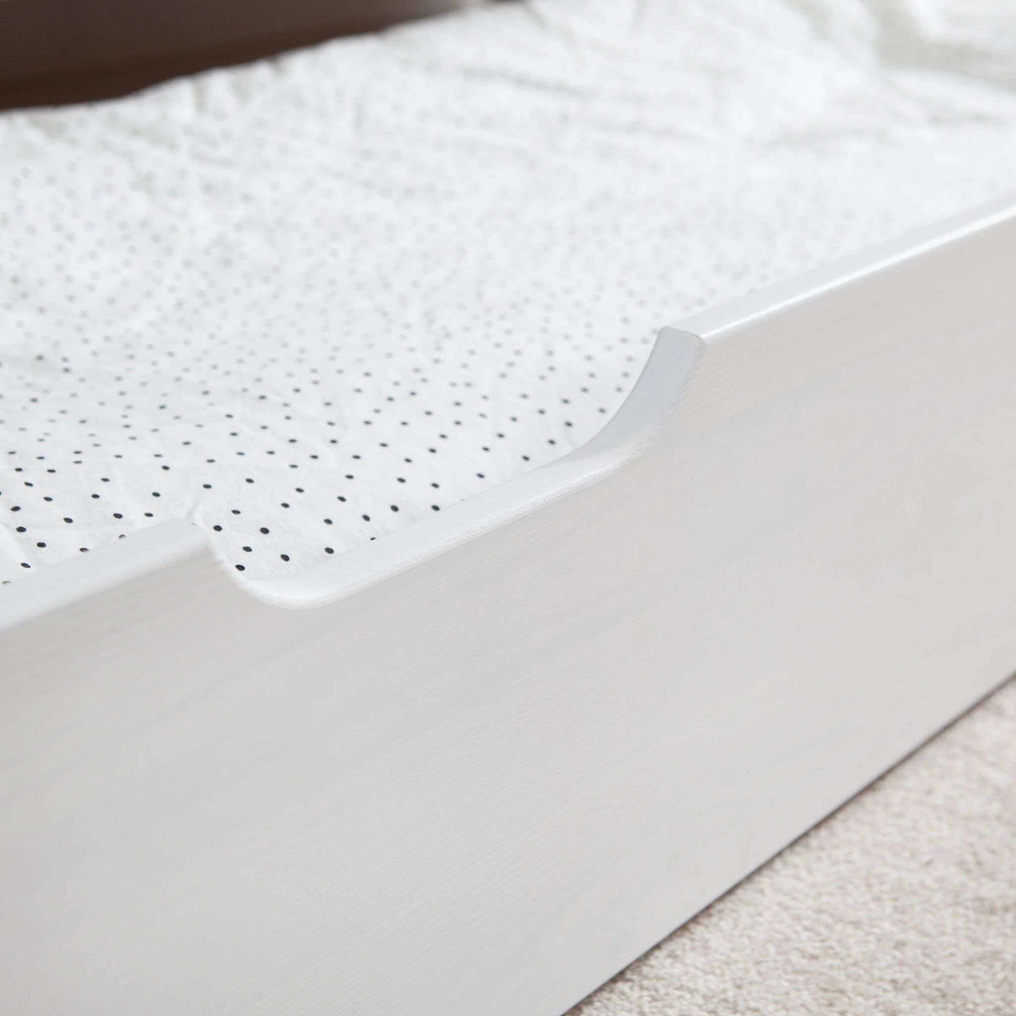 Ящик под кровать, изготовленный из натурального дерева, создаст дополнительное место для хранения постельного белья и принадлежностей. Удобная система установки ящика на роликах-опорах позволит легко выдвигать и задвигать ящик под кровать.