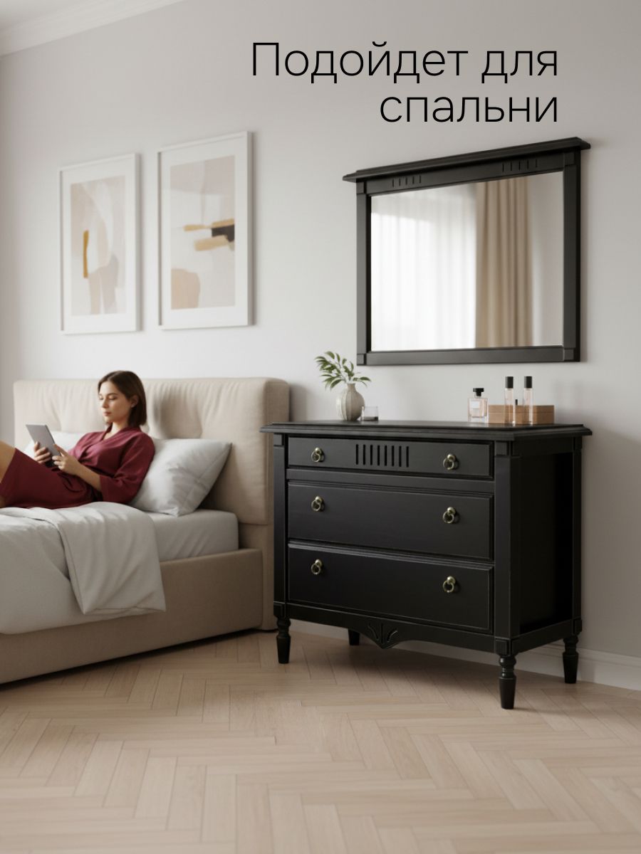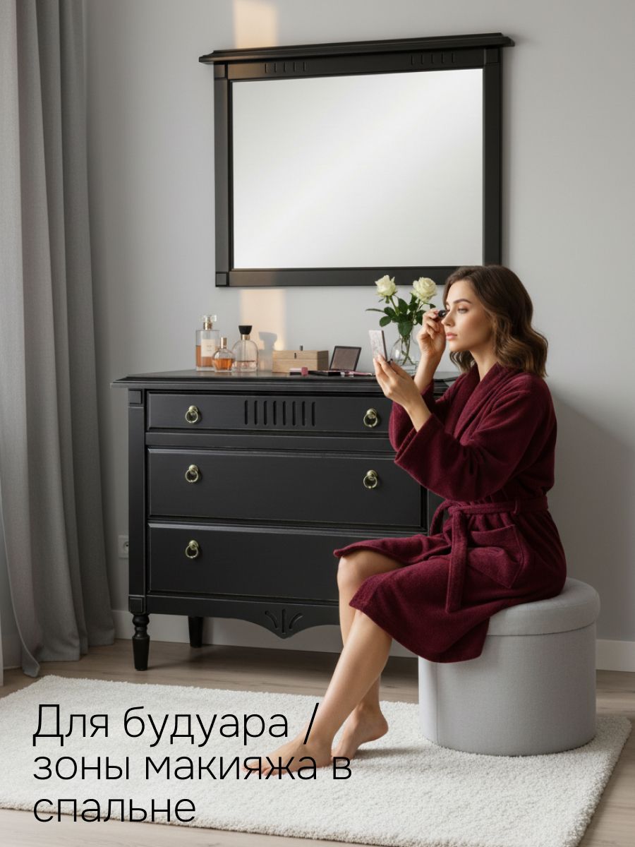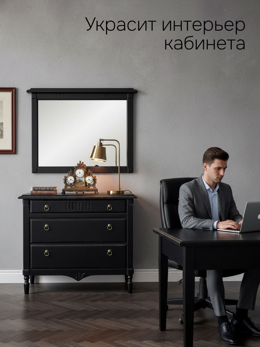 Элегантное настенное зеркало «Джоли» — это чёрное зеркало из массива берёзы для спальни, прихожей или гостиной, которое сочетает стиль и долговечность.