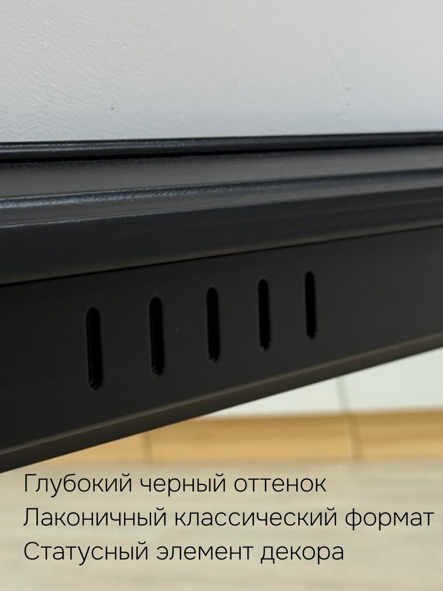 Рама из массива березы в глубоком черном цвете с эффектом искусственной потертости на кромках. Легкие потертости подчеркивают текстуру дерева, создавая благородный винтажный вид — словно антикварное зеркало с историей.