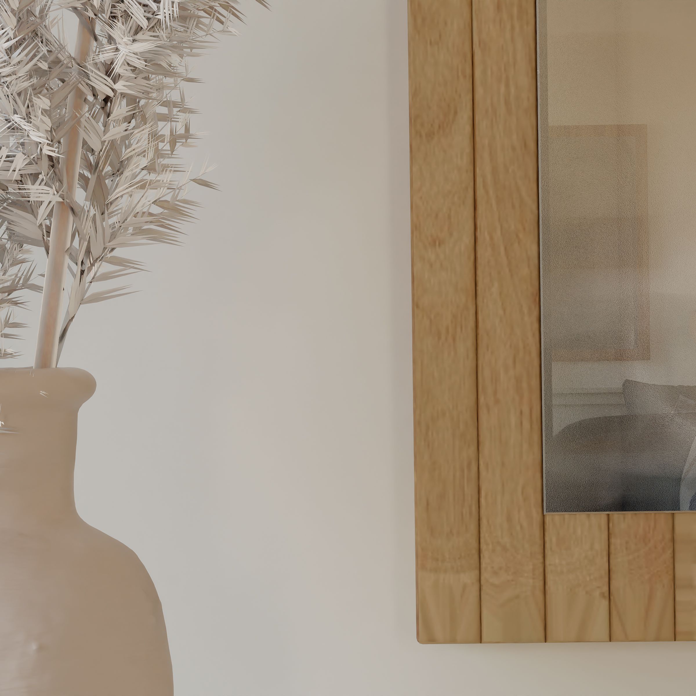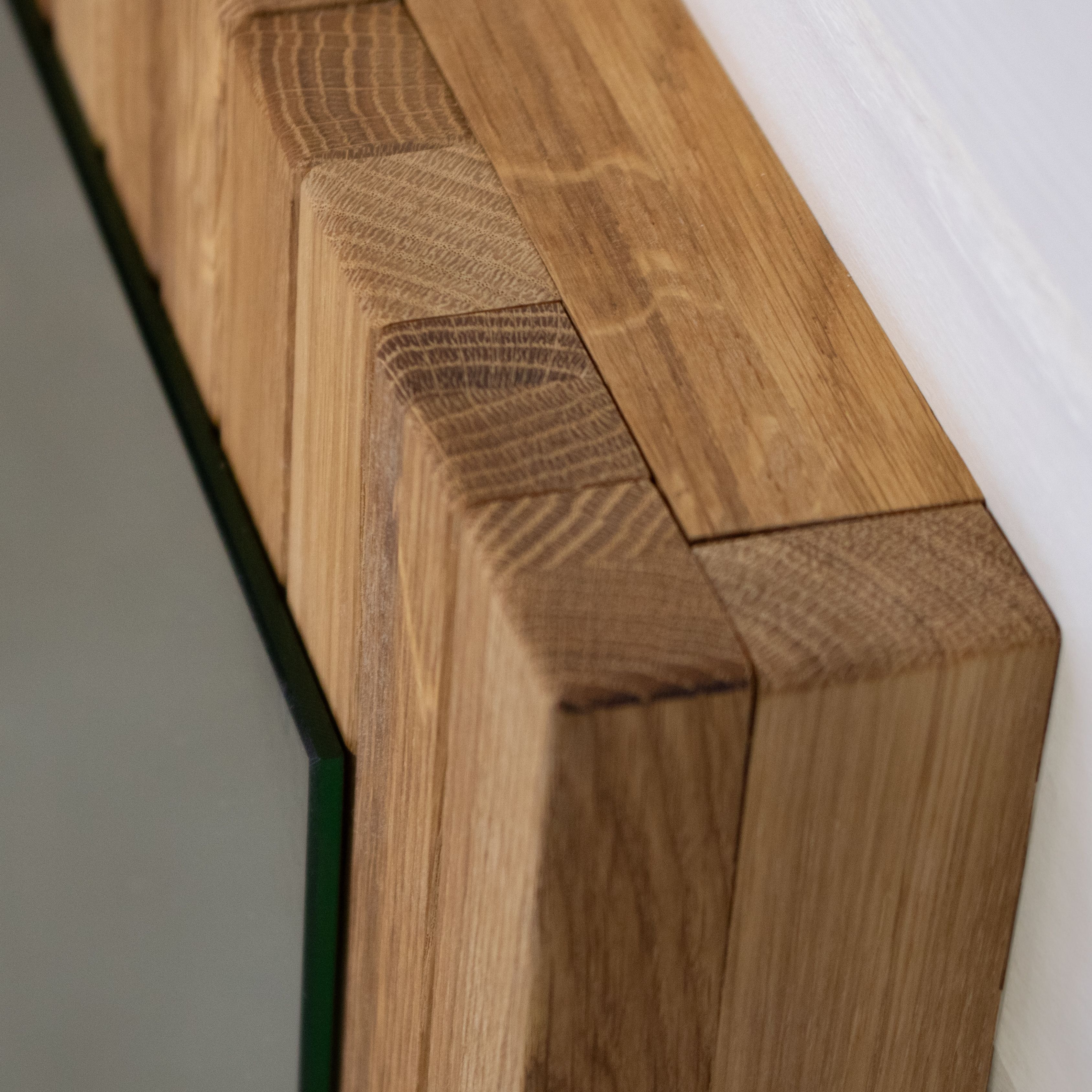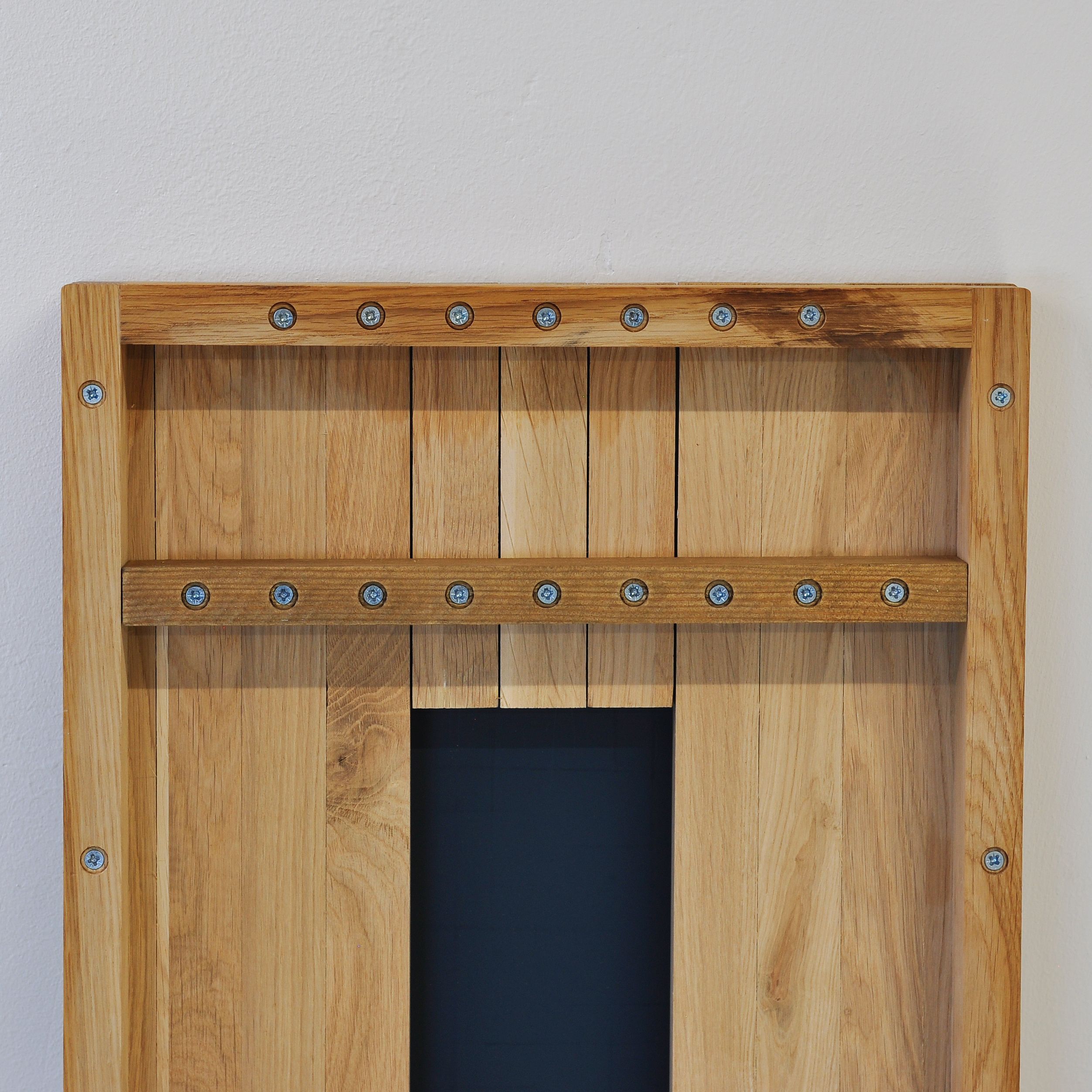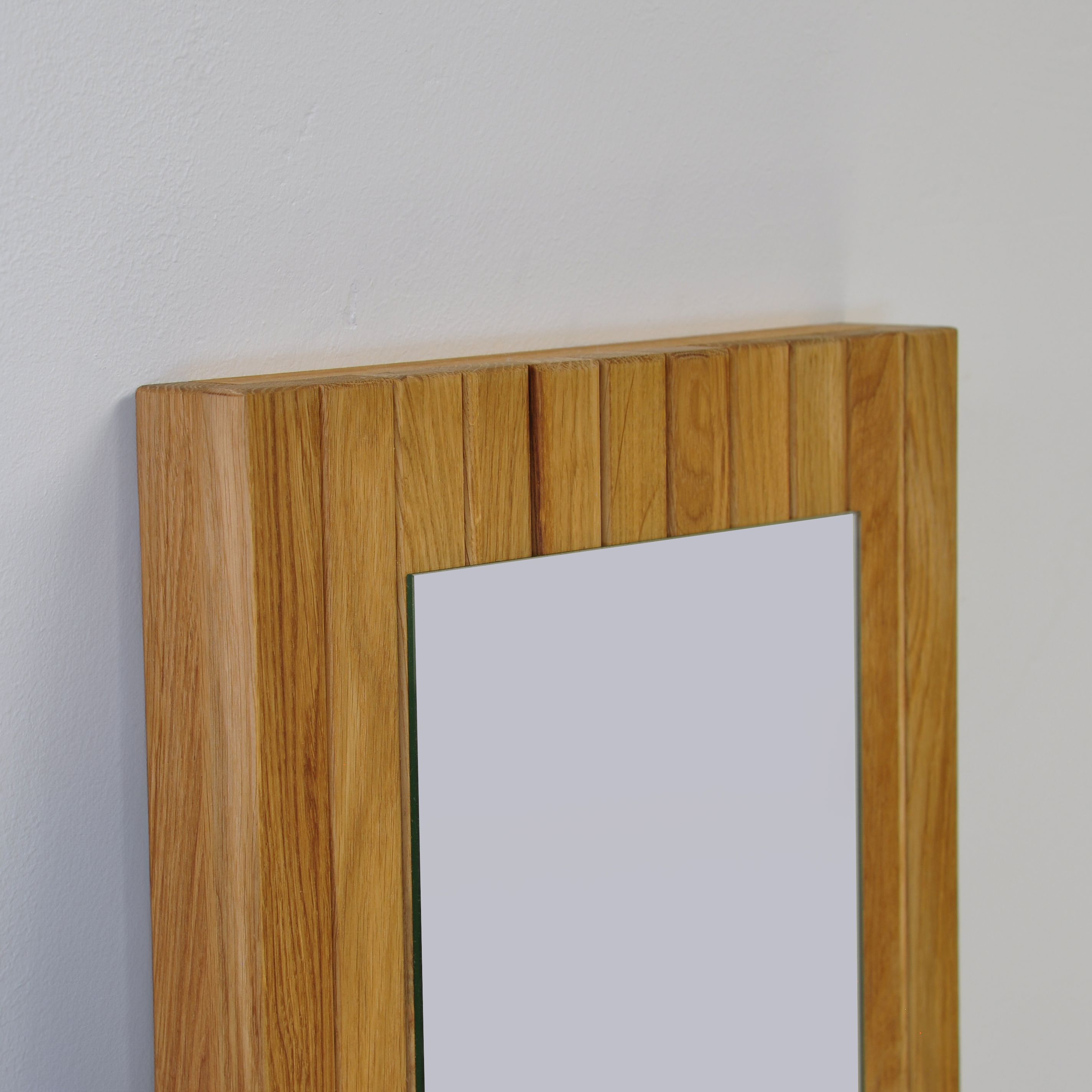 Вертикальные рейки из массива дикого дуба покрытые маслом. Массив дикого дуба обладает аутентичным природным видом, где сучки и уникальные текстуры древесины максимально сохранены. Благодаря этому, каждое зеркало становится уникальным, и вы сможете каждый день наслаждаться частичкой природы у себя дома, создавая атмосферу уюта и гармонии.