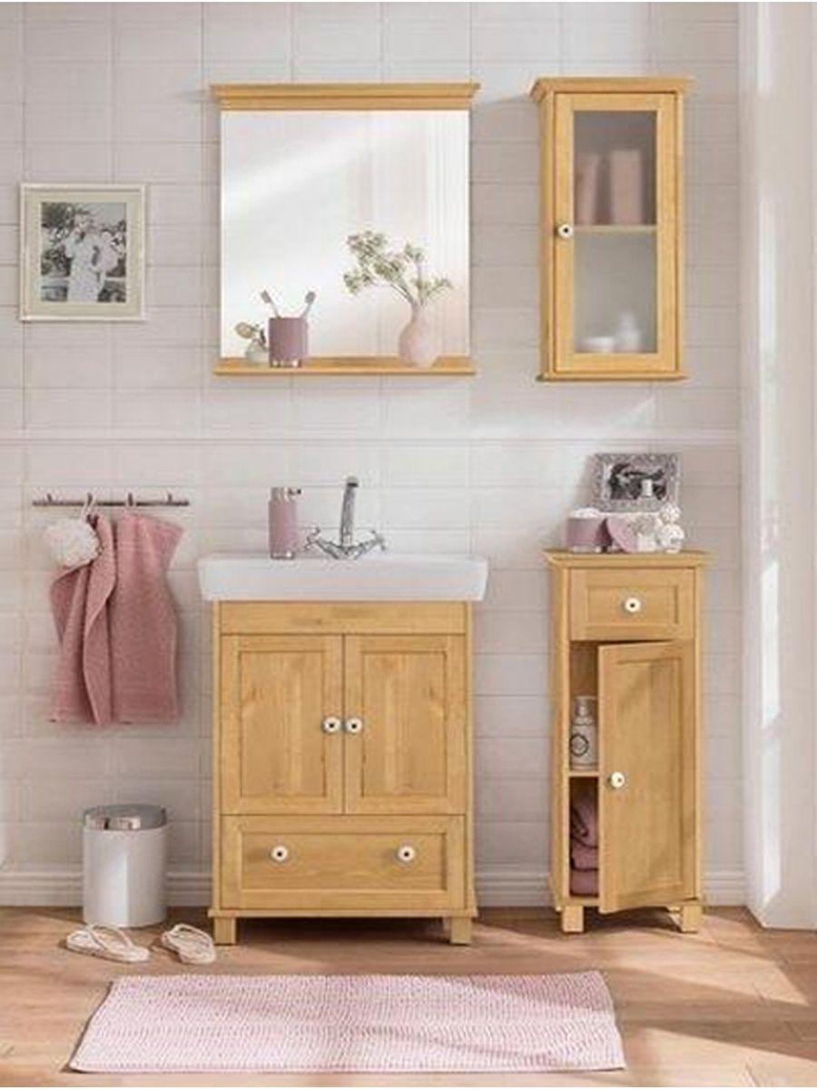 Зеркало изготовлено из натурального дерева. Натуральная текстура дерева создаст уют в вашей ванной комнате.