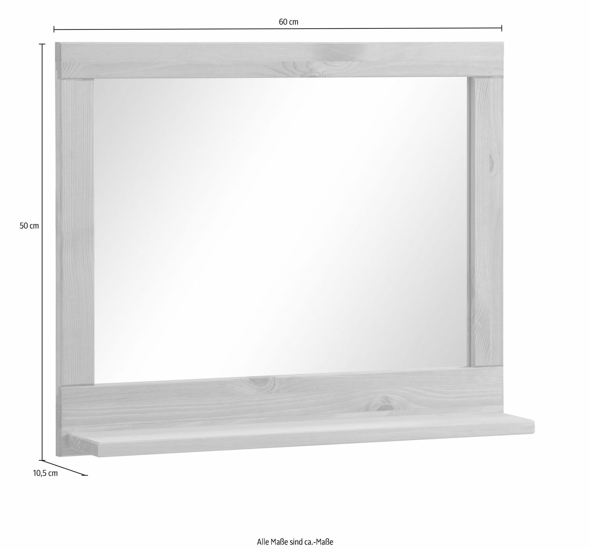 Зеркало Джосси изготовлено из массива сосны, от белорусского производителя мебели "Диприз", с использованием экологически чистых отделочных материалов. Изделие великолепно впишется как в интерьер городской квартиры так и загородного дома или дачи. Благодаря большой зеркальной поверхности 388х530мм настенное зеркало можно использовать не только в качестве декоративного стилистического элемента, еще и для выполнения функциональной роли. Зеркало можно использовать в ванной, прихожей, спальне, гардеробной, офисе, даче. Используемые материалы и комплектующие легки в уходе и не требуют особого внимания. В комплекте идет подробная инструкция по сборке и фурнитура. Модель станет неотъемлемым атрибутом любого интерьера. Вид отделки - белый воск. Изделие основано на последних модных тенденциях. Глубина полки 10,5 см.