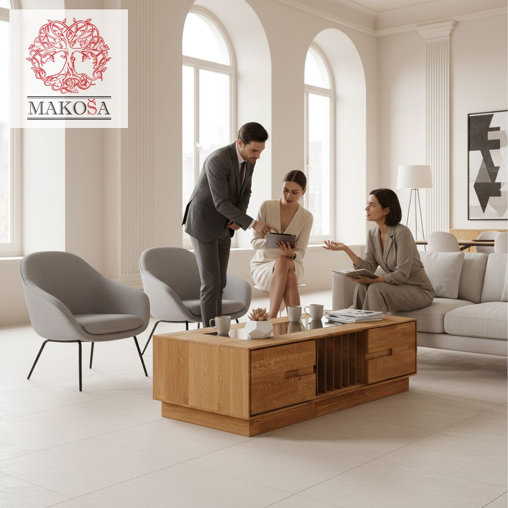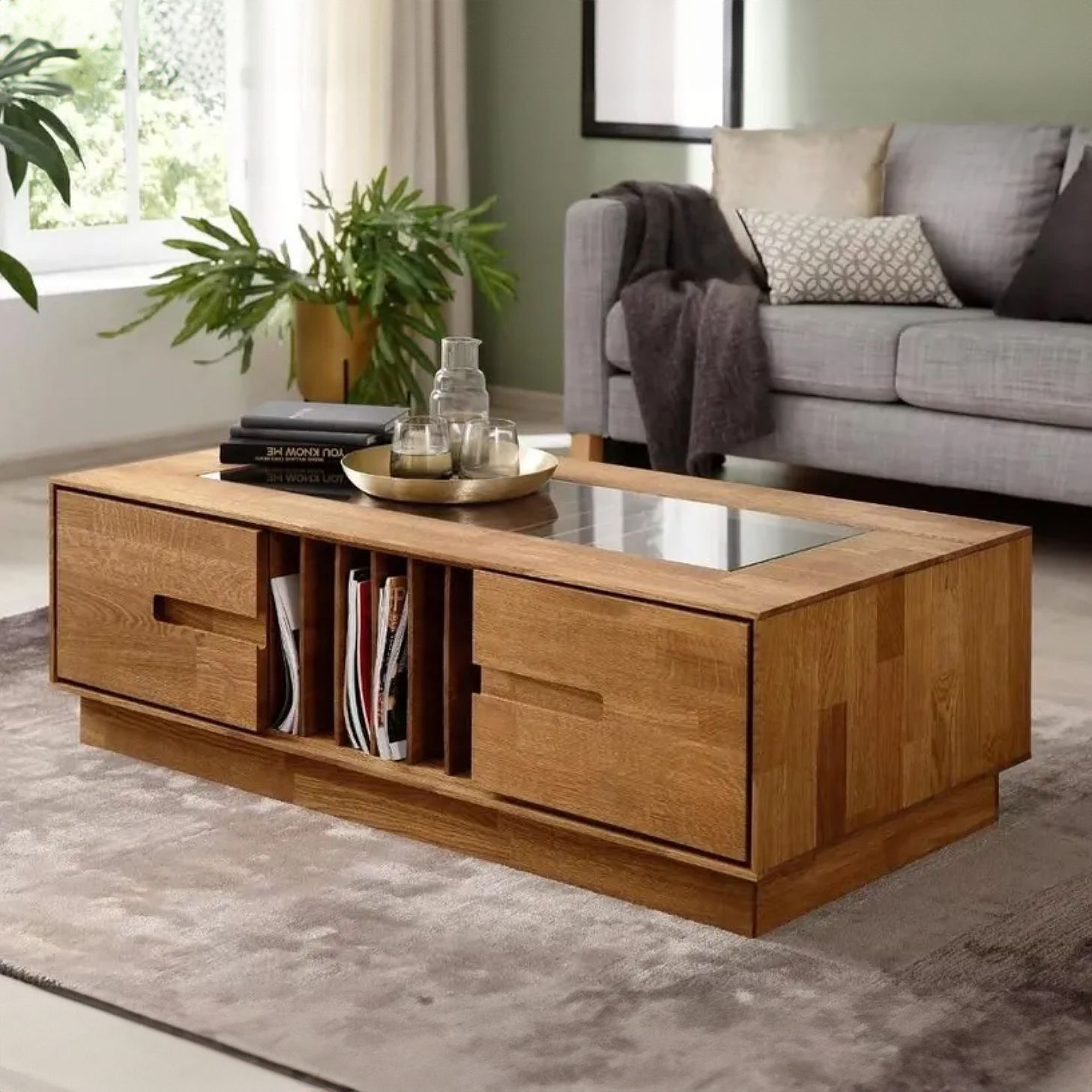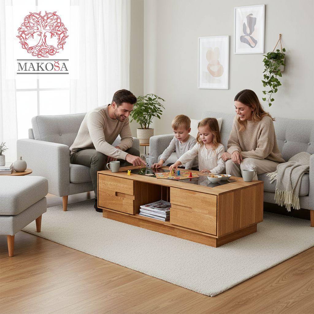 Бренд Makosa представляет премиальную модель журнального стола «Паво» в стиле модерн. Уникальное сочетание массива дуба, обработанного натуральным льняным маслом, и закаленного стекла создает эффектный предмет интерьера, подчеркивающий ваш исключительный вкус.