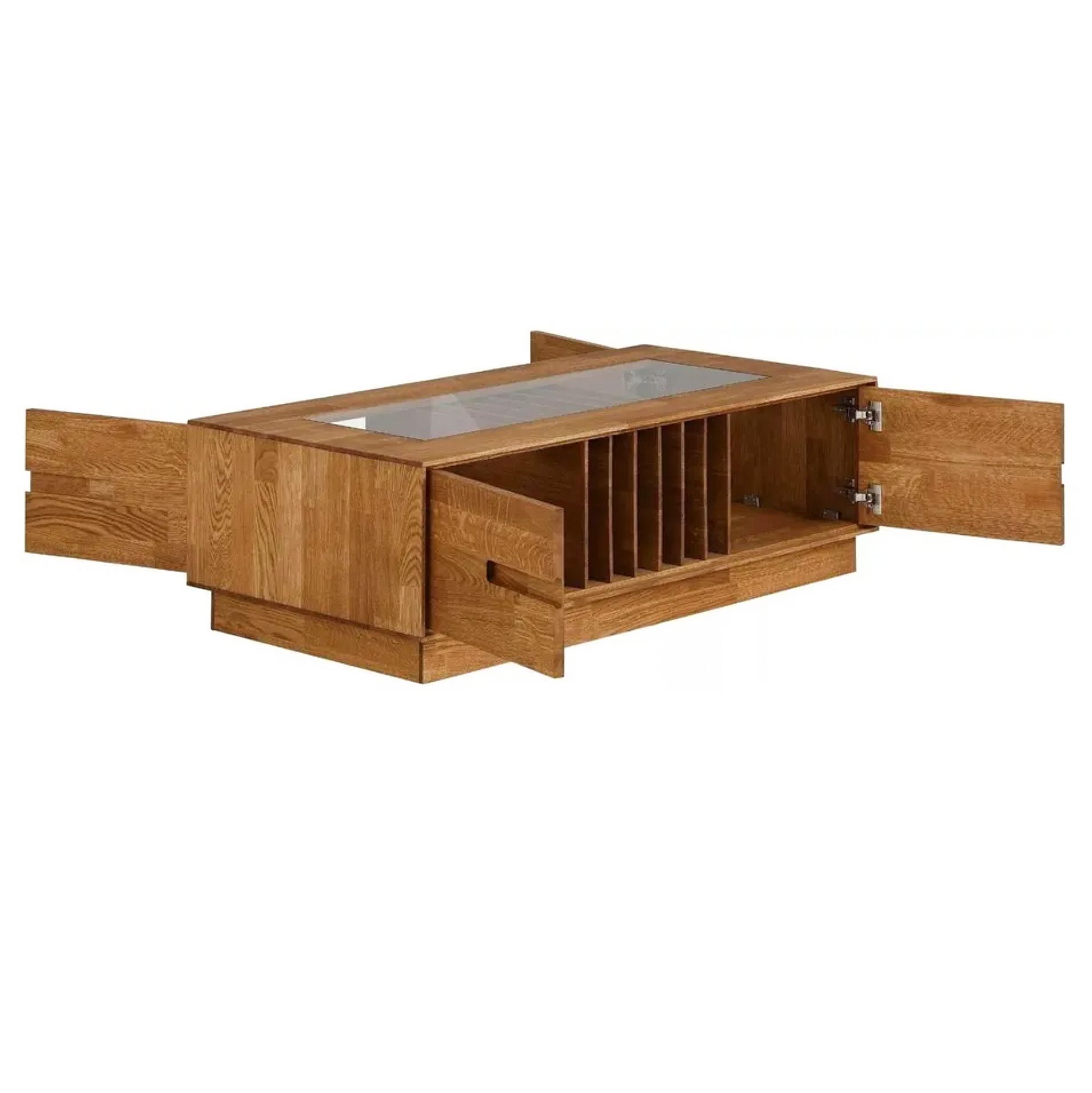 Ключевые преимущества: • Массив дуба премиум-качества • Закаленное безопасное стекло • Фурнитура BLUM с системой плавного закрытия • Функциональные зоны хранения • Витражная столешница для демонстрации коллекций • Обработка экологичным льняным маслом.