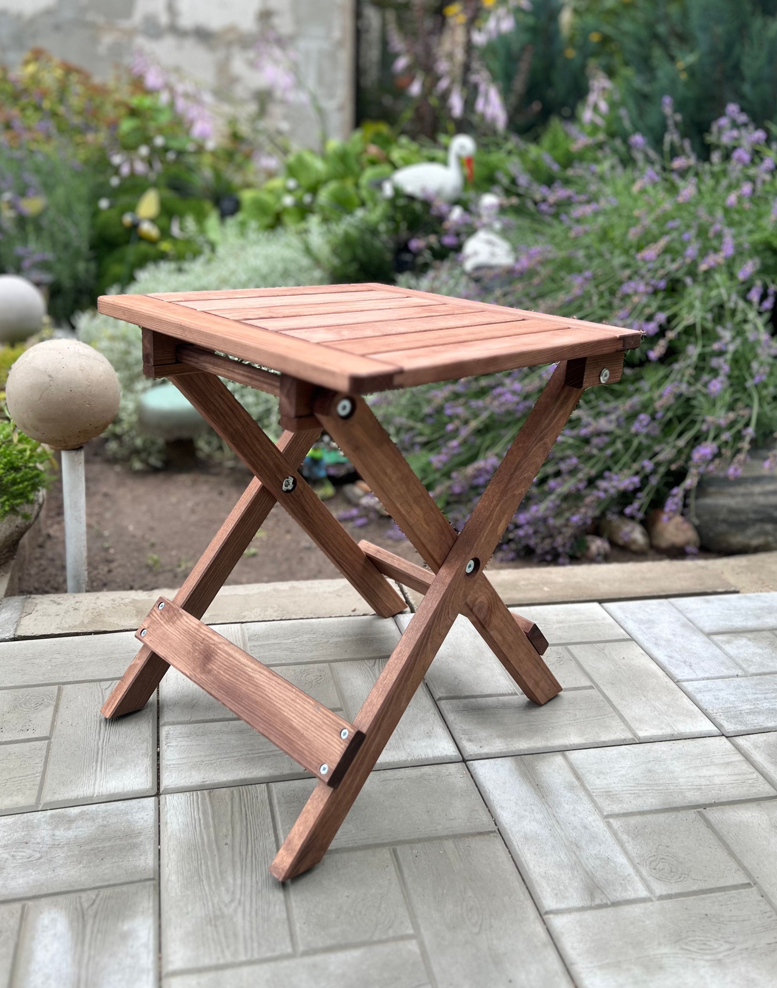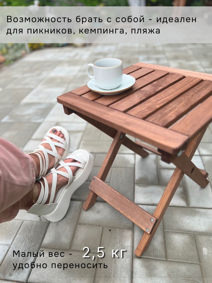 Складной журнальный столик Петра — это идеальное решение для вашего дома, сада или террасы. Изготовленный из массива сосны, он гарантирует надежность и долговечность на протяжении многих сезонов. Размеры столика 38х38х44 см делают его компактным и удобным, а коричневый бейц придаёт ему стильный и привлекательный вид, который легко впишется в любой интерьер.Этот столик прикроватный станет отличным дополнением к вашему уютному вечеру на свежем воздухе. Его можно использовать как кофейный столик для подачи напитков, а также как маленький столик для закусок и десертов на пикниках. Благодаря складной конструкции, он легко трансформируется, что делает его удобным для хранения и транспортировки.Также этот столик может использоваться в качестве прикроватного столика для книг и мелочей или как приставной столик для размещения предметов рядом с диваном. Он прекрасно справится с ролью туристического складного стола, позволяя вам наслаждаться комфортом даже на выезде.Стол складной Петра отлично подходит и для использования в качестве винного столика, создавая атмосферу расслабленности и уюта. Его универсальность и функциональность позволяют использовать его в различных ситуациях, что делает его незаменимым элементом сада или дачи.Кроме того, стильный дизайн и аккуратные линии делают этот столик не только практичным, но и эстетичным. Он станет великолепным акцентом в вашем outdoor-пространстве и добавит изысканности и комфорта. Выберите столик поднос Петра, чтобы наслаждаться каждым моментом на свежем воздухе с максимальным комфортом.