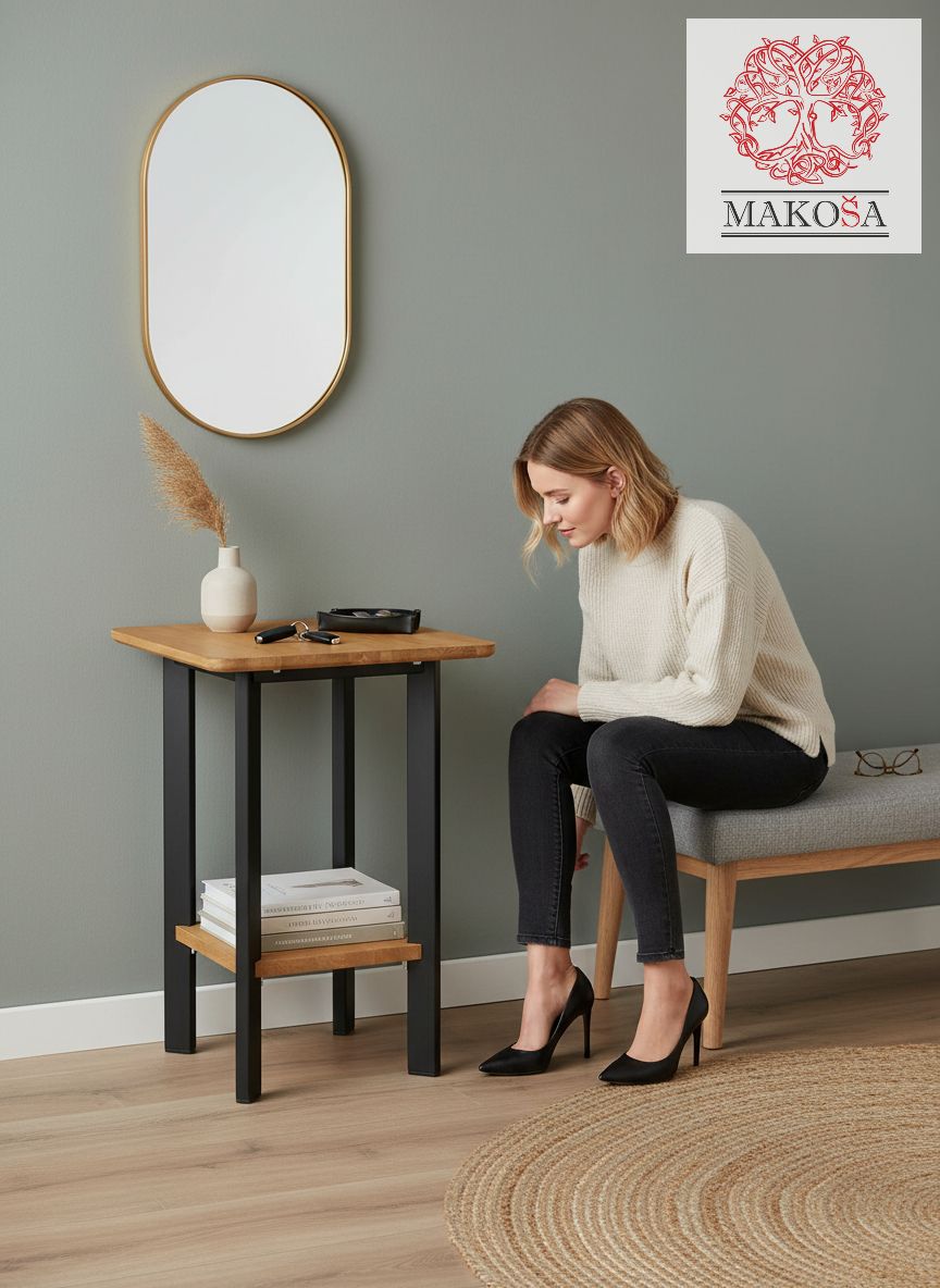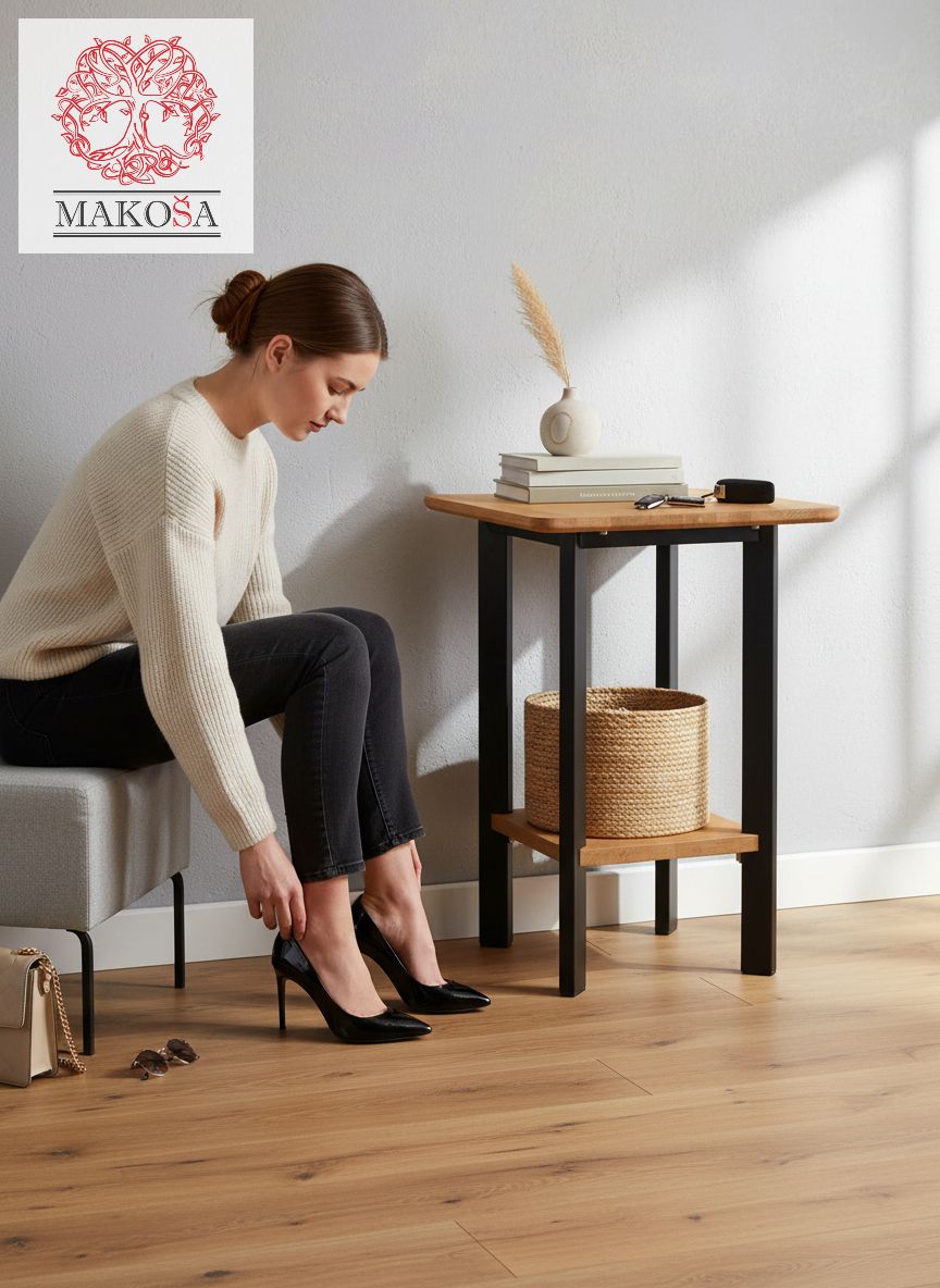 Белорусский производитель «Диприз» представляет столик-консоль «Виби» из массива дуба размером 40х40 см. Компактная модель с нижней полкой сочетает индустриальную эстетику лофта и природную теплоту натурального дерева. Идеальное решение для современных интерьеров с ограниченным пространством.