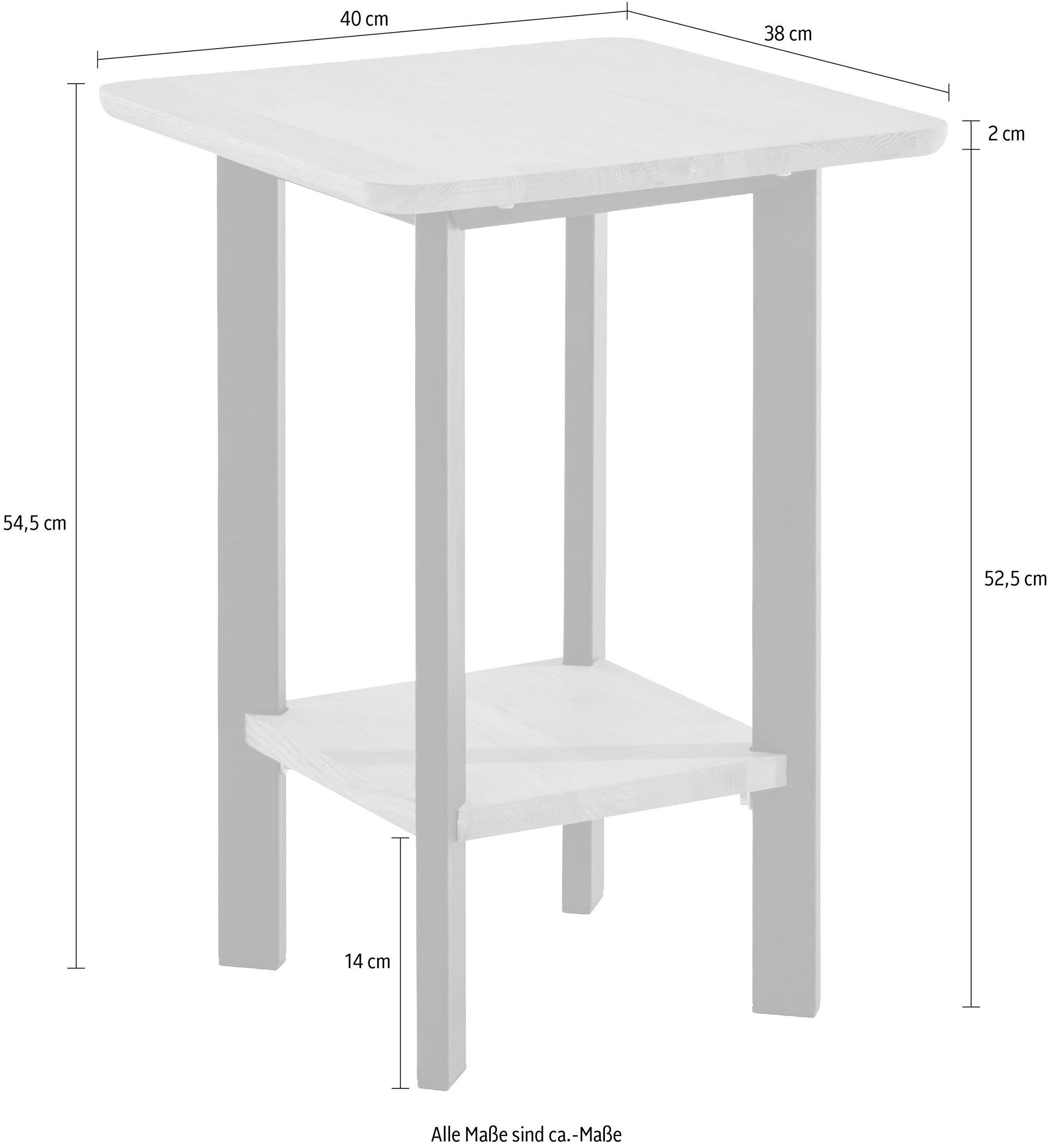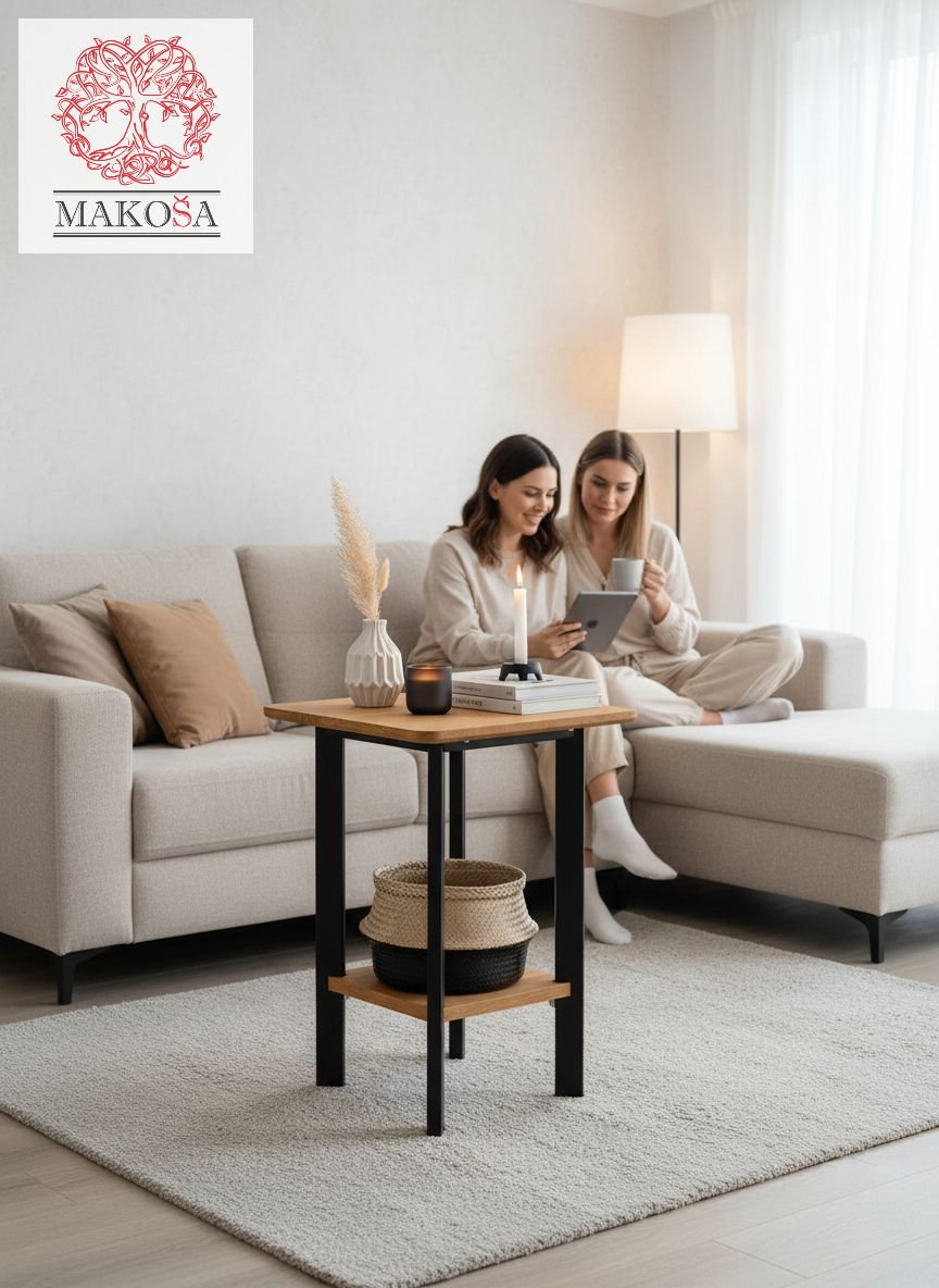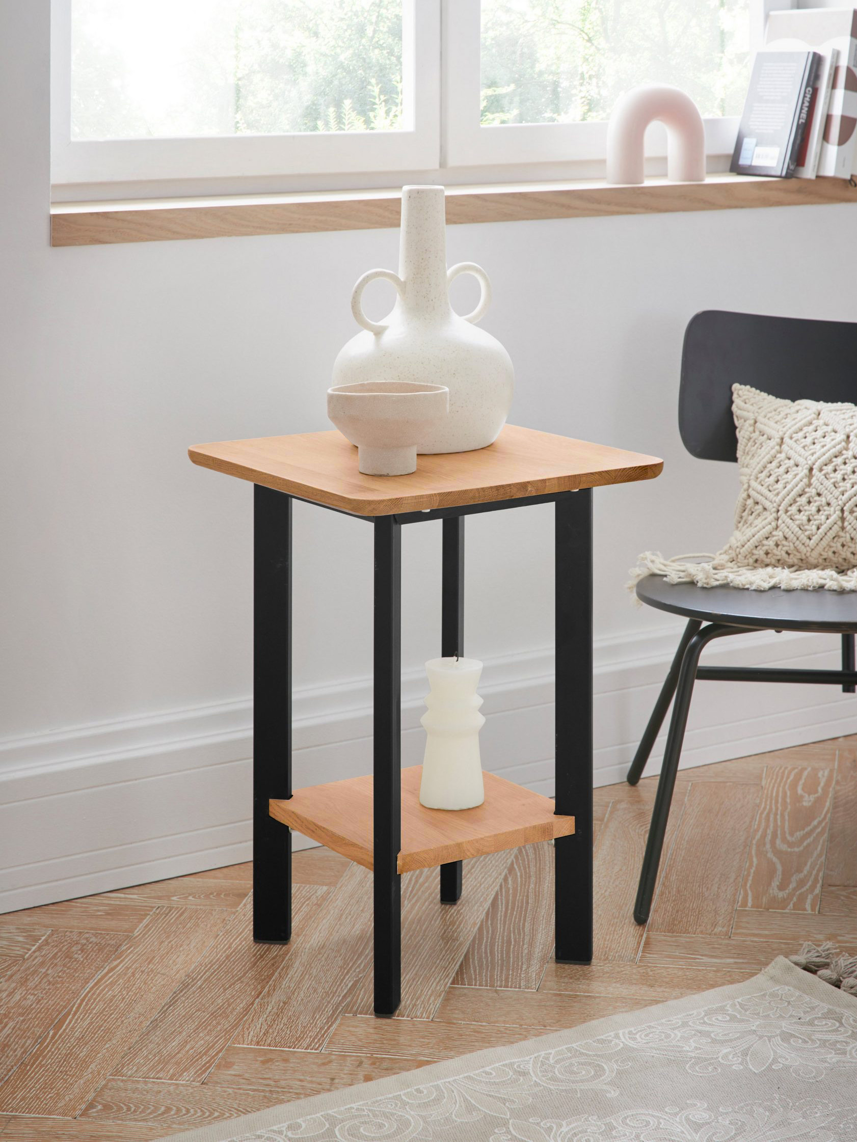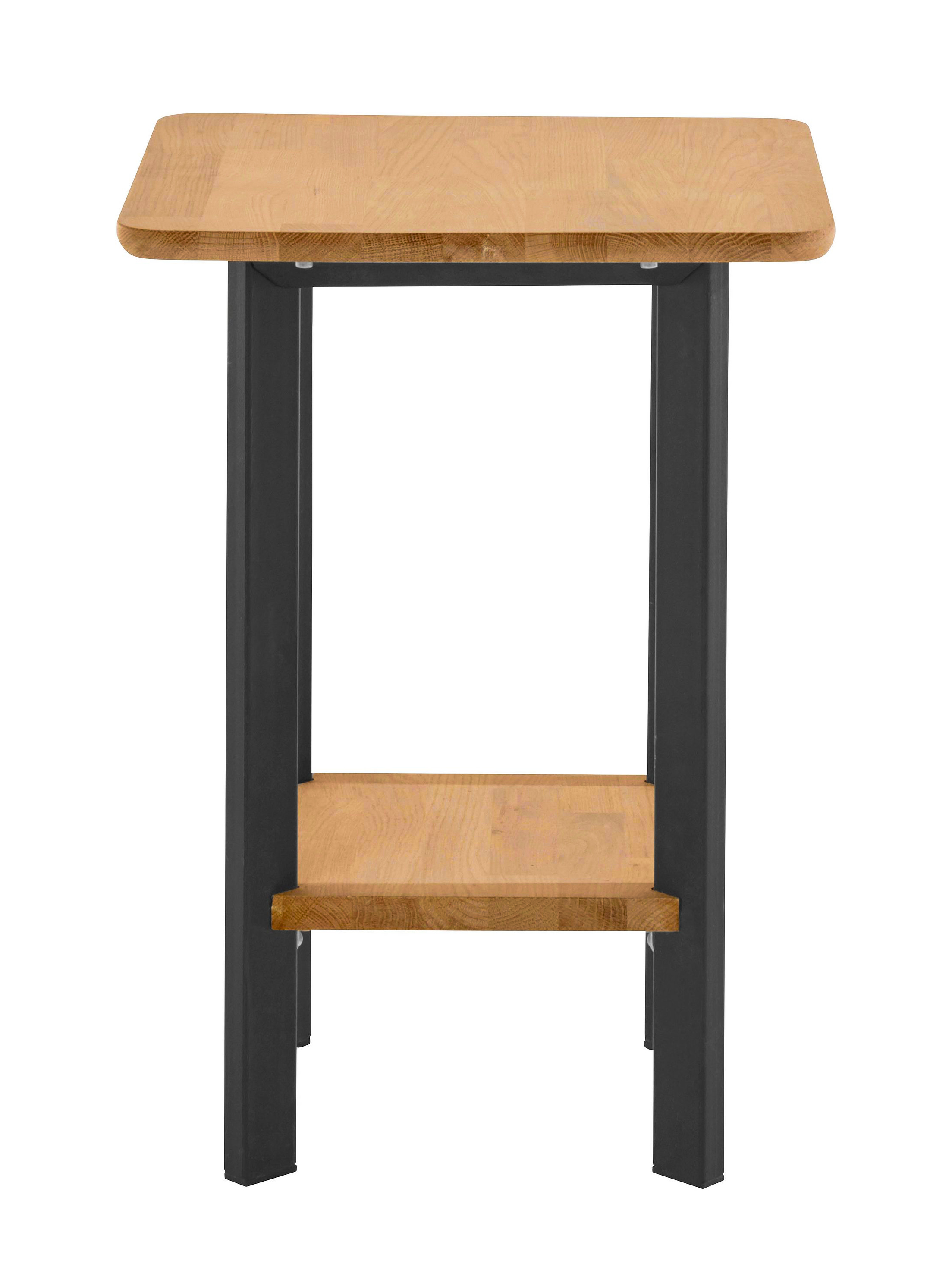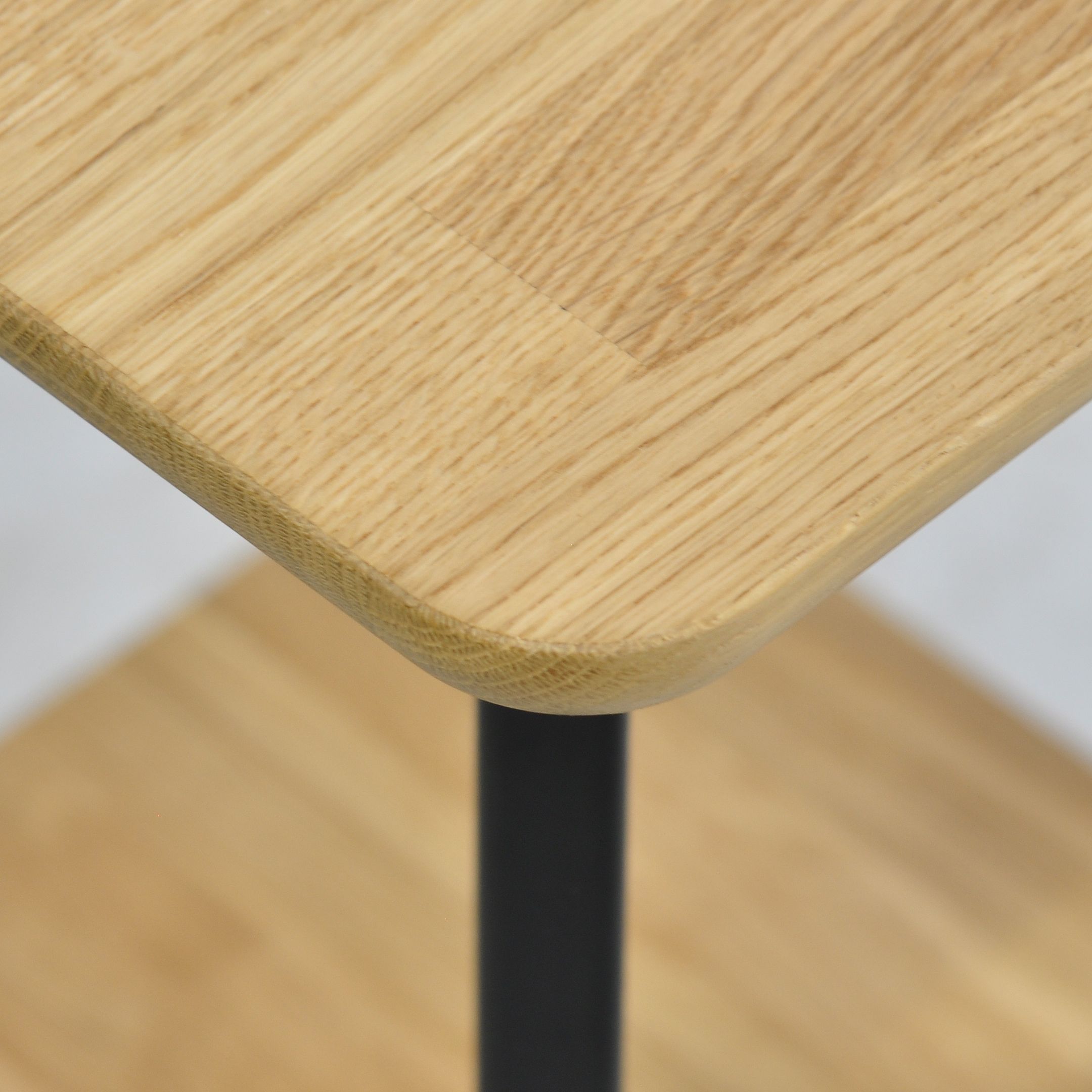 Ключевые преимущества: • Столешница из массива дуба толщиной 20 мм • Прочные черные матовые ножки из металла • Удобная нижняя полка для хранения • Нагрузка до 50 кг • Компактные размеры 40×40×54.5 см