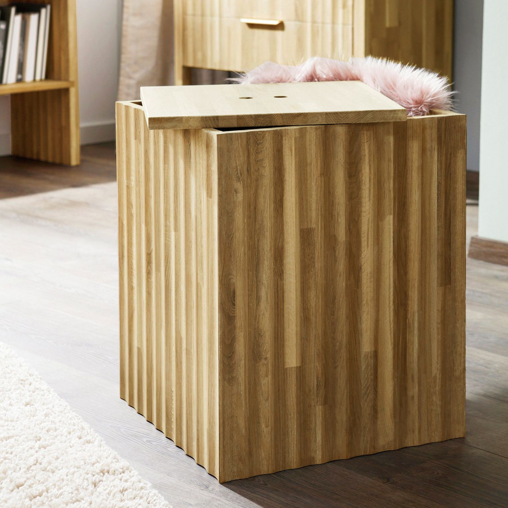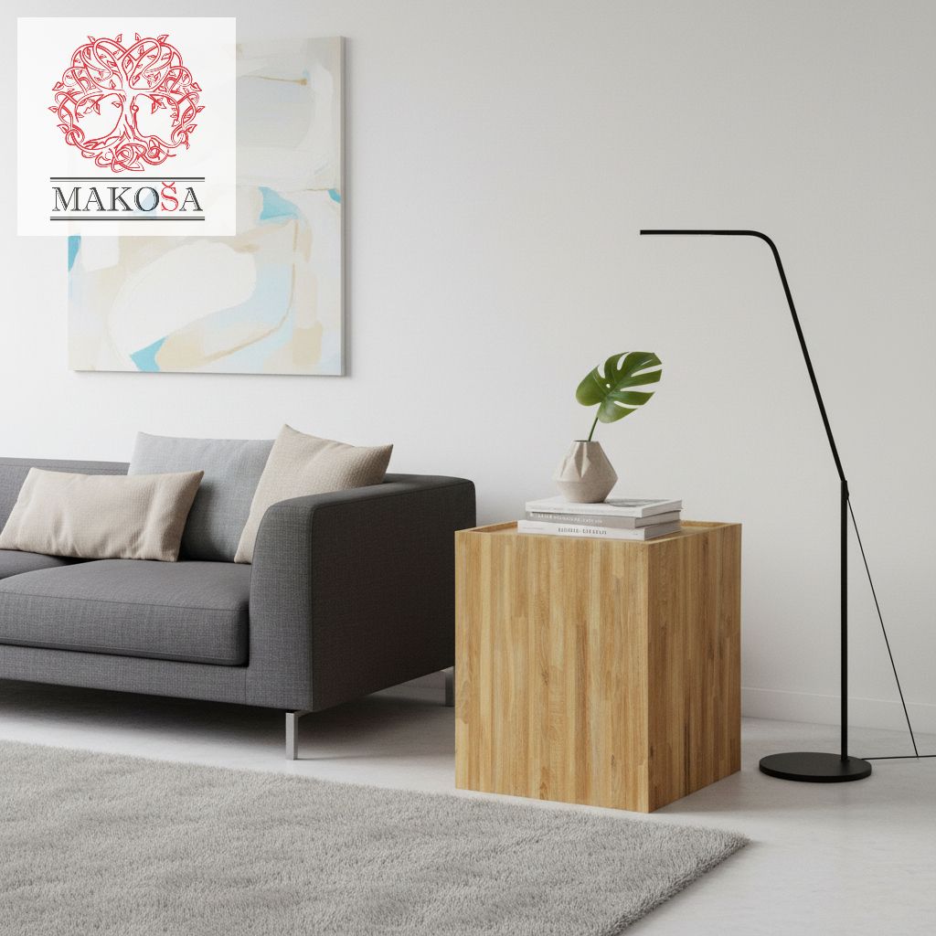 Ключевые особенности: • Столешница и корпус из массива дуба • Вместительное скрытое отделение для хранения • Антибактериальное покрытие поверхности • Компактные размеры 45.3×45.3×55 см • Натуральные масляно-матовые покрытия