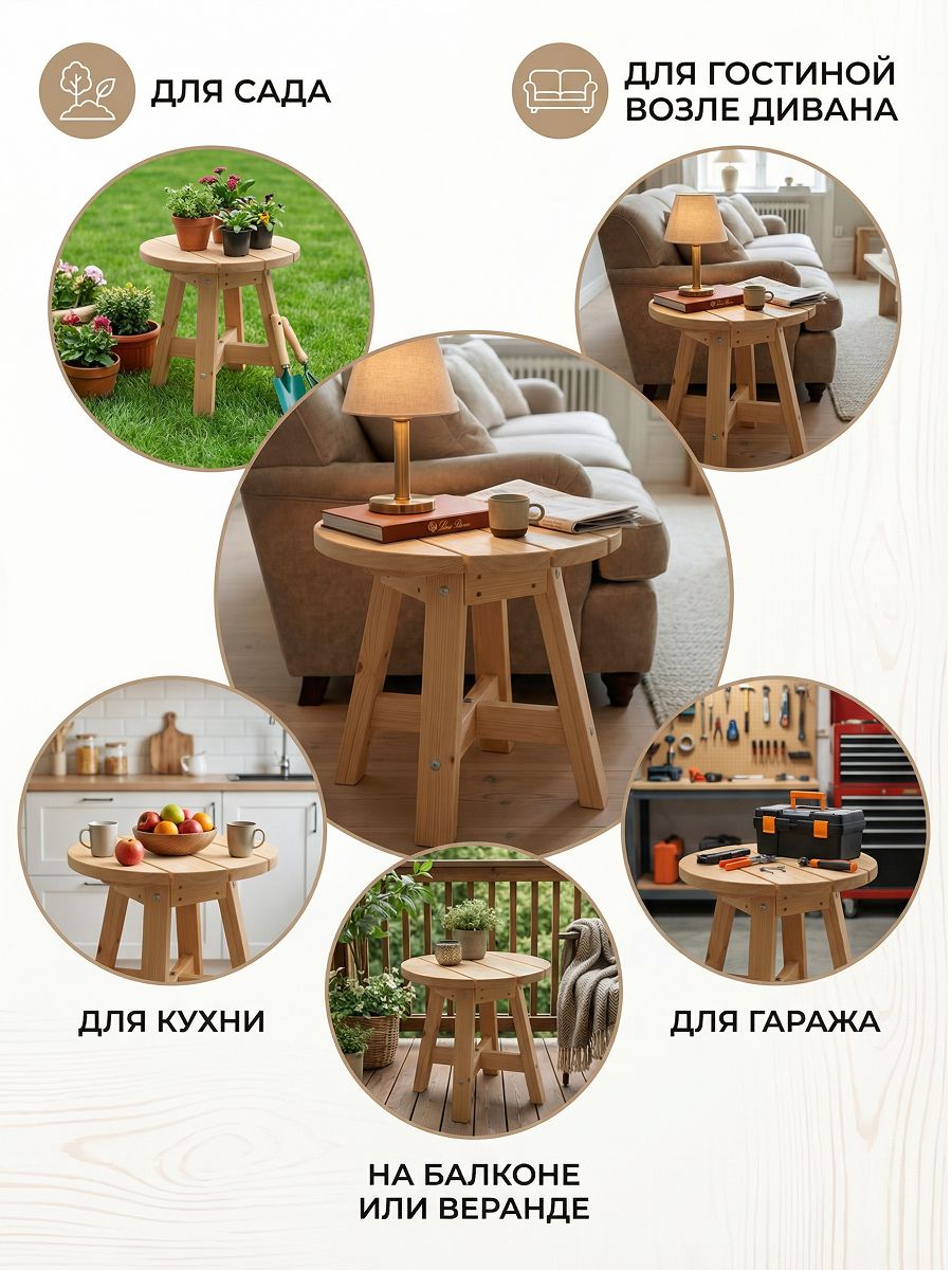 Столик круглый Осло - это идеальное решение для вашего дома или уличного пространства. Этот столик изготовлен из массива сосны, что обеспечивает его долговечность и прочность. Он имеет диаметр 60х60 см, что позволяет разместить на нем достаточно места для отдыха или работы.