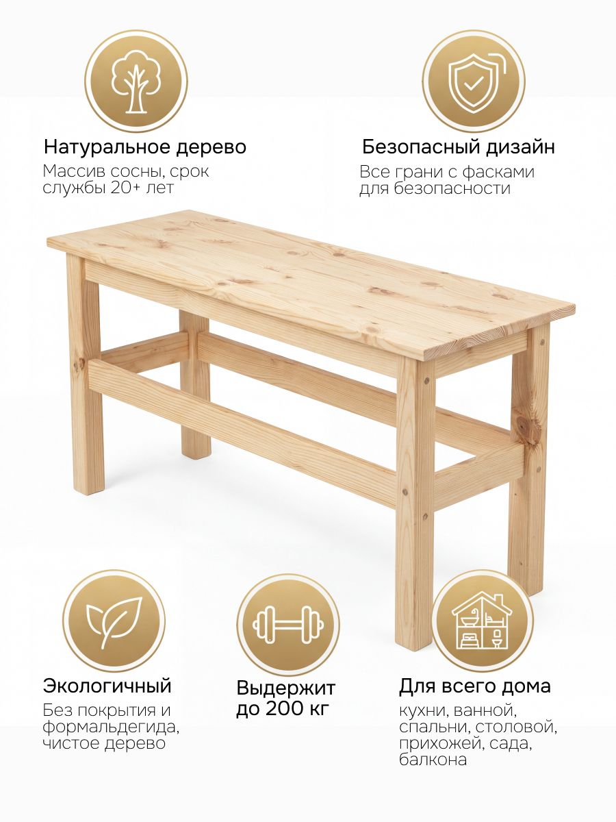 Скамья из массива сосны не только визуально привлекательна, но и обеспечивает надежную поддержку и комфорт в любом помещении или на улице. Ее простой, но элегантный дизайн добавит непринужденный шарм в ваш сад, двор или любое другое пространство. Оставив ее в натуральном цвете, мы сохраняем природную текстуру и уникальные черты древесины, что делает каждую скамью уникальной. Также это дает Вам невероятные просторы для творчества – ведь мы можете ее самостоятельно окрасить в желаемый цвет или покрыть лаком, пропиткой, маслом, что также продлит срок ее службы. Скамья имеет отличные компактные размеры, что дает возможность разместить ее в любом удобном месте. Если нужна скамья для компании побольше – мы готовы Вам предложить такой вариант аавдавд.